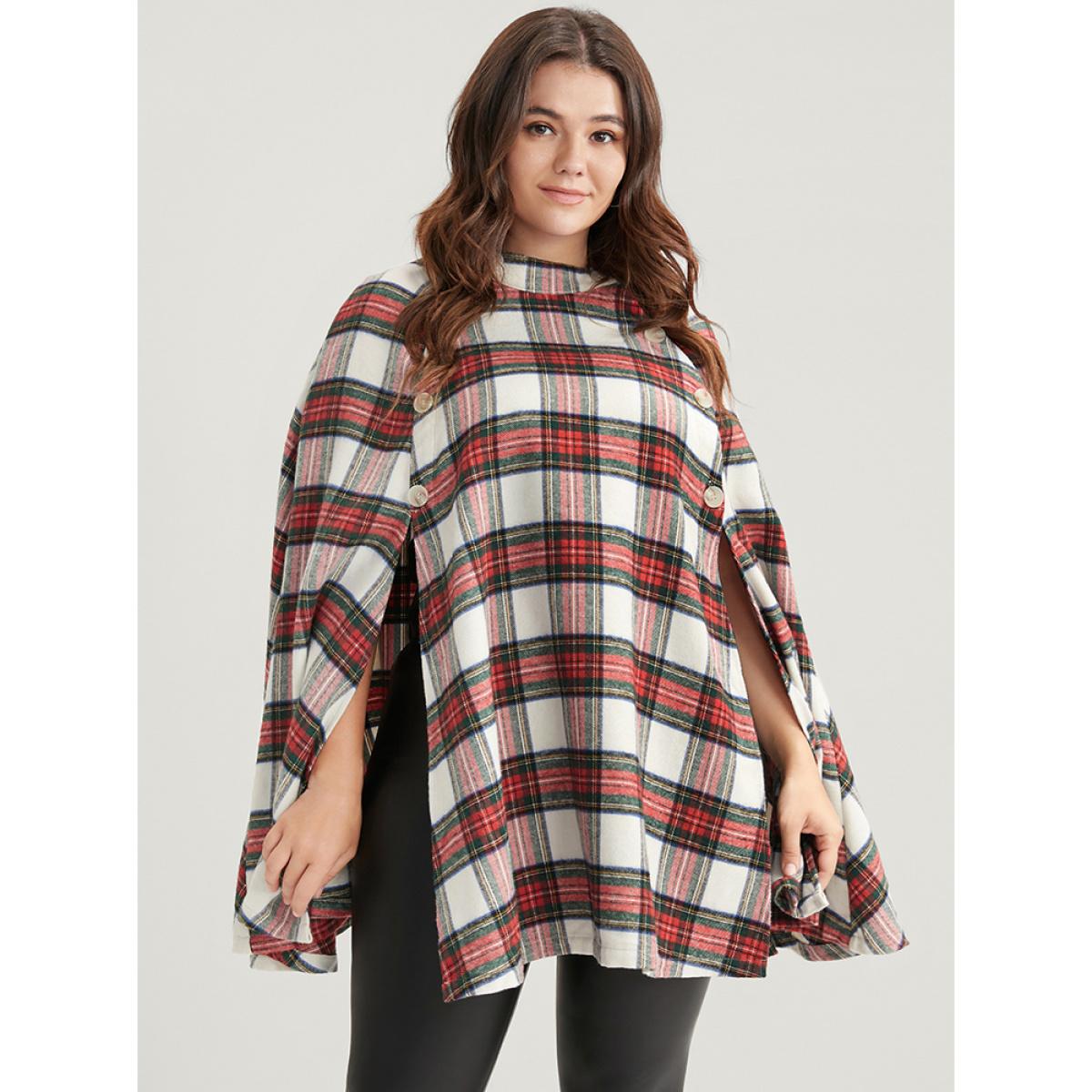Plus Size Tartan Button Side Cape Coat Without Hat Women Apricot Elegant Button Loose Ladies Dailywear Winter Coats BloomChic 14-16/1X