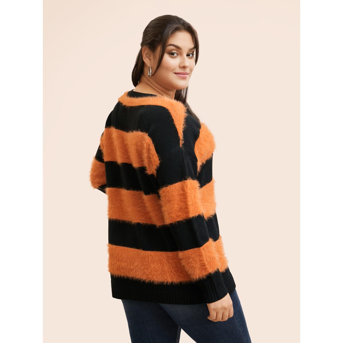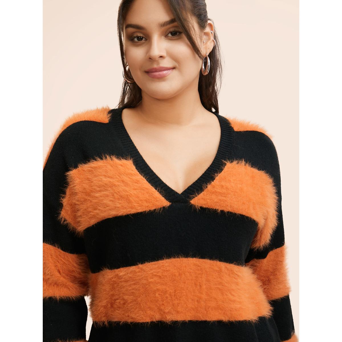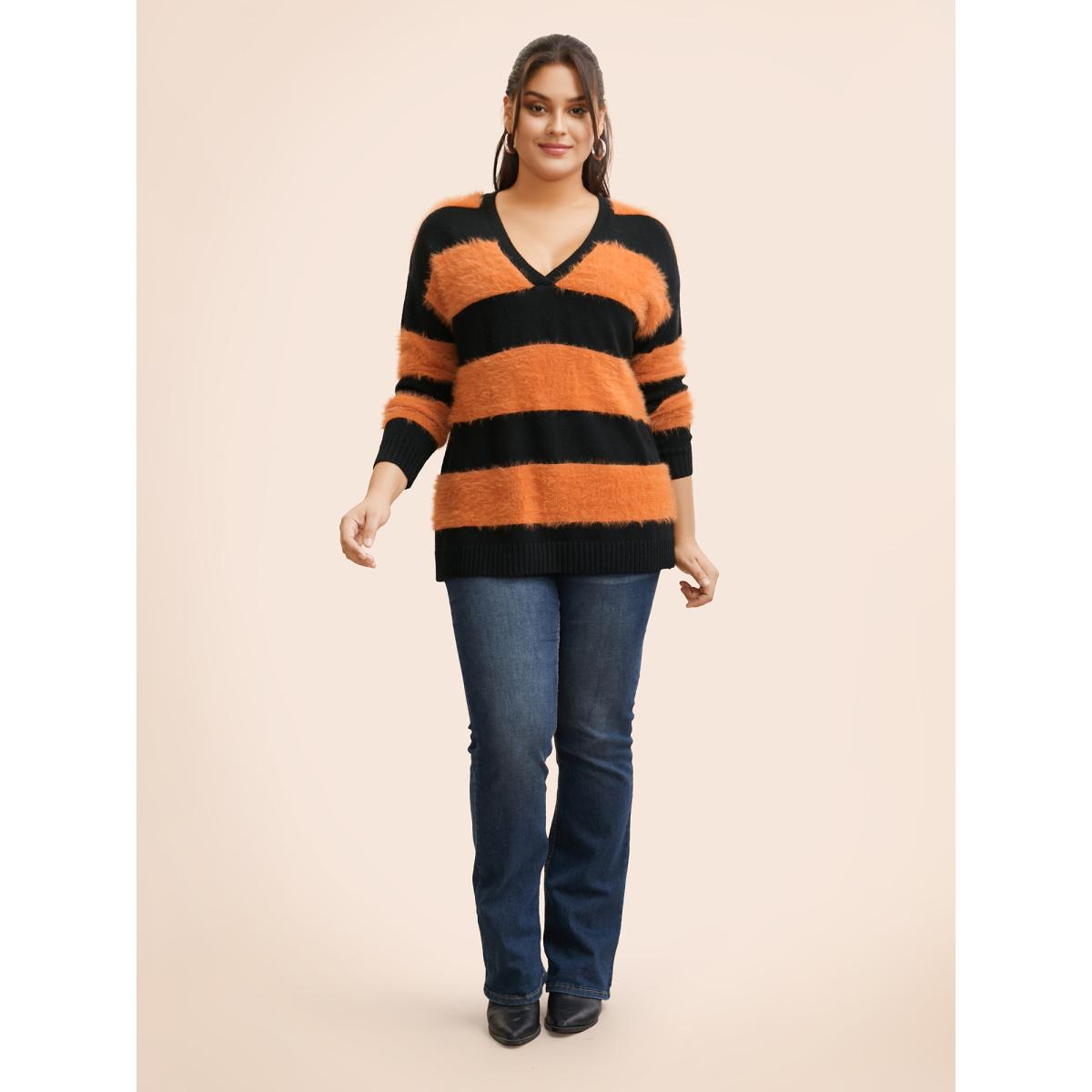 Plus Size Striped Colorblock Contrast V Neck Pullover Multicolor Women Casual Long Sleeve V-neck Dailywear Pullovers BloomChic 10/M