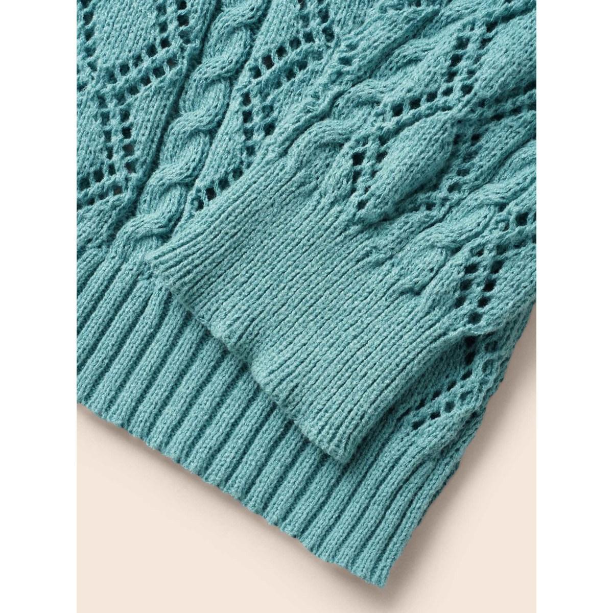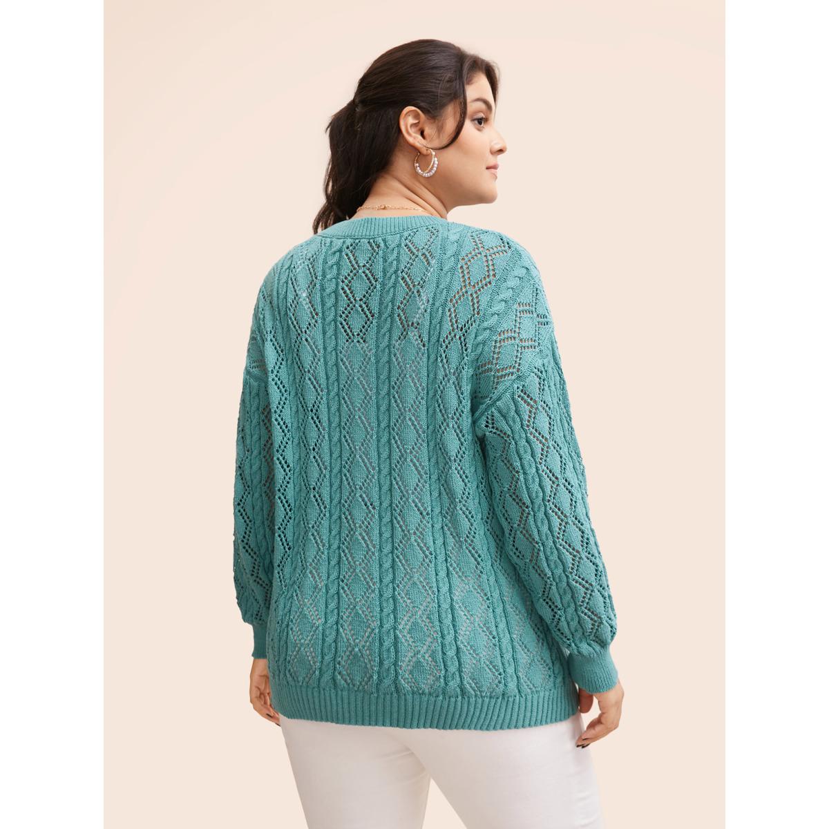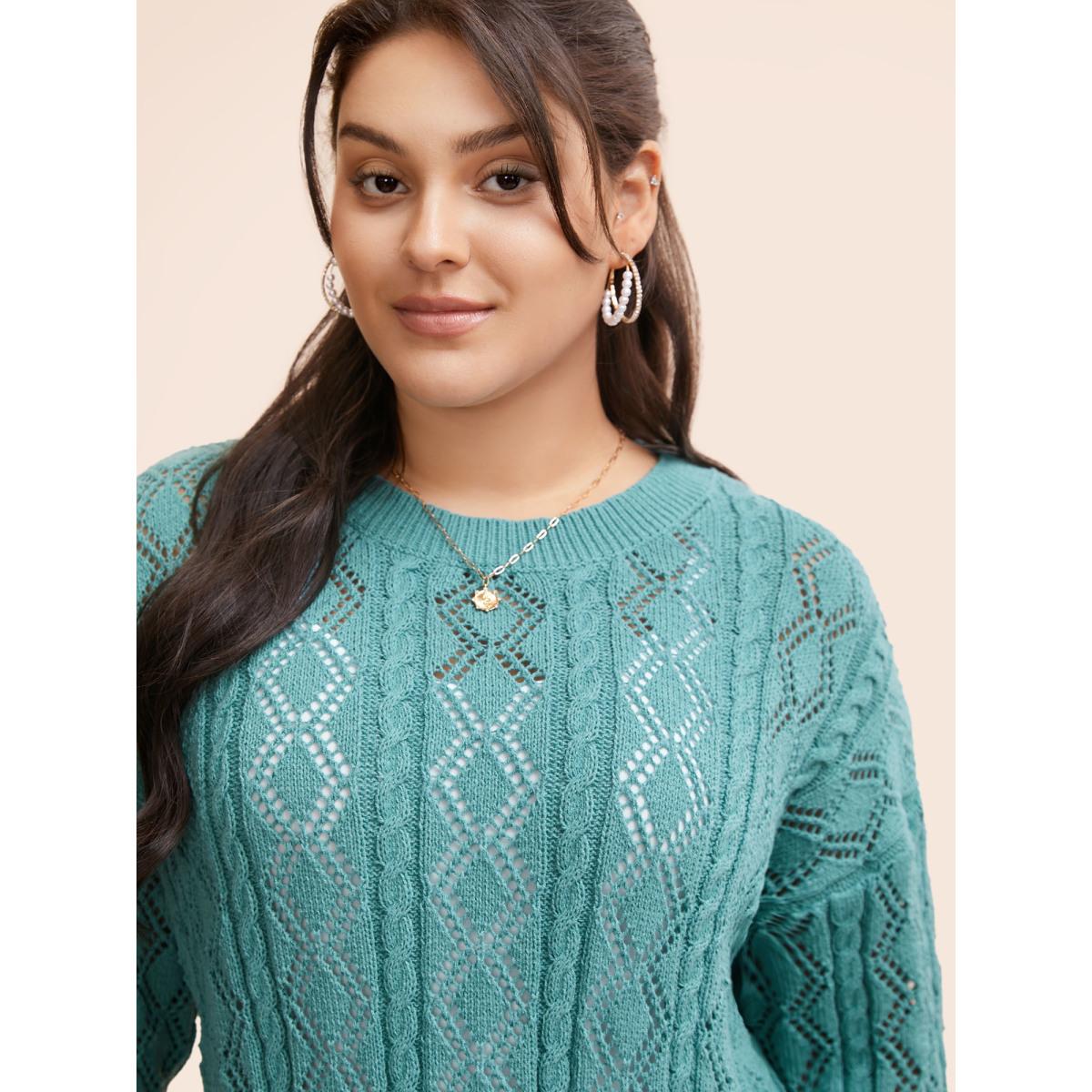 Plus Size Texture Cut Out Drop Shoulder Pullover Teal Women Casual Loose Three Quater Length Sleeve Round Neck Everyday Pullovers BloomChic 22-24/3X