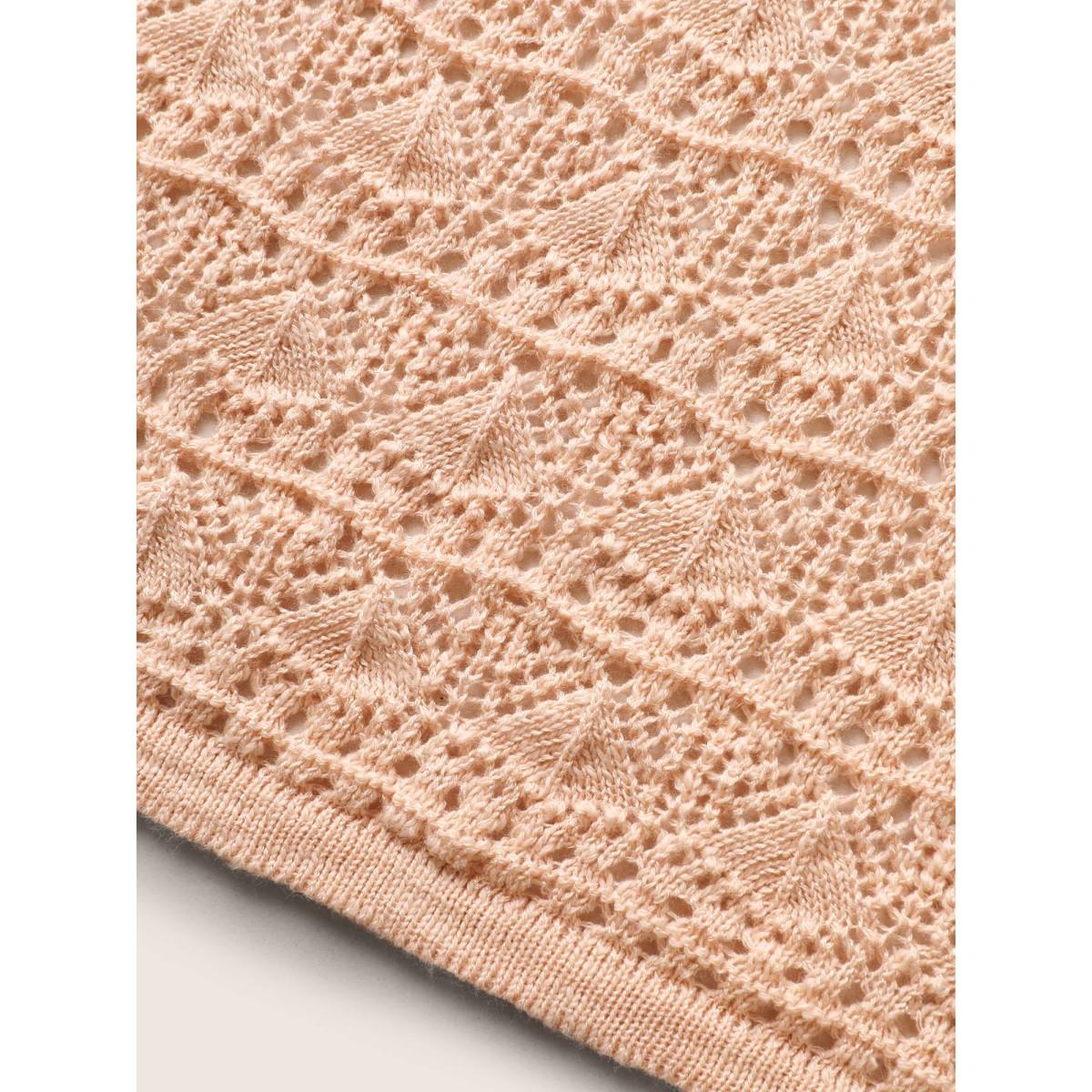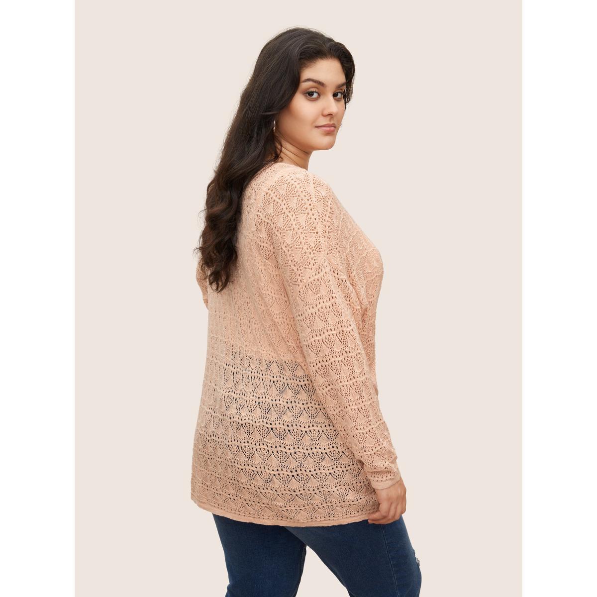 Plus Size Solid Pointelle Knit Deep V Neck Knit Top Coral Women Casual Long Sleeve Deep V-neck Dailywear Pullovers BloomChic 26/4X