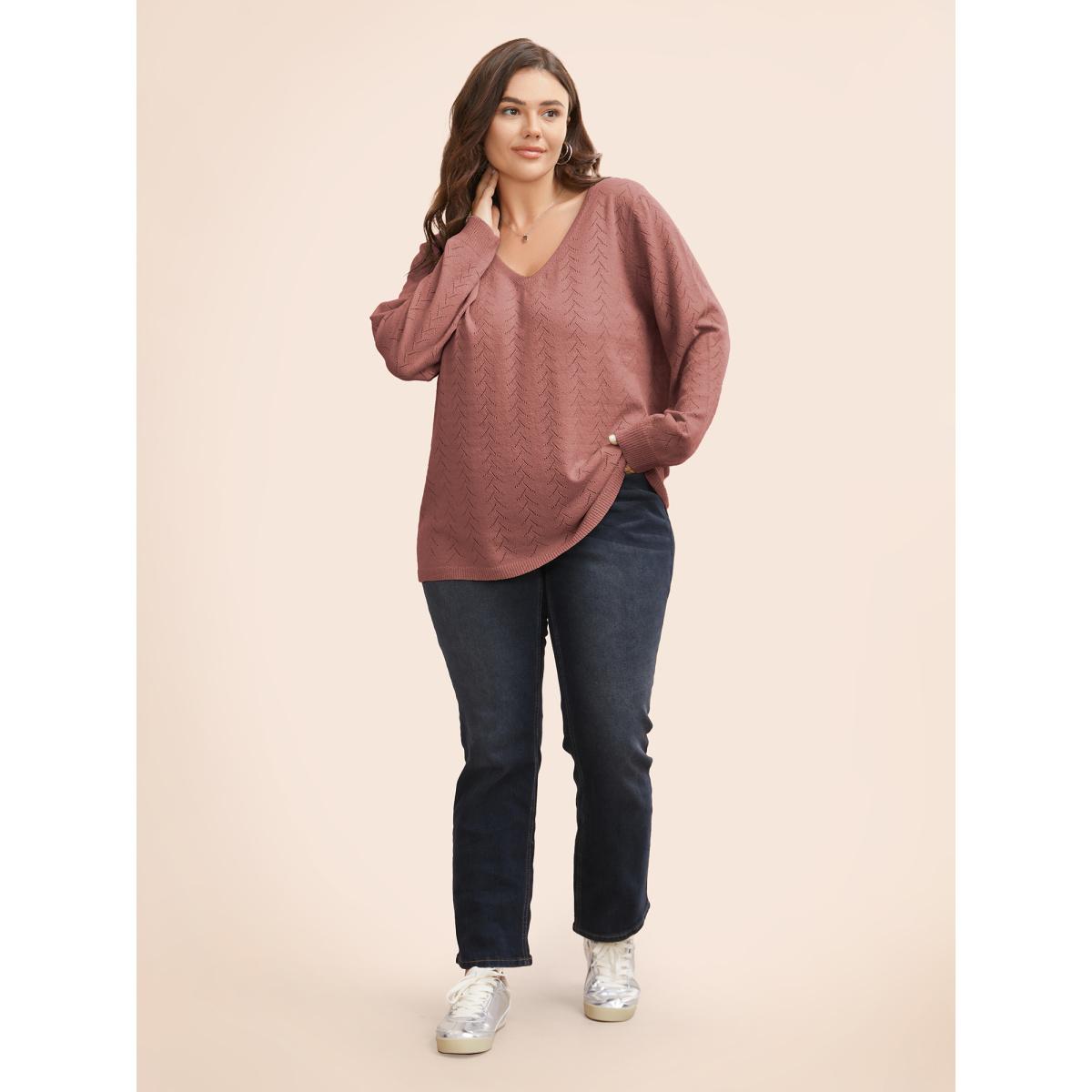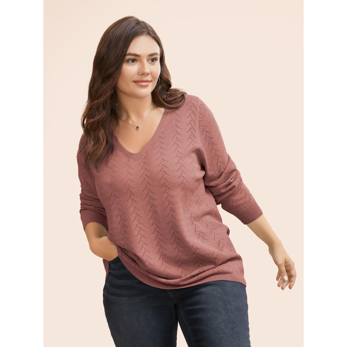 Plus Size Texture V Neck Lightweight Pullover Dirtypink Women Casual Long Sleeve V-neck Everyday Pullovers BloomChic 18-20/2X