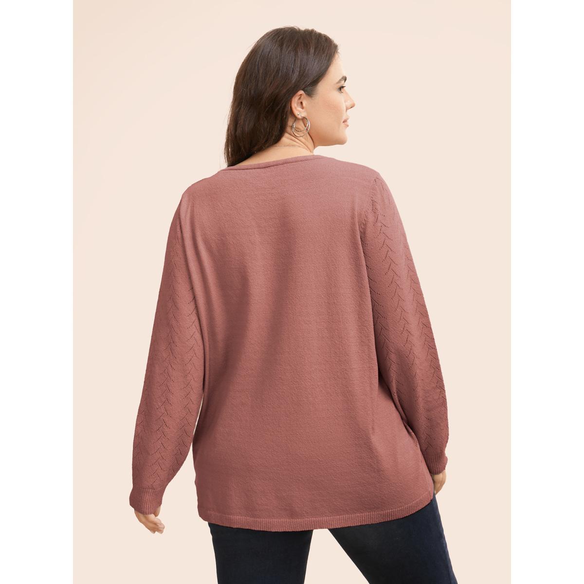 Plus Size Texture V Neck Lightweight Pullover Dirtypink Women Casual Long Sleeve V-neck Everyday Pullovers BloomChic 18-20/2X Product Image