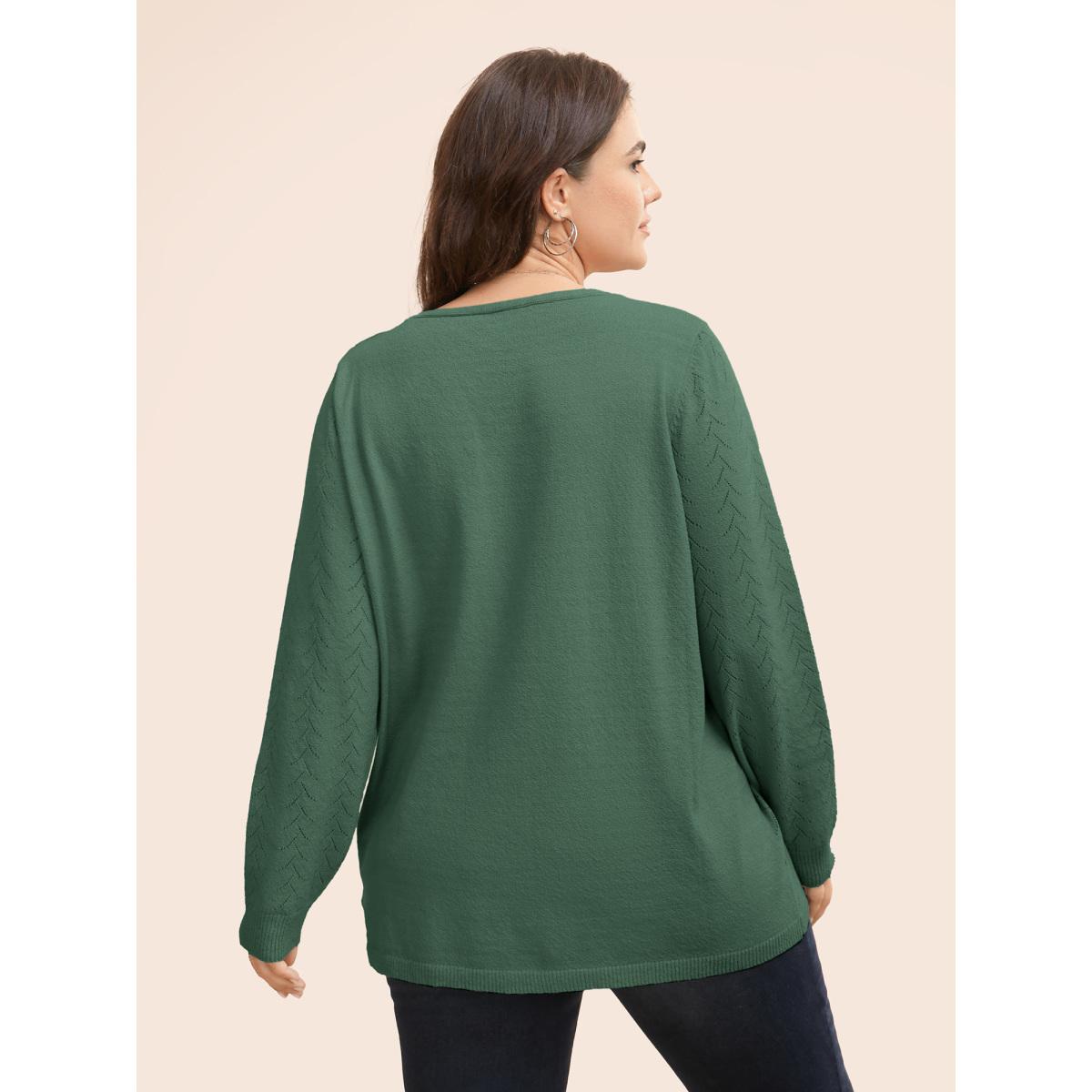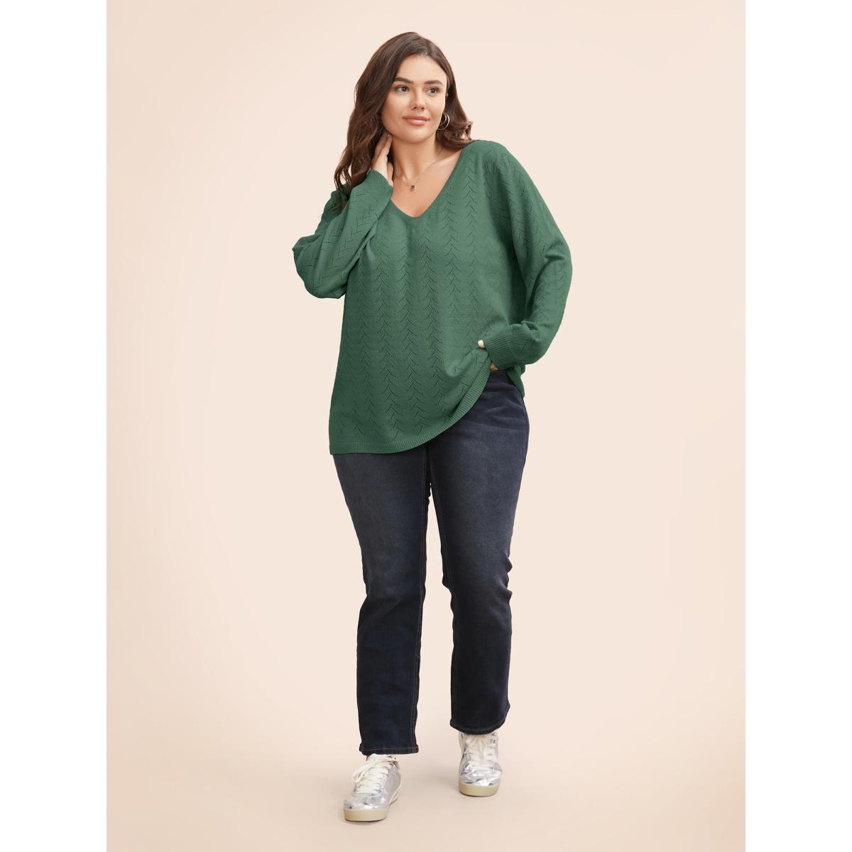 Plus Size Texture V Neck Lightweight Pullover Emerald Women Leisure Loose Long Sleeve V-neck Casual Pullovers BloomChic 30/6X