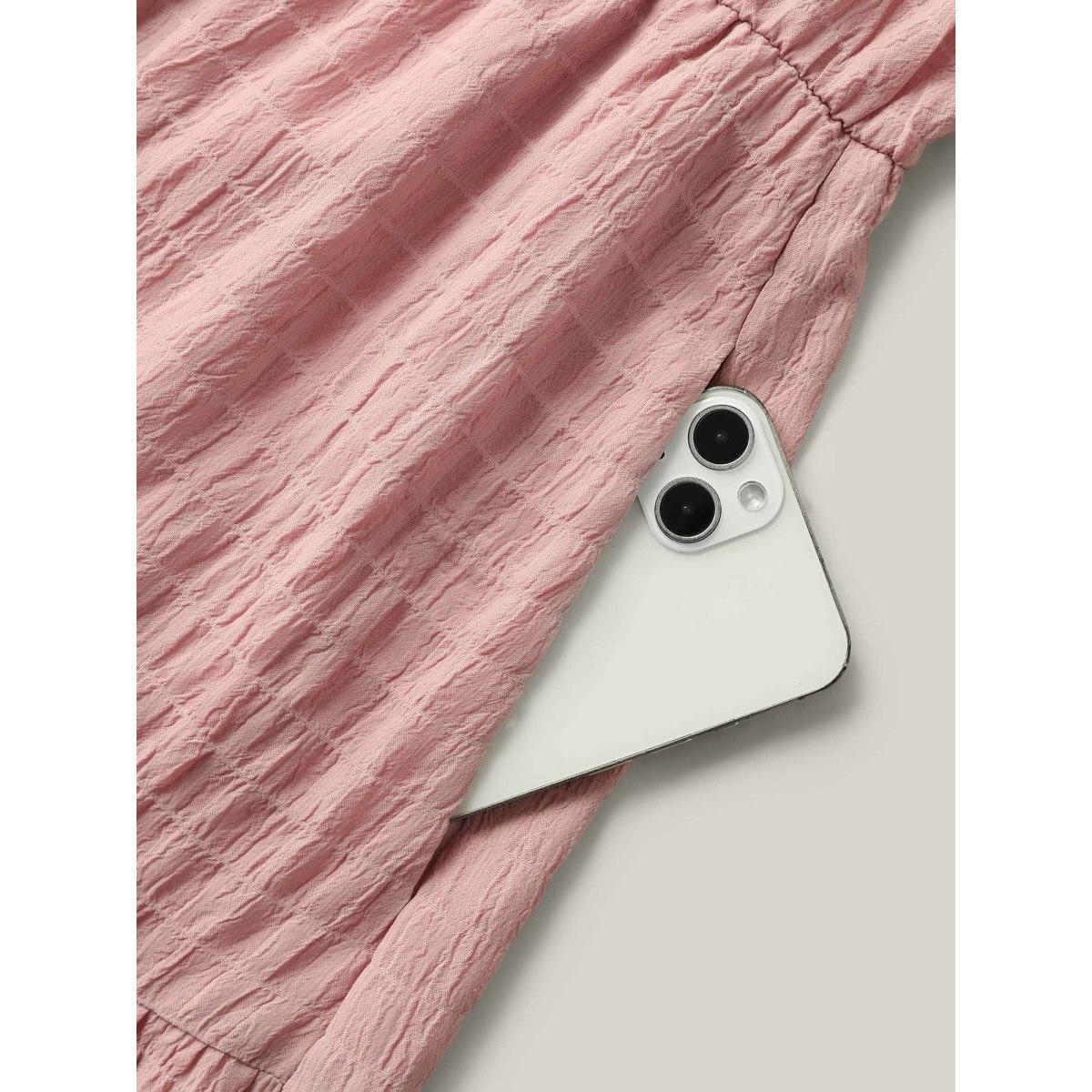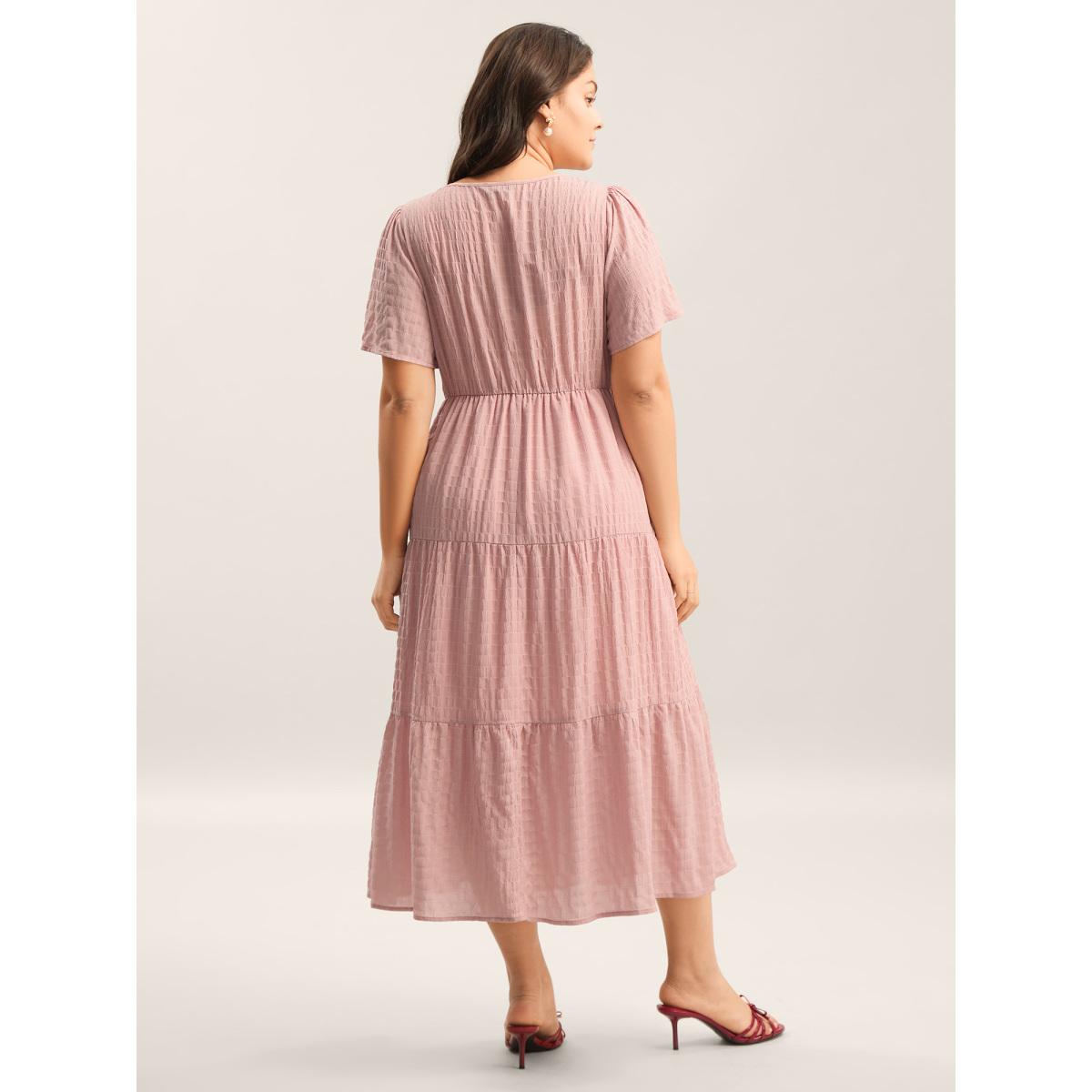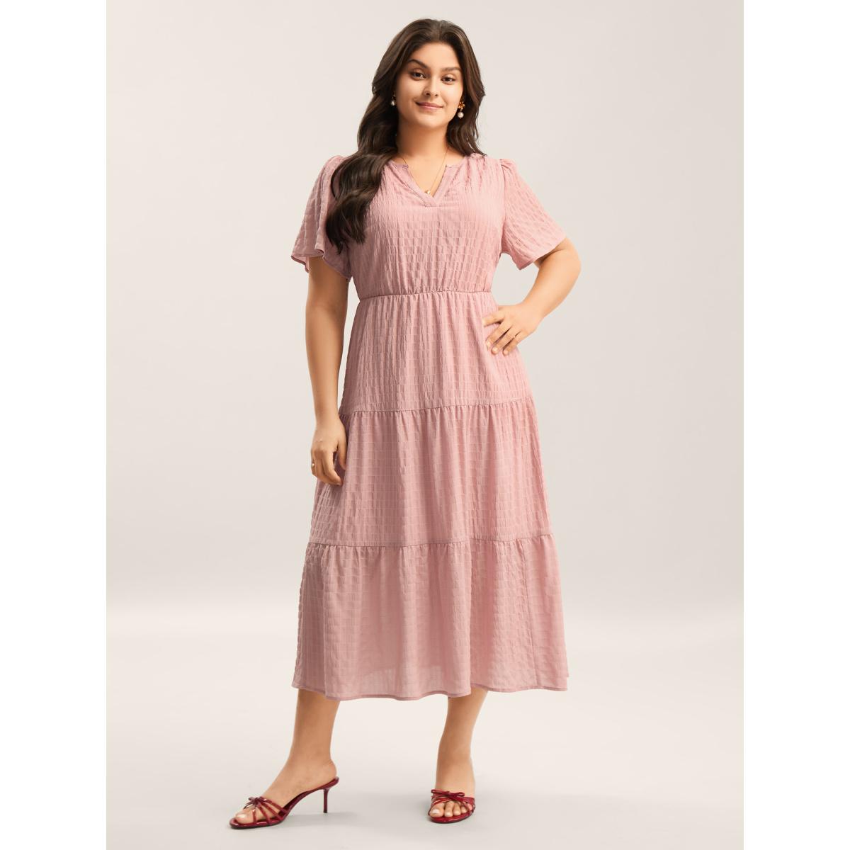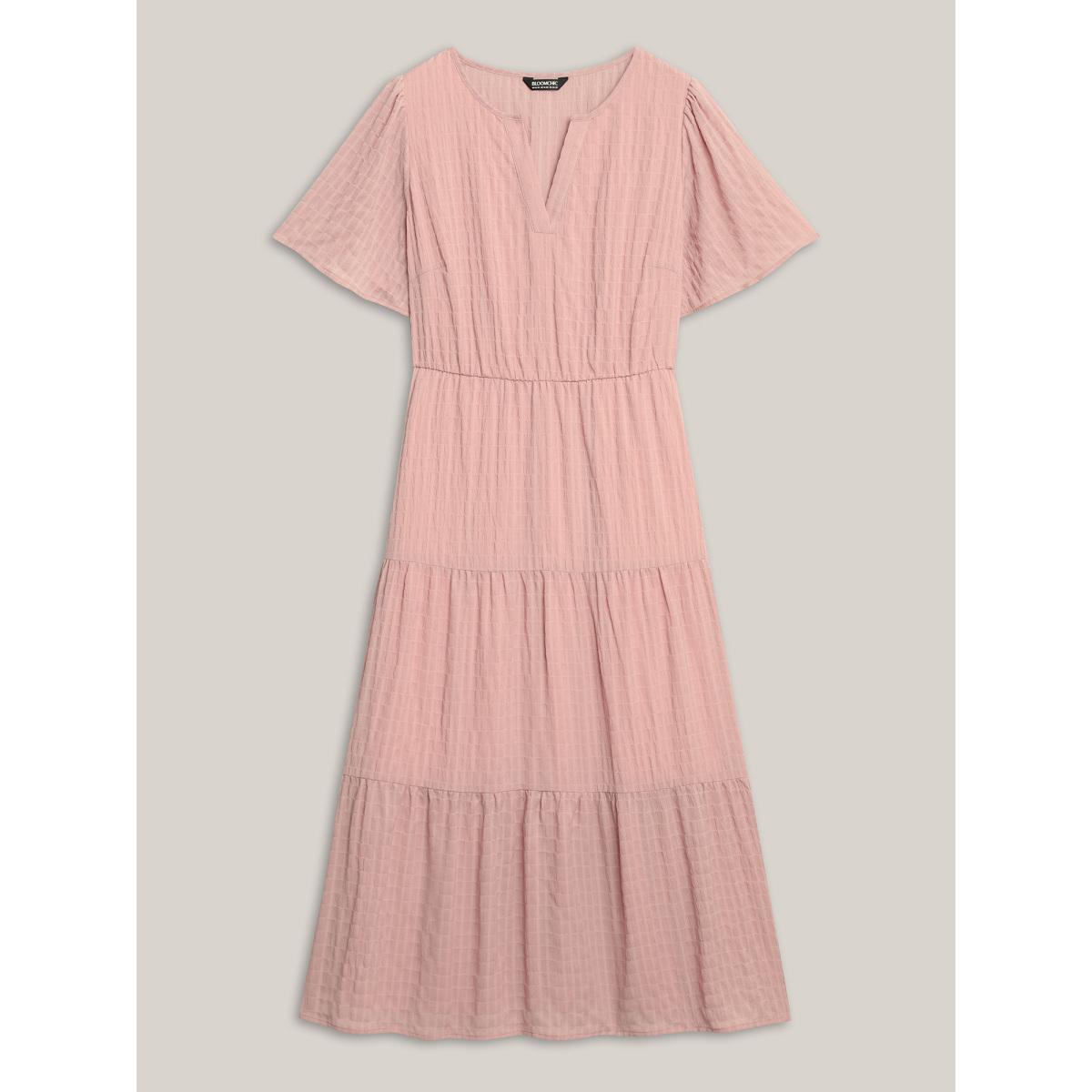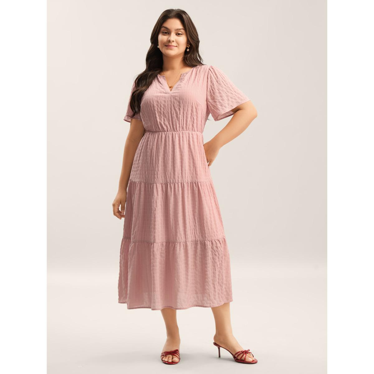 Plus Size Textured A-Line Split Neck Tiered Midi Dress Dirtypink Women Flat collar with V-notch Cap Sleeve Curvy BloomChic 26/4X