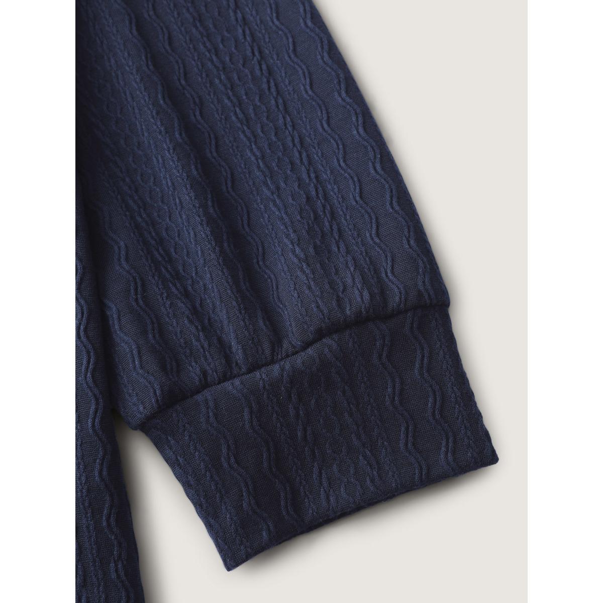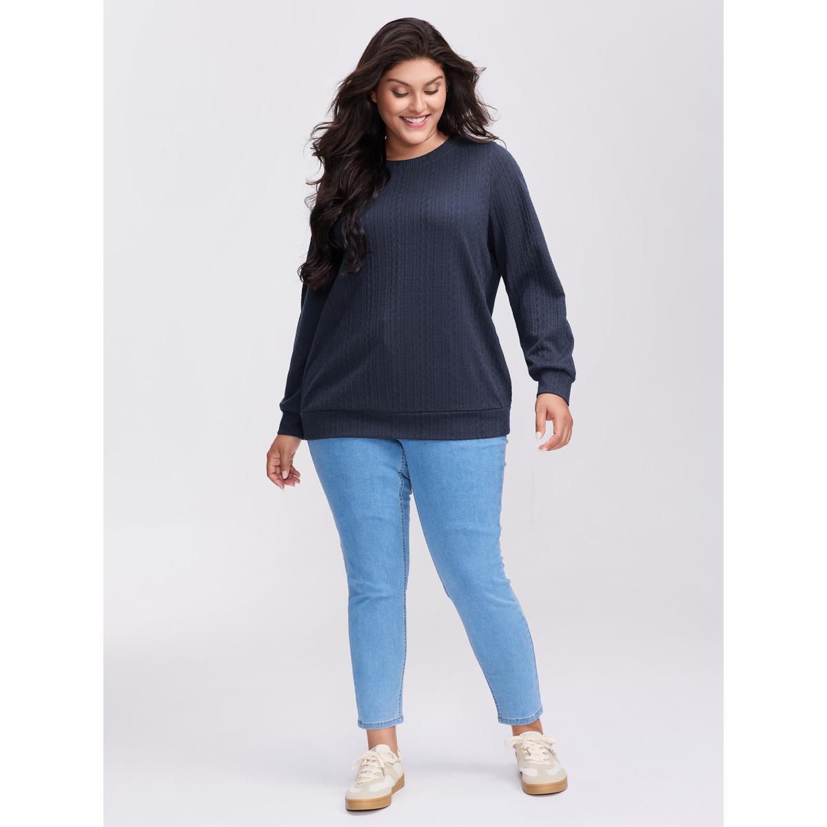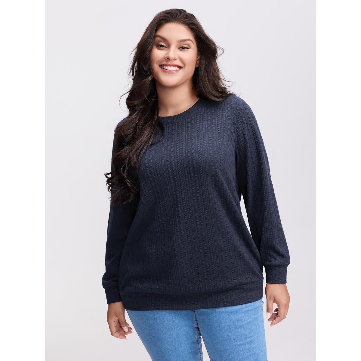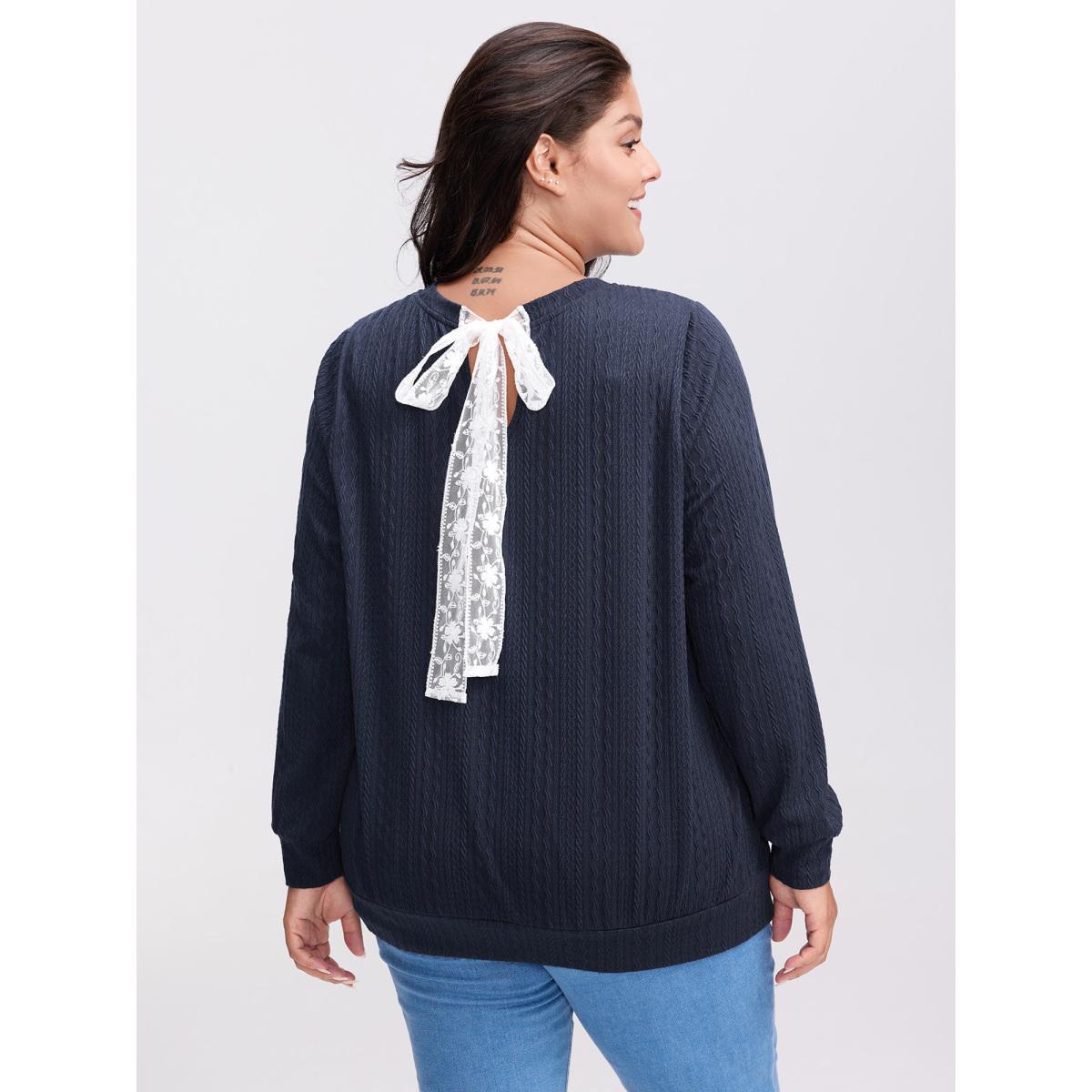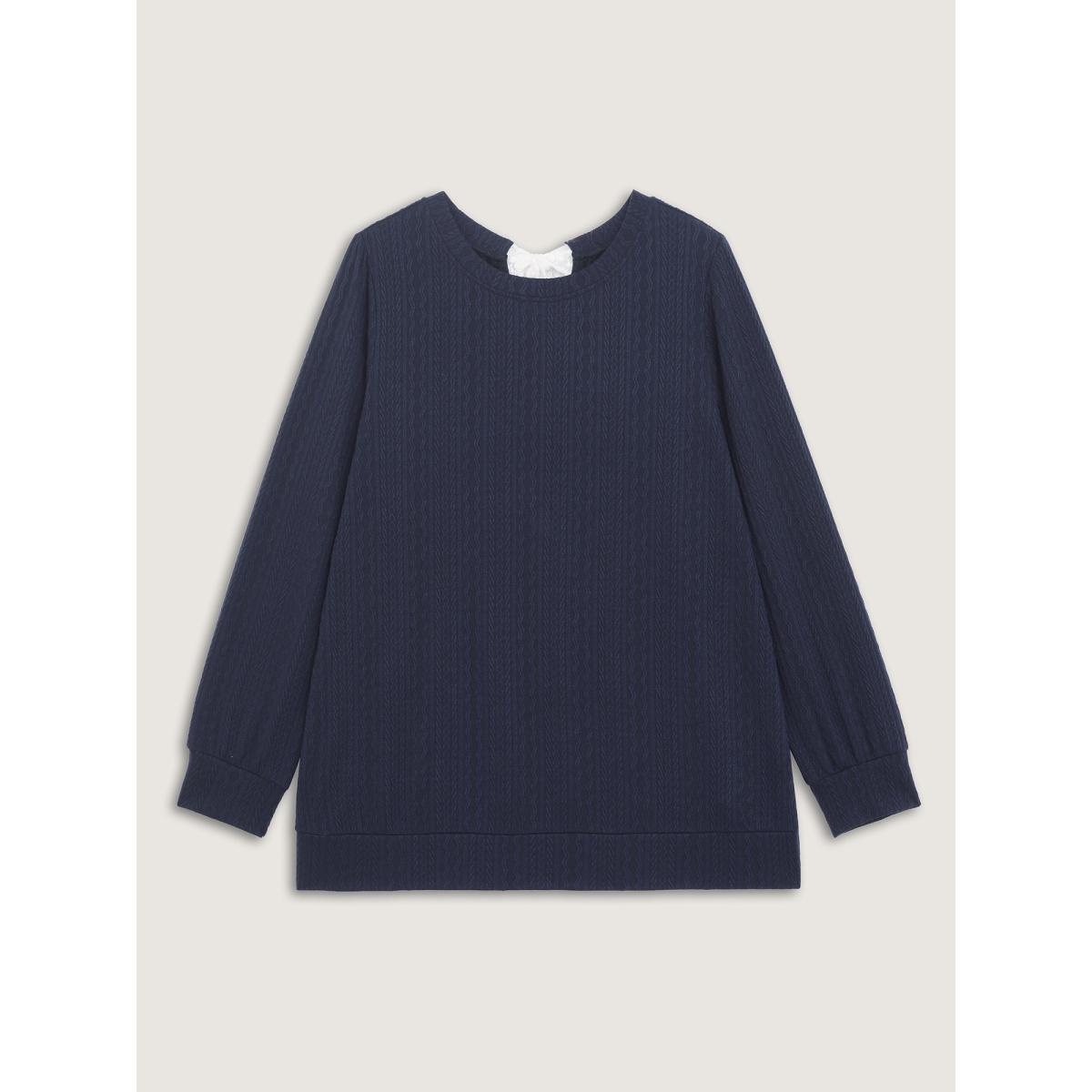Plus Size Textured Bowknot Color Contrast Sweatshirt Women DarkBlue Leisure Tie knot Round Neck Casual Sweatshirts BloomChic 30/6X