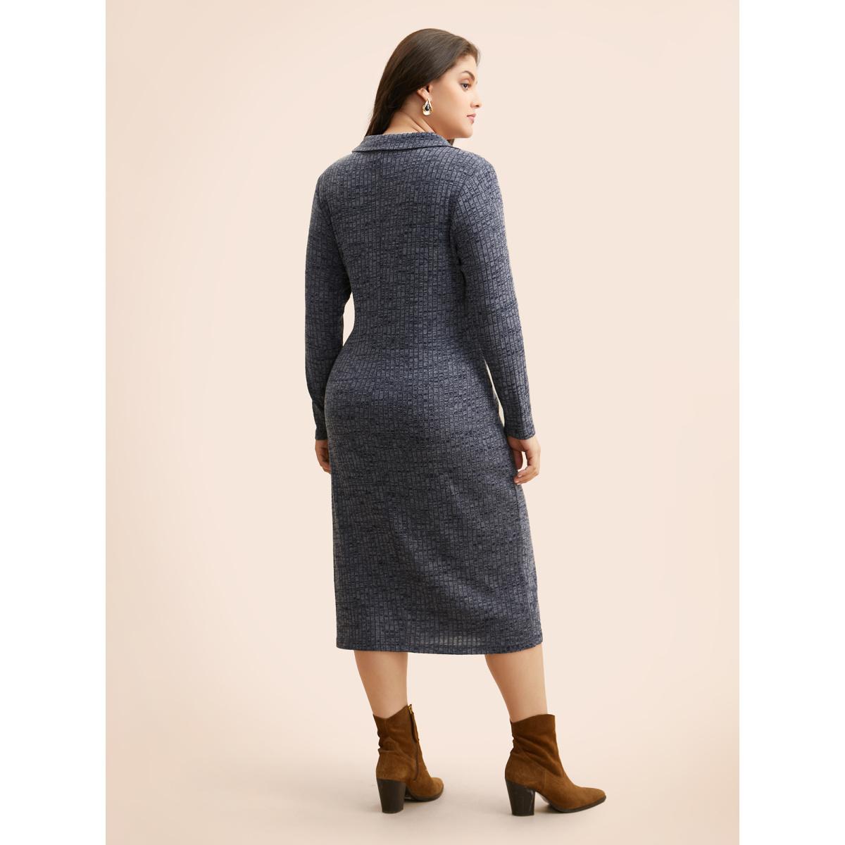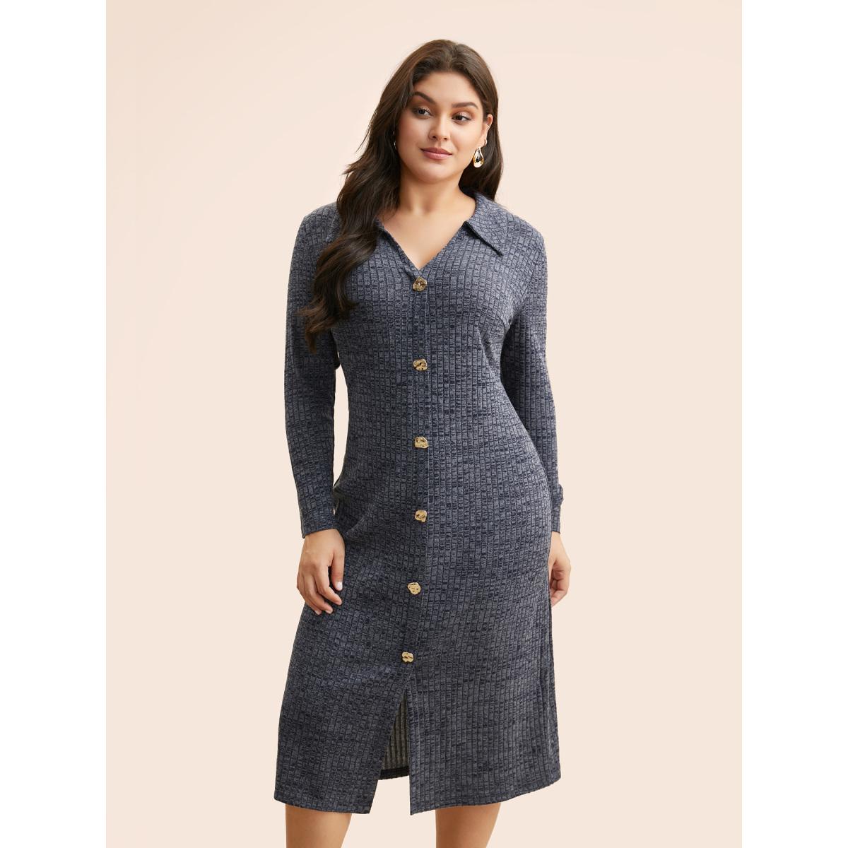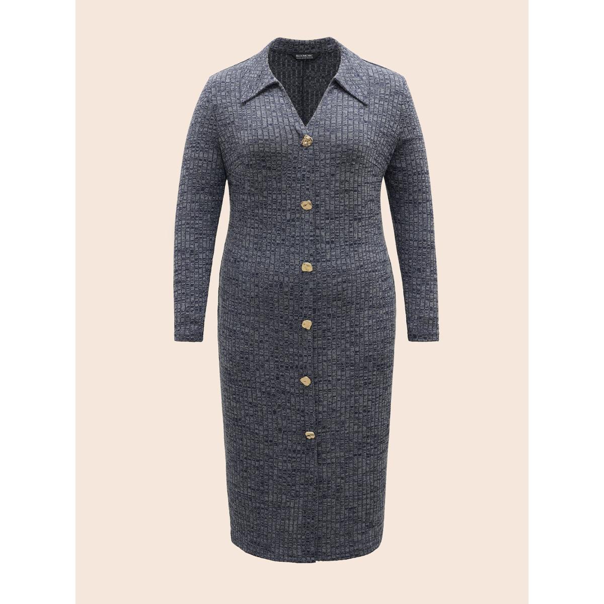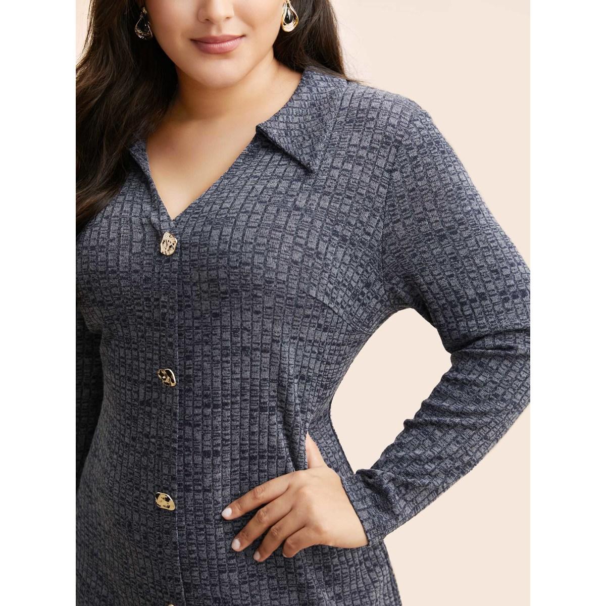 Plus Size Textured Buckle Detail Split Hem Dress Indigo Women At the Office Texture Shirt collar Long Sleeve Curvy BloomChic 30/6X Product Image