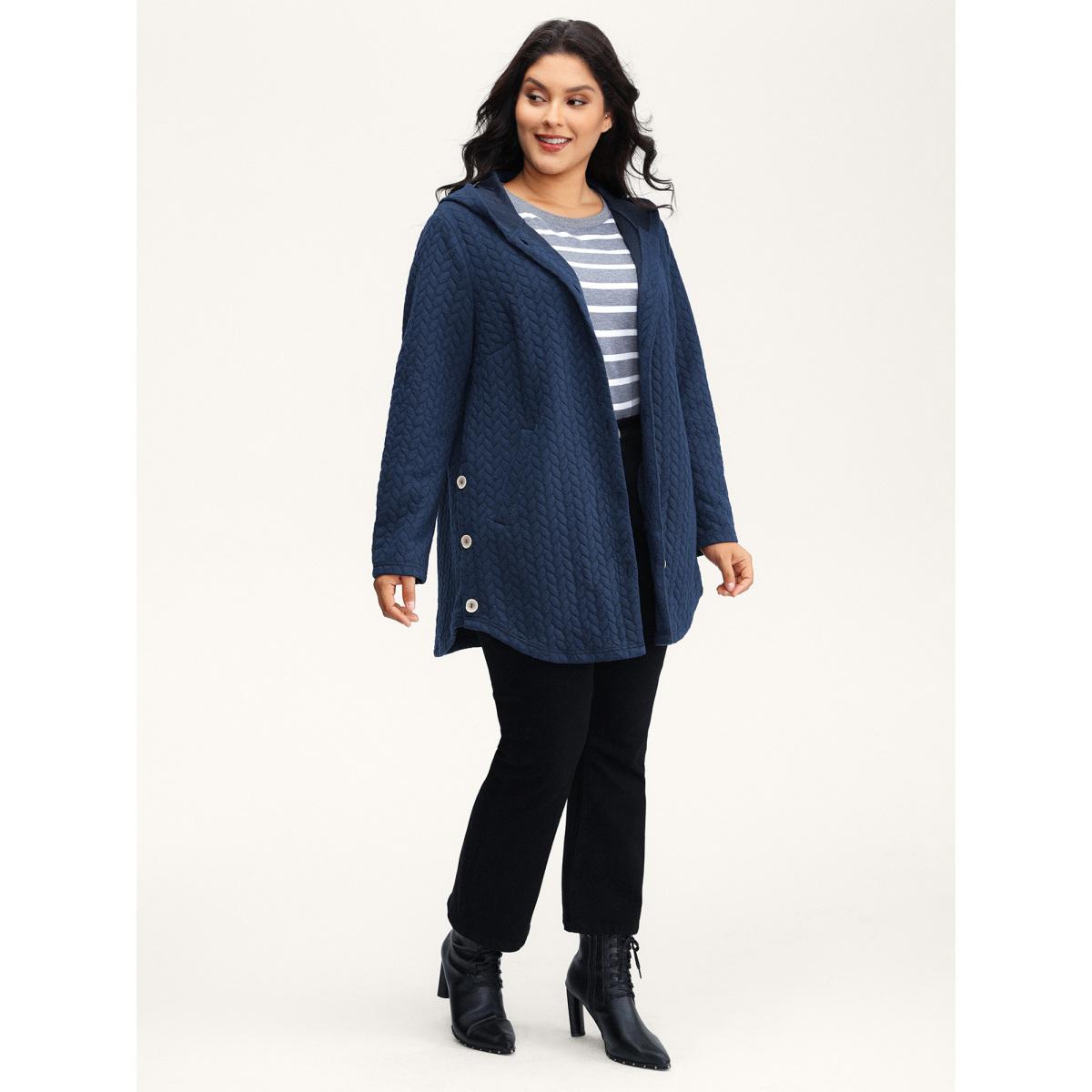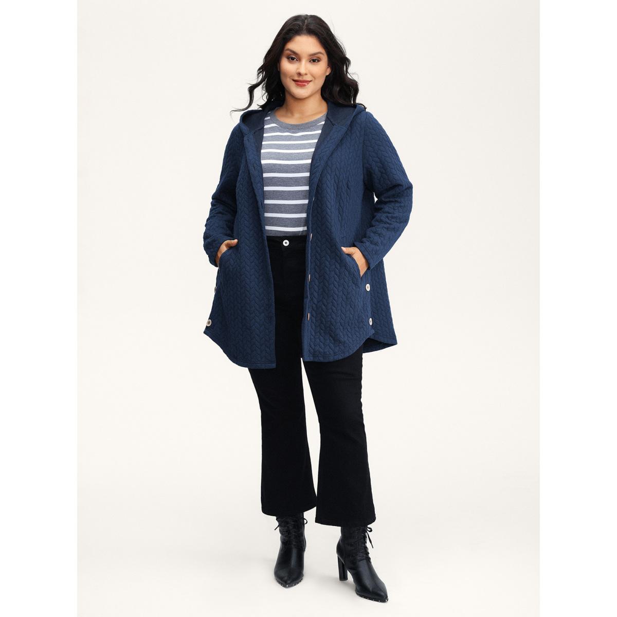 Plus Size Textured Button-Down Long Jacket Women Navy Texture Slanted pocket Casual Jackets BloomChic 30/6X