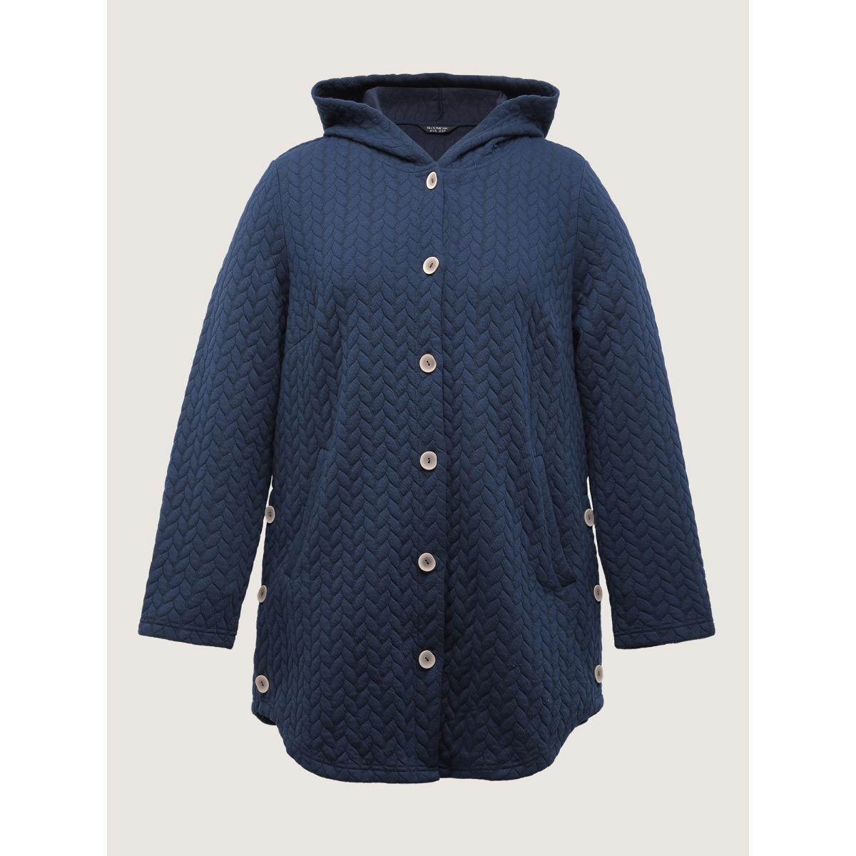 Plus Size Textured Button-Down Long Jacket Women Navy Texture Slanted pocket Casual Jackets BloomChic 30/6X Product Image
