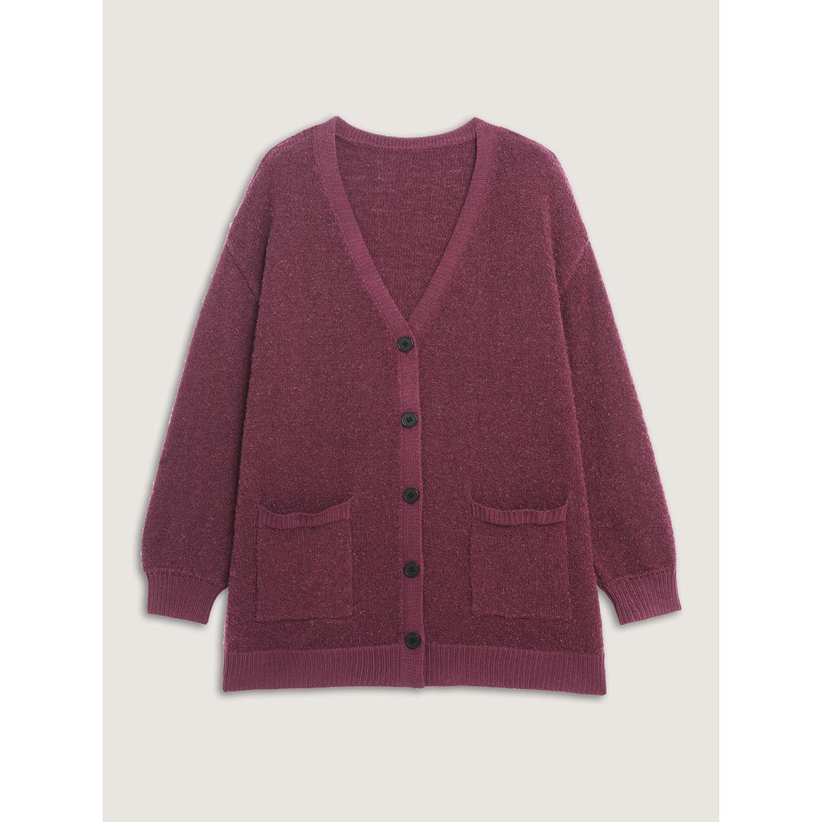 Plus Size Textured Button Pockets Knit Cardigan Plum Women Leisure Loose Long Sleeve Casual Cardigans BloomChic 30/6X
