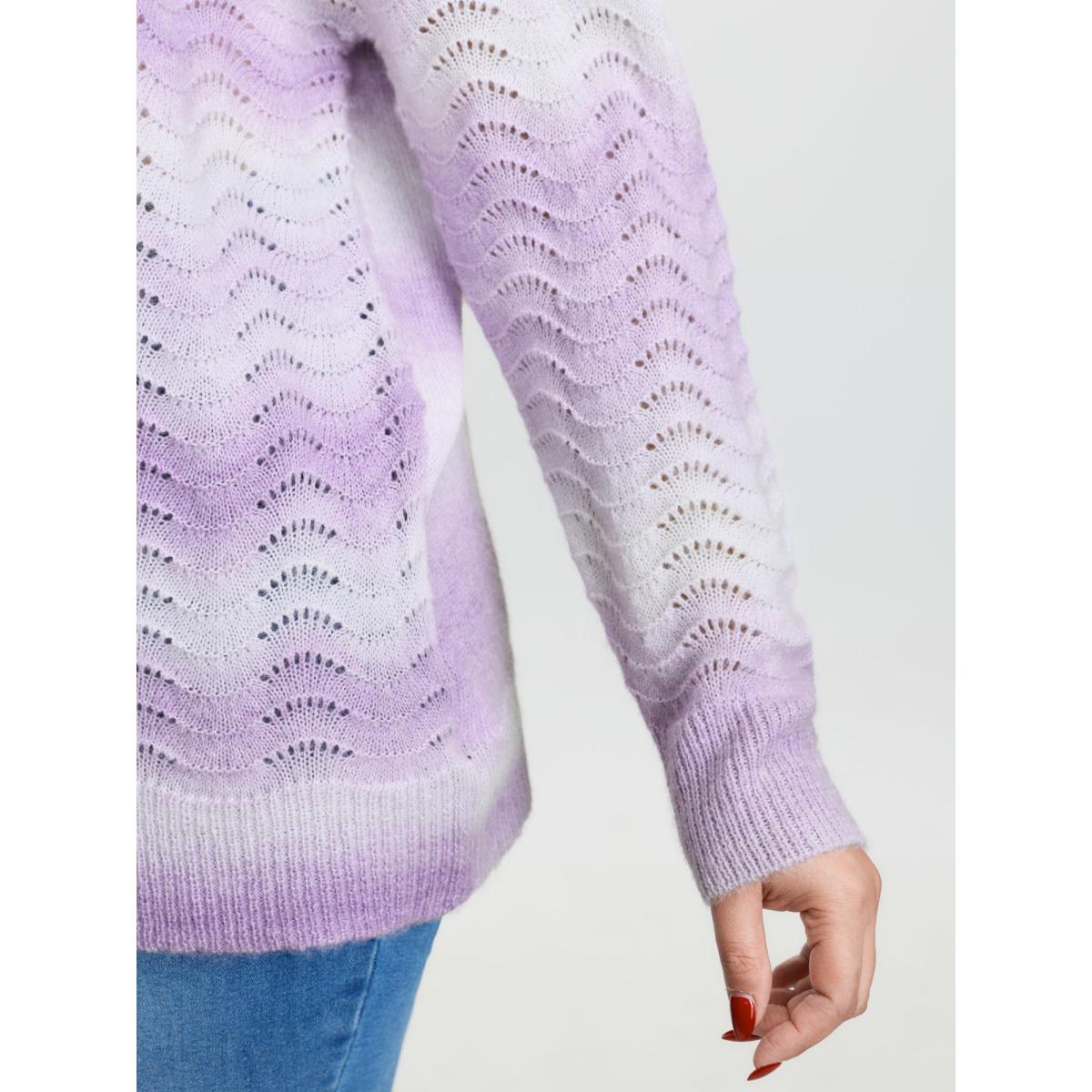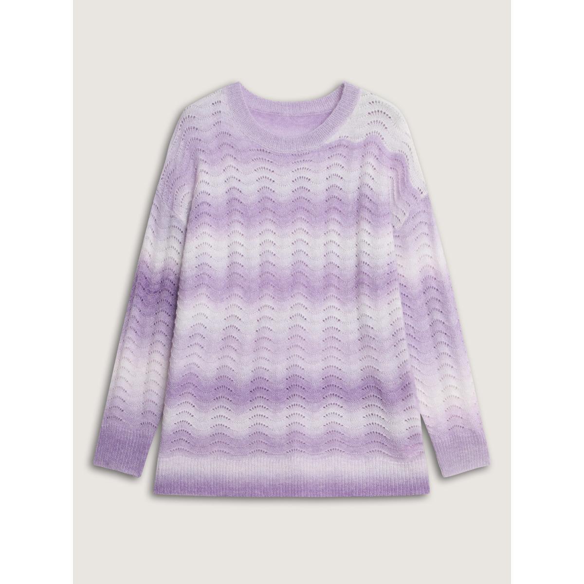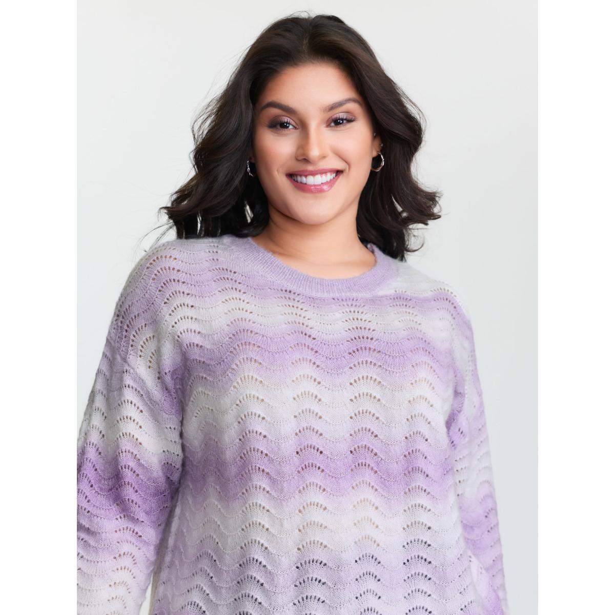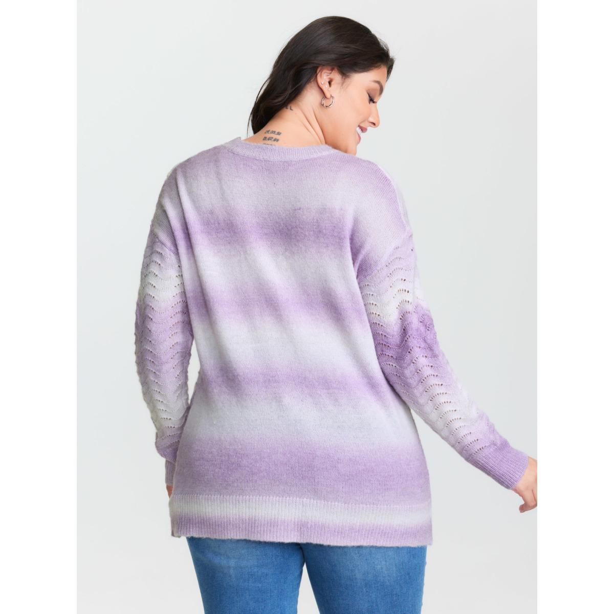 Plus Size Textured Color Gradient Drop Shoulder Pullover Lilac Women Leisure Loose Long Sleeve Round Neck Casual Pullovers BloomChic 22-24/3X