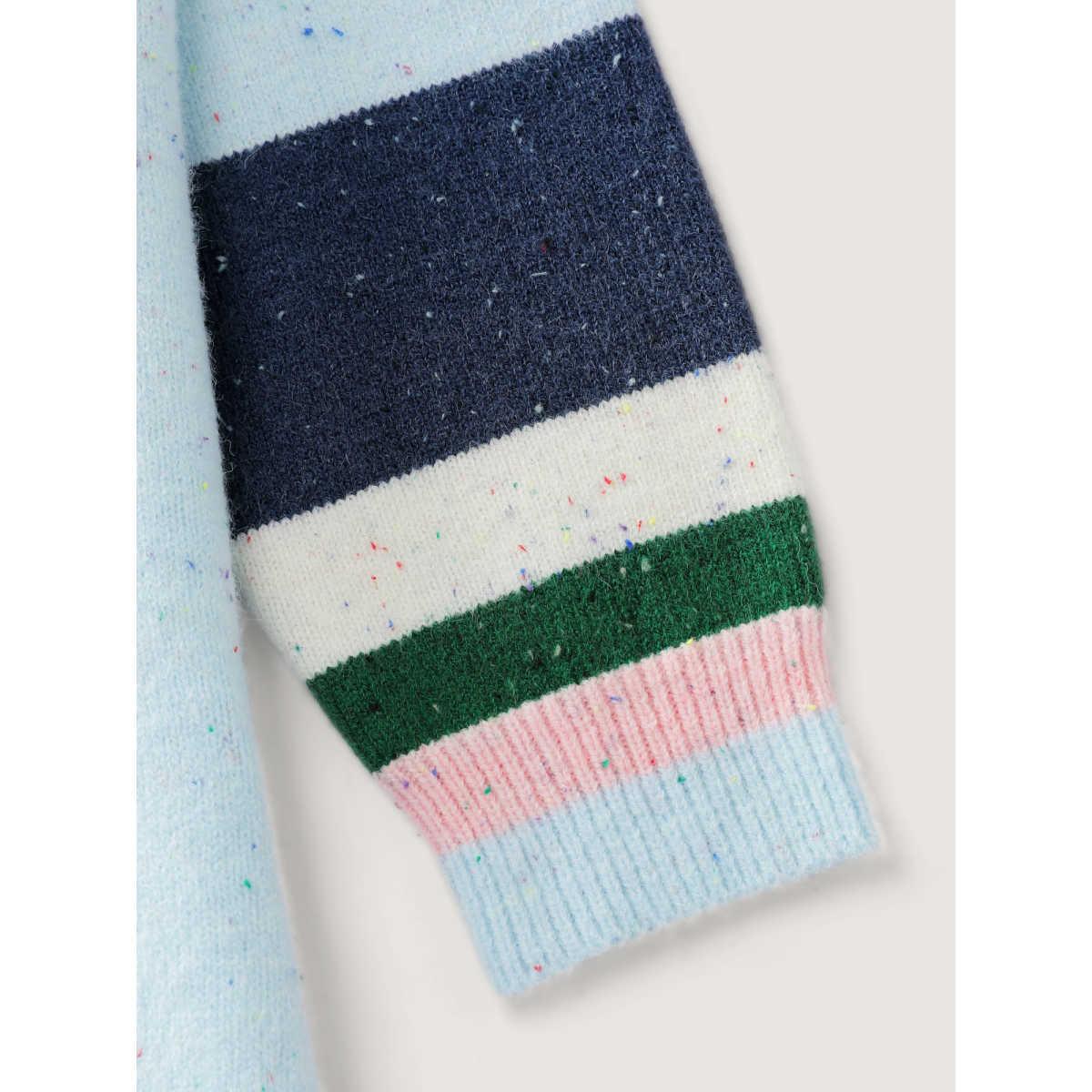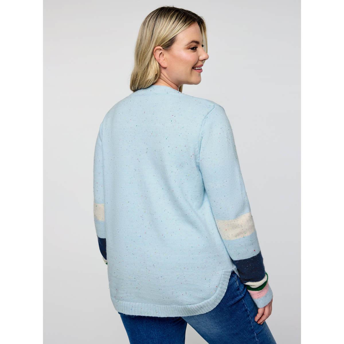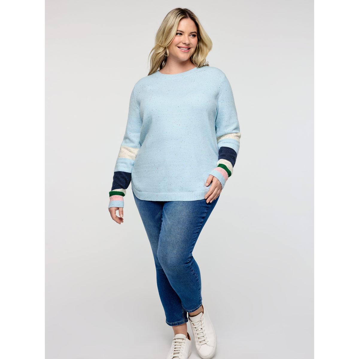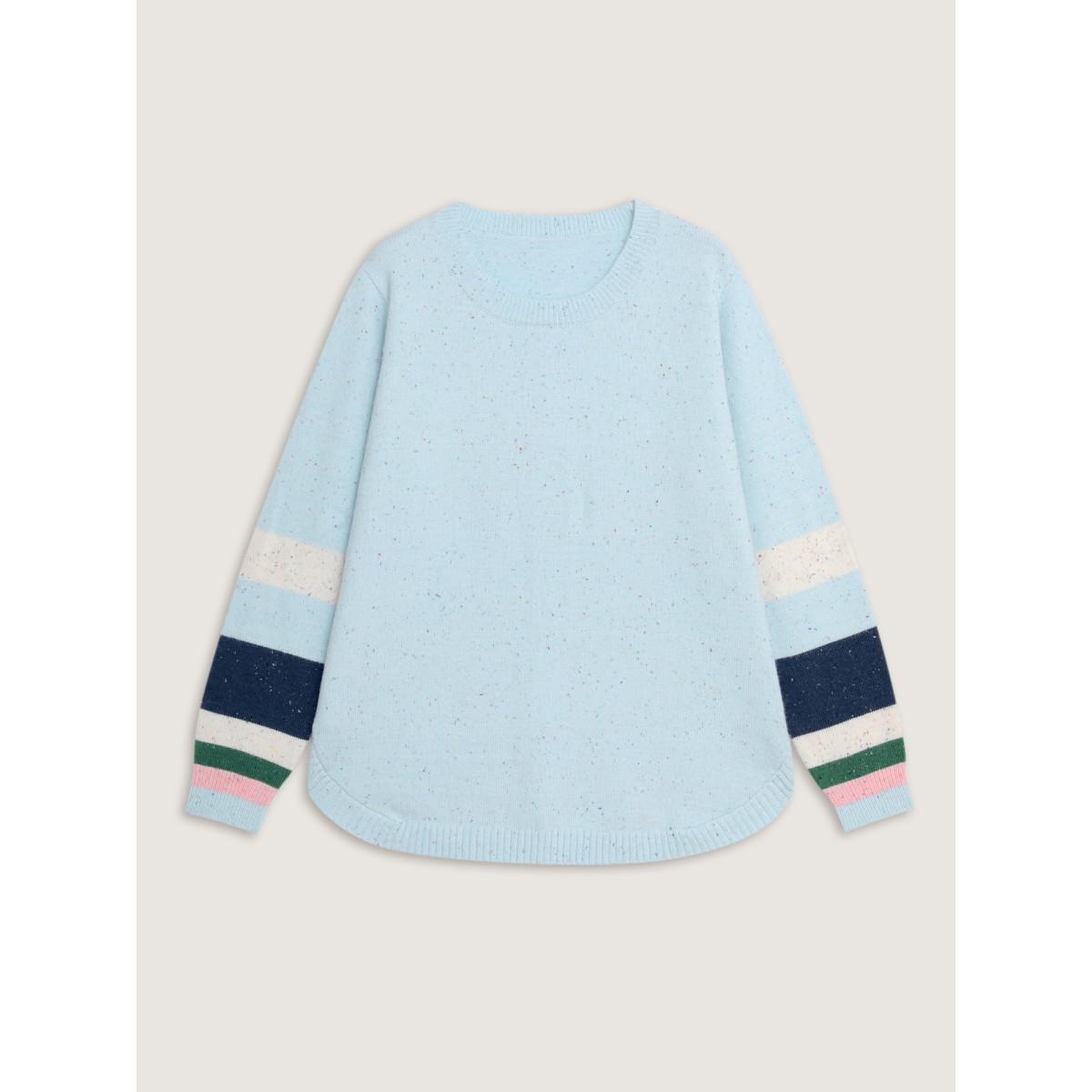 Plus Size Textured Color Stripe Curvy Hem Pullover LightBlue Women Leisure Loose Long Sleeve Round Neck Casual Pullovers BloomChic 12/L