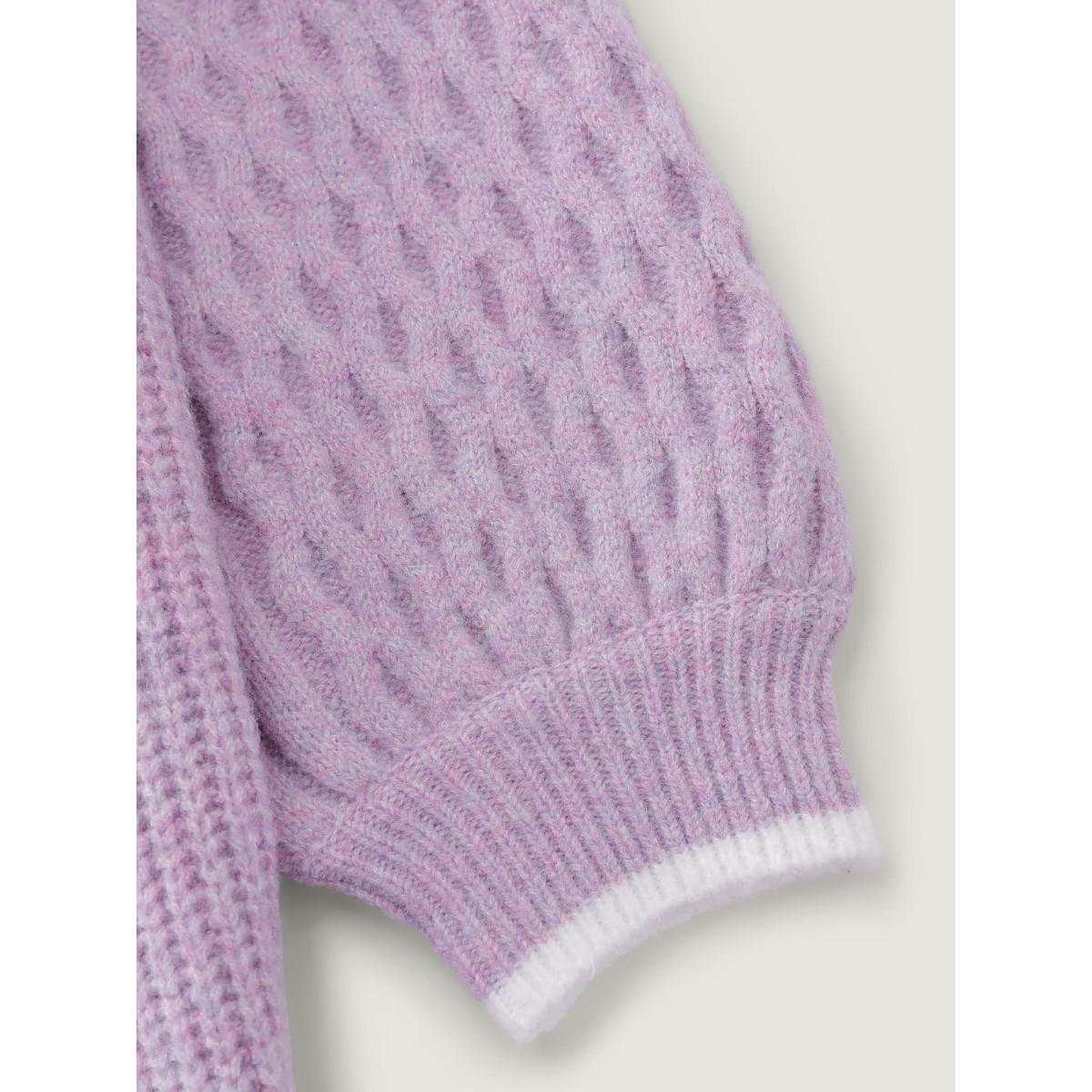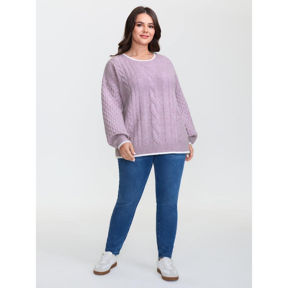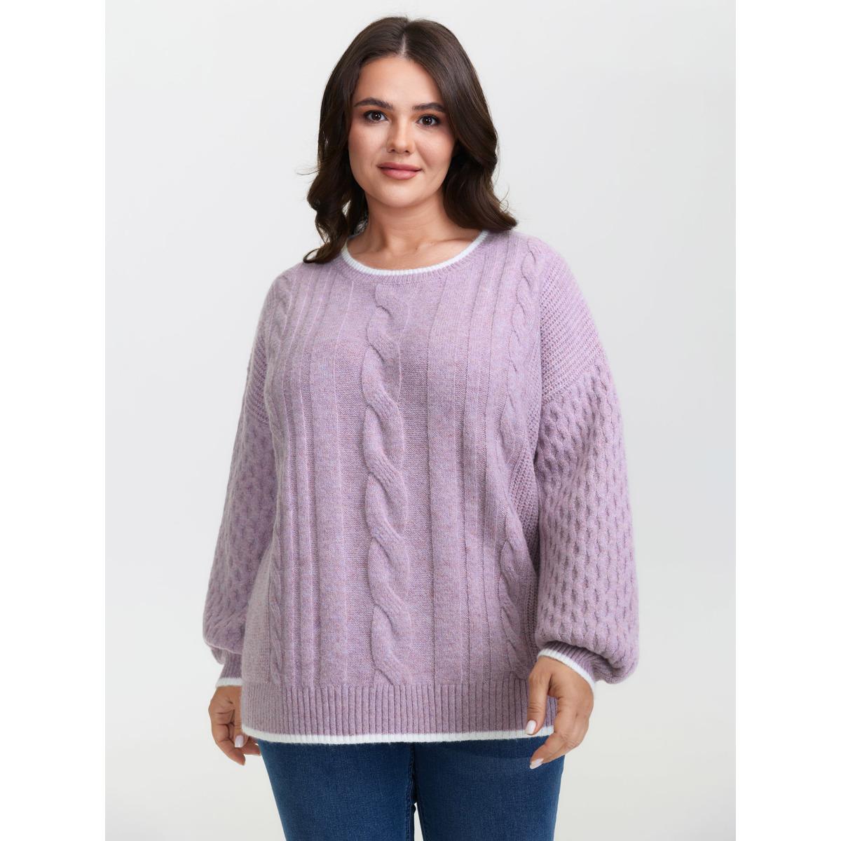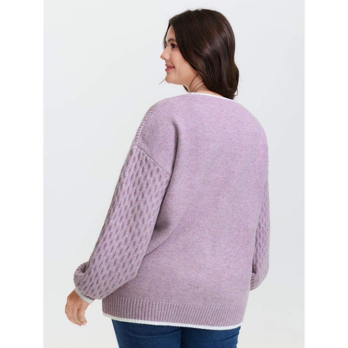 Plus Size Textured Contrast Edges Lantern Sleeve Pullover Lilac Women Casual Loose Long Sleeve Round Neck Casual Pullovers BloomChic 14-16/1X