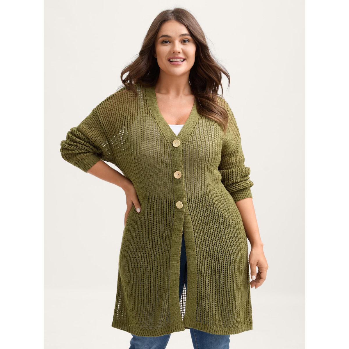 Plus Size Textured Cut-Out Button Detail Cardigan Moss Women Leisure Loose Long Sleeve Casual Cardigans BloomChic 14-16/1X