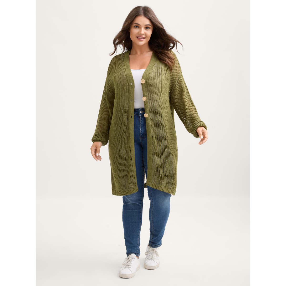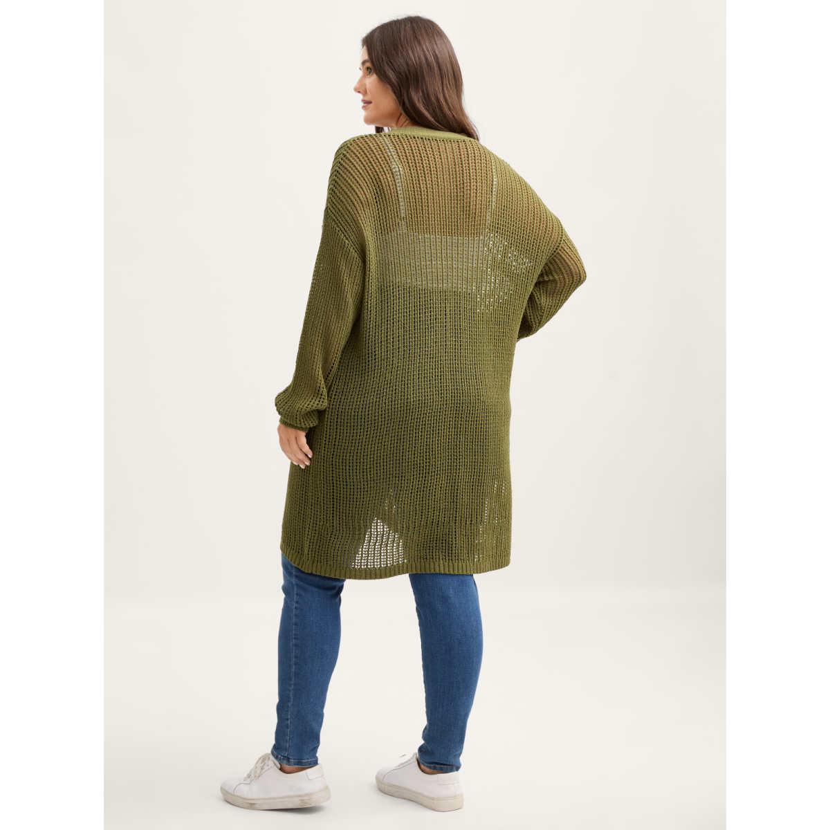 Plus Size Geometric Open Front Hollow Out Cardigan Moss Women Casual Loose Long Sleeve Dailywear Cardigans BloomChic 10/M