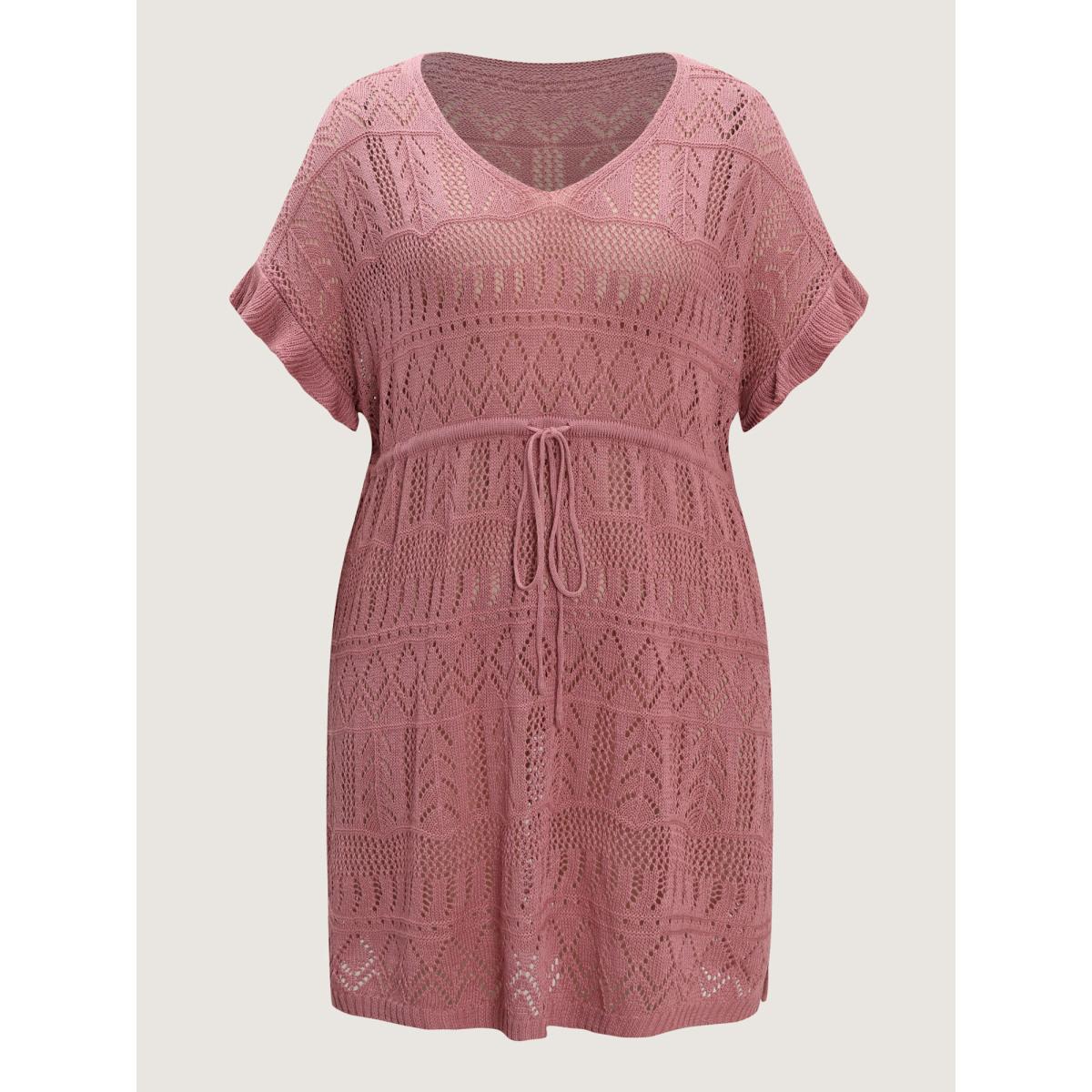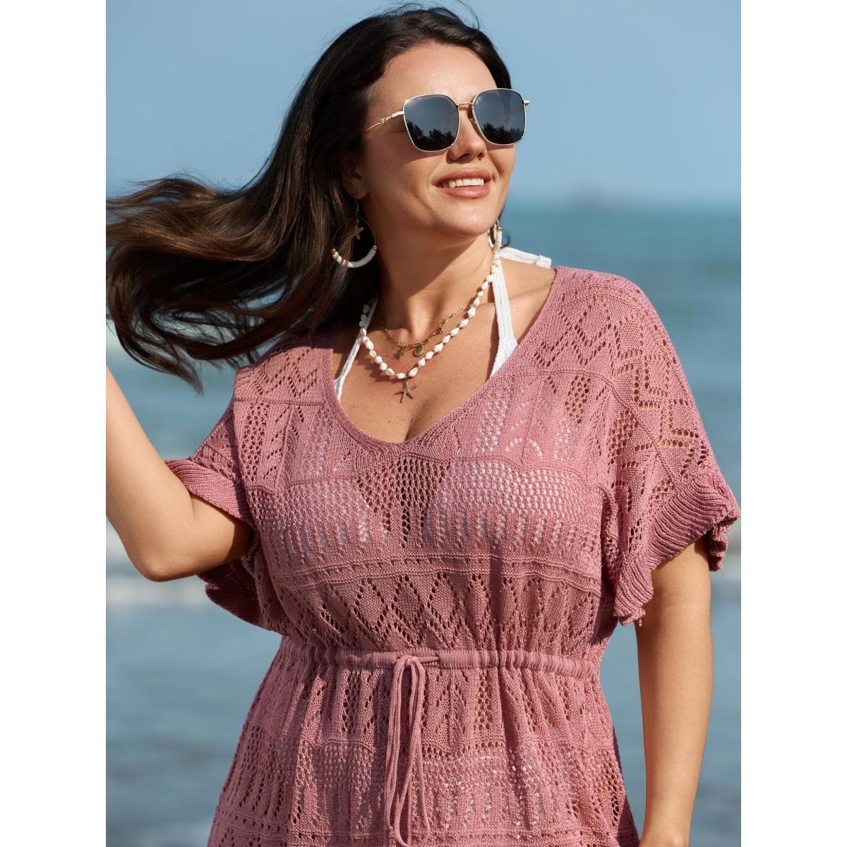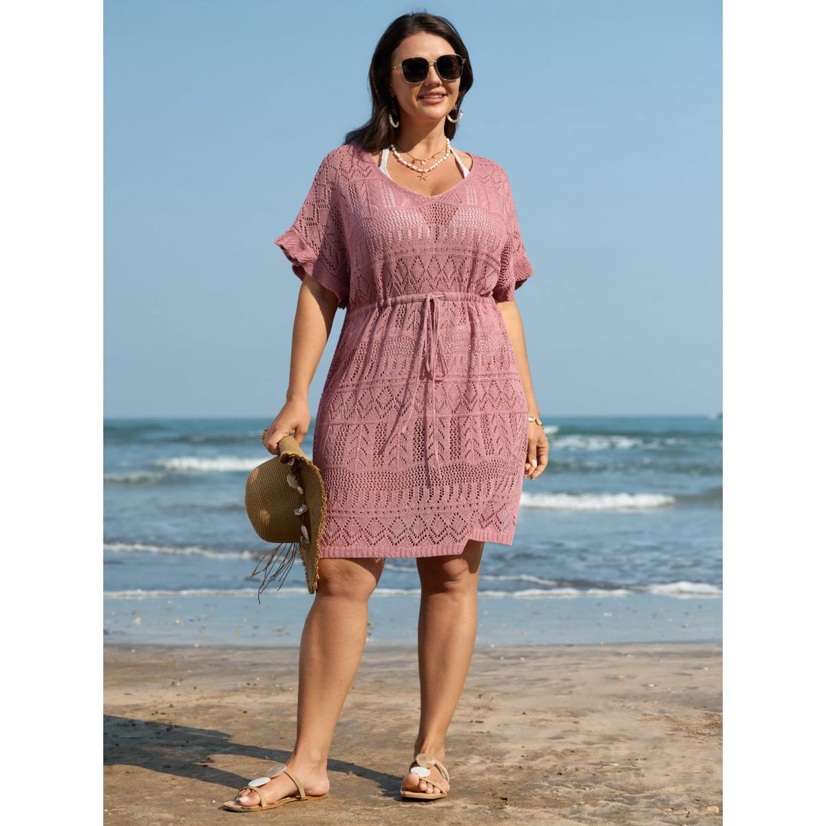 Plus Size Textured Cut-Out Drawstring Swim Cover-Up Women's Swimwear Nudepink Resort Loose Texture Curve Swim Cover Ups BloomChic 14-16/1X