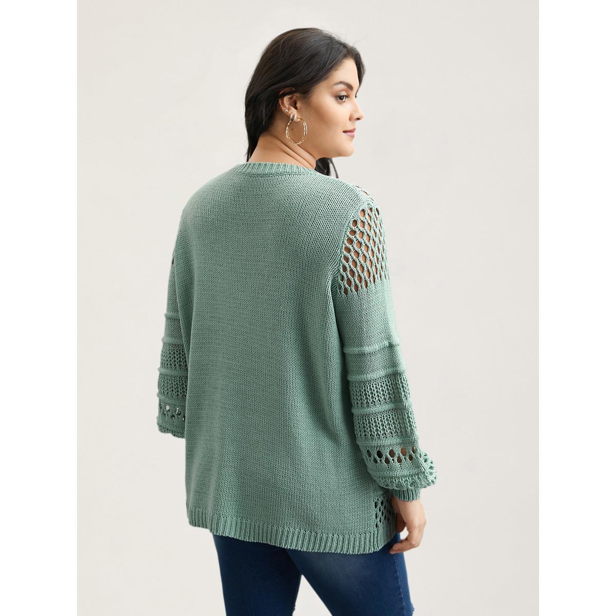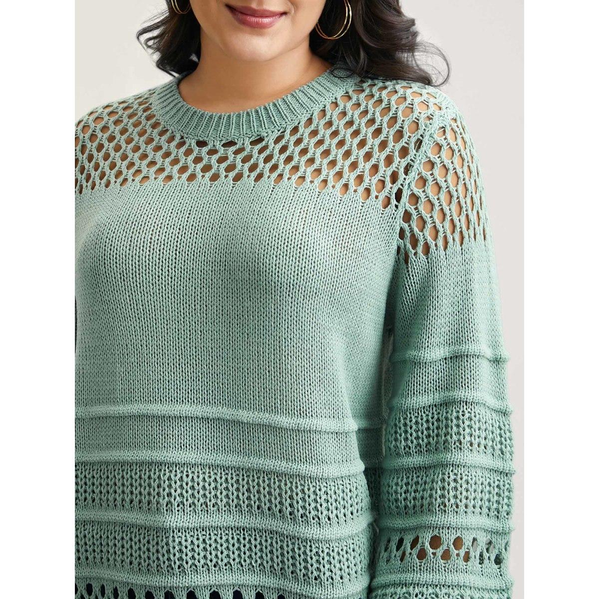 Plus Size Textured Cut-Out Round Neck Pullover Mint Women Casual Loose Long Sleeve Everyday Cardigans BloomChic 22-24/3X