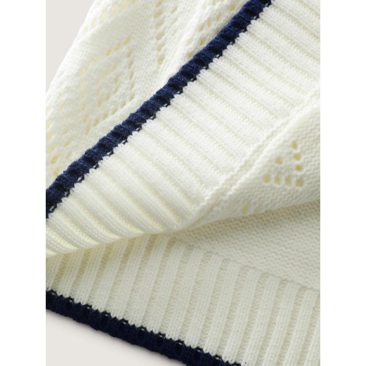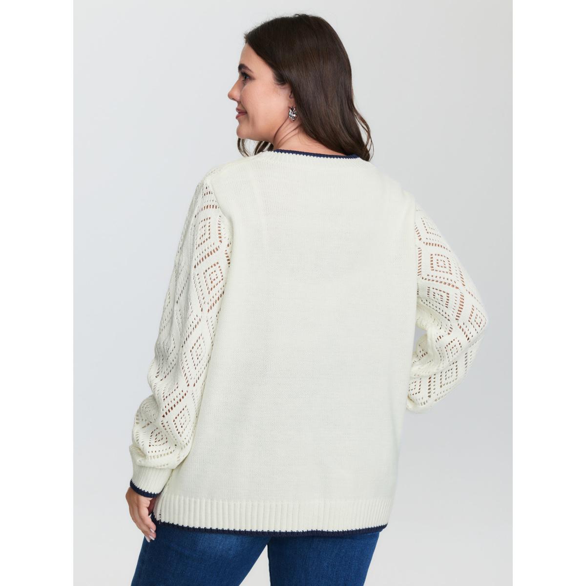 Plus Size Round Neck Color-Block Textured Pullover Ivory Women Casual Loose Long Sleeve Everyday Cardigans BloomChic 14-16/1X
