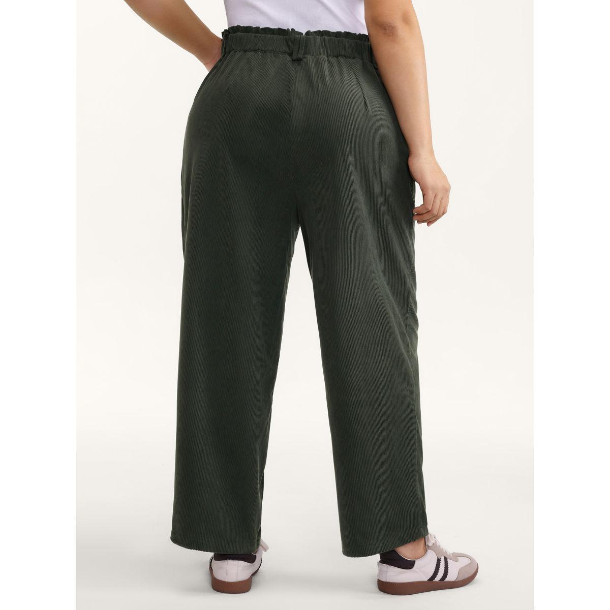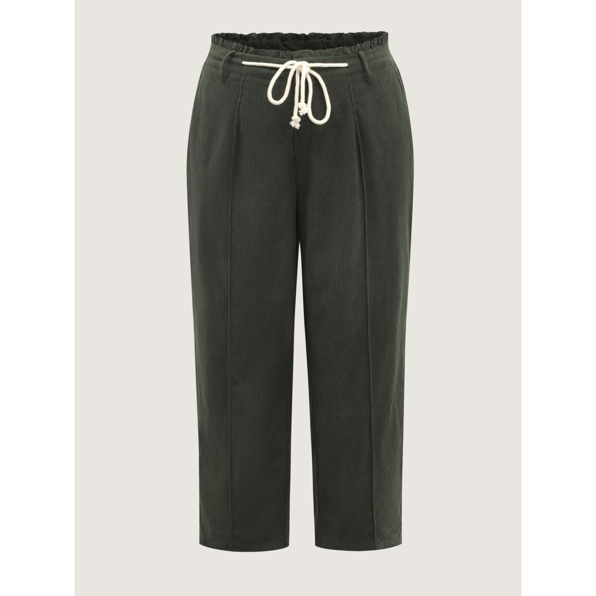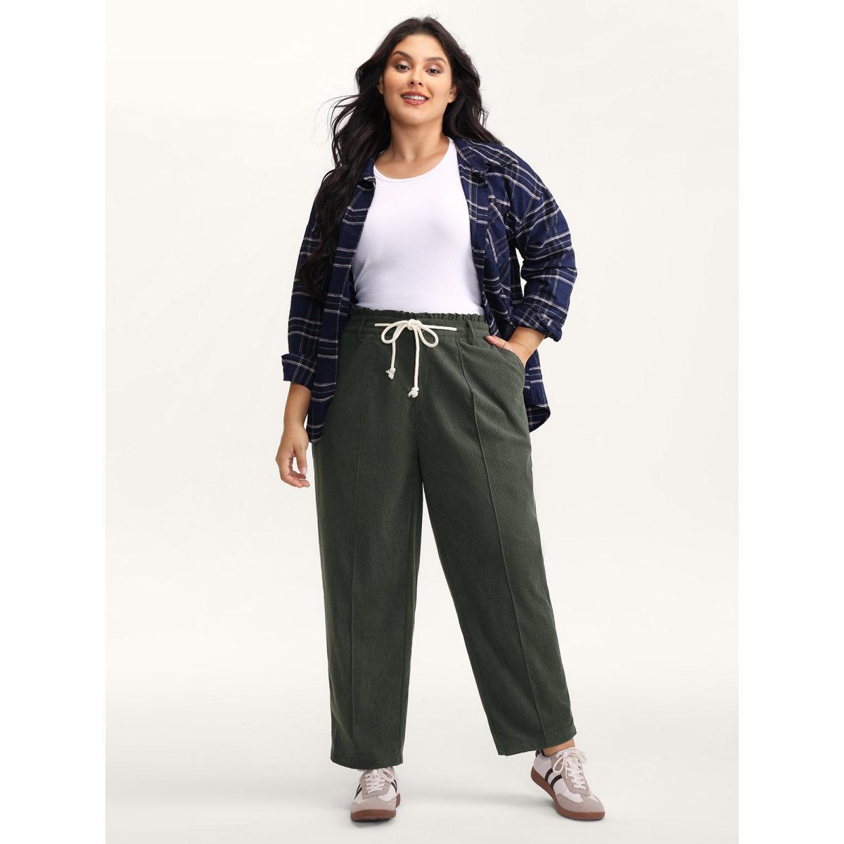 Plus Size Drawstring Waist Straight-Leg Pants Women ArmyGreen Casual Straight Leg Mid Rise Everyday-Casual Pants BloomChic 12/L