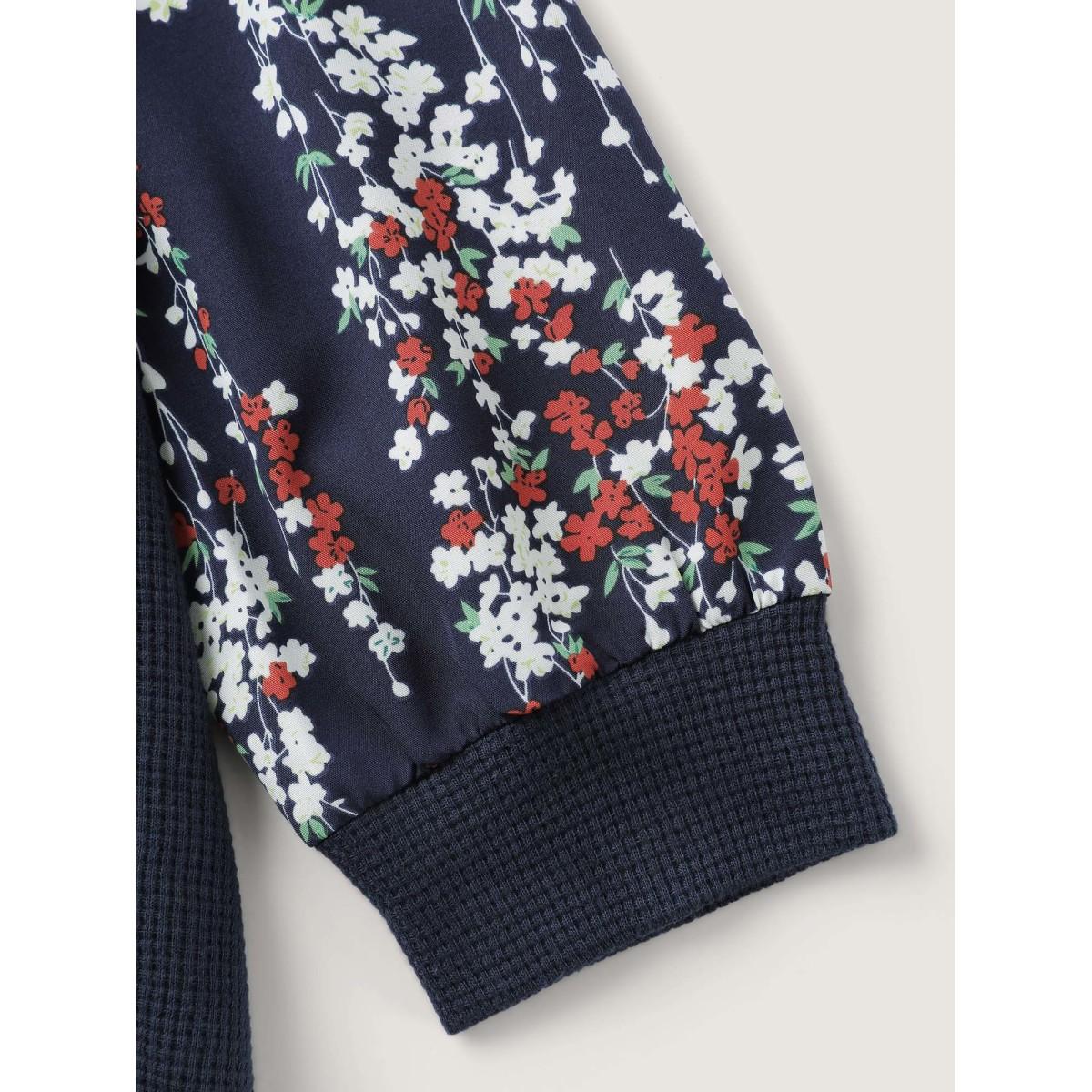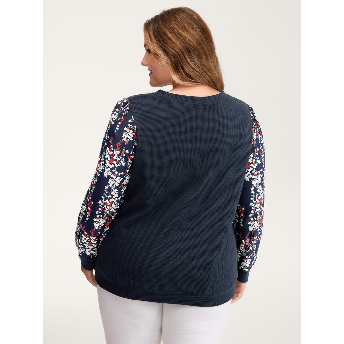 Plus Size Ditsy Floral Patchwork Round Neck Sweatshirt Women Indigo Elegant Patchwork Round Neck Dailywear Sweatshirts BloomChic 26/4X