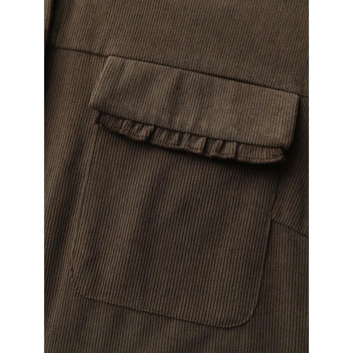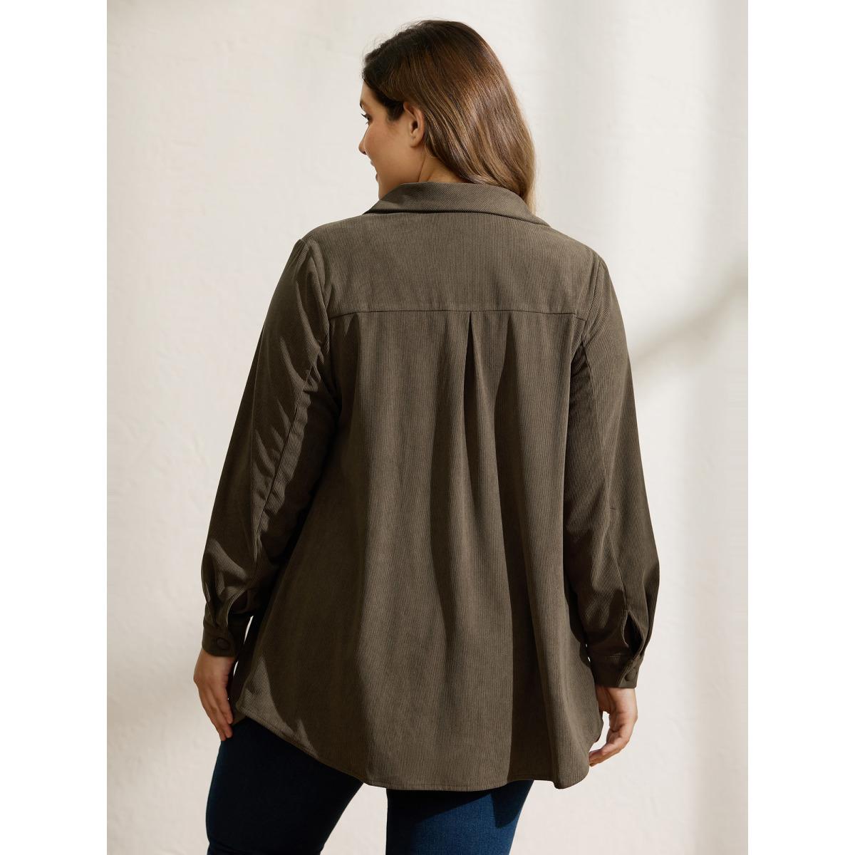 Plus Size Textured Fringe Button Down Jacket Women DarkBrown Texture Patch pocket Casual Jackets BloomChic 28/5X Product Image
