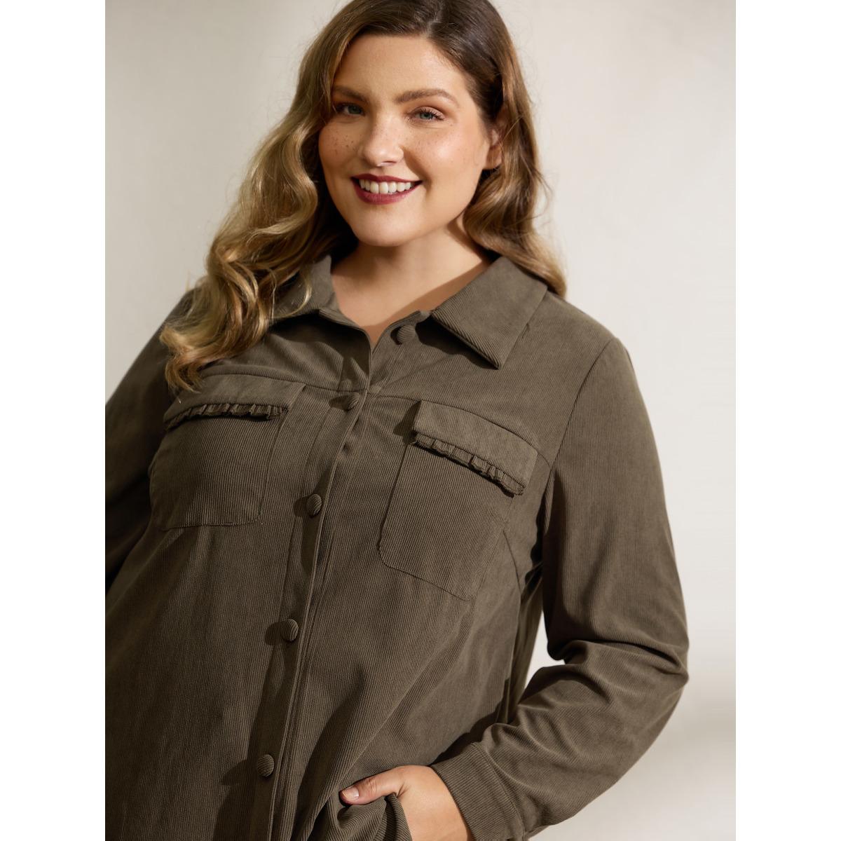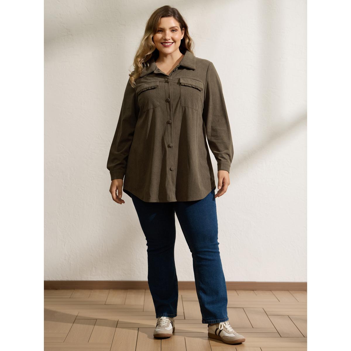 Plus Size Textured Fringe Button Down Jacket Women DarkBrown Texture Patch pocket Casual Jackets BloomChic 28/5X