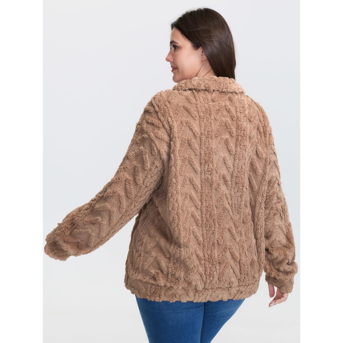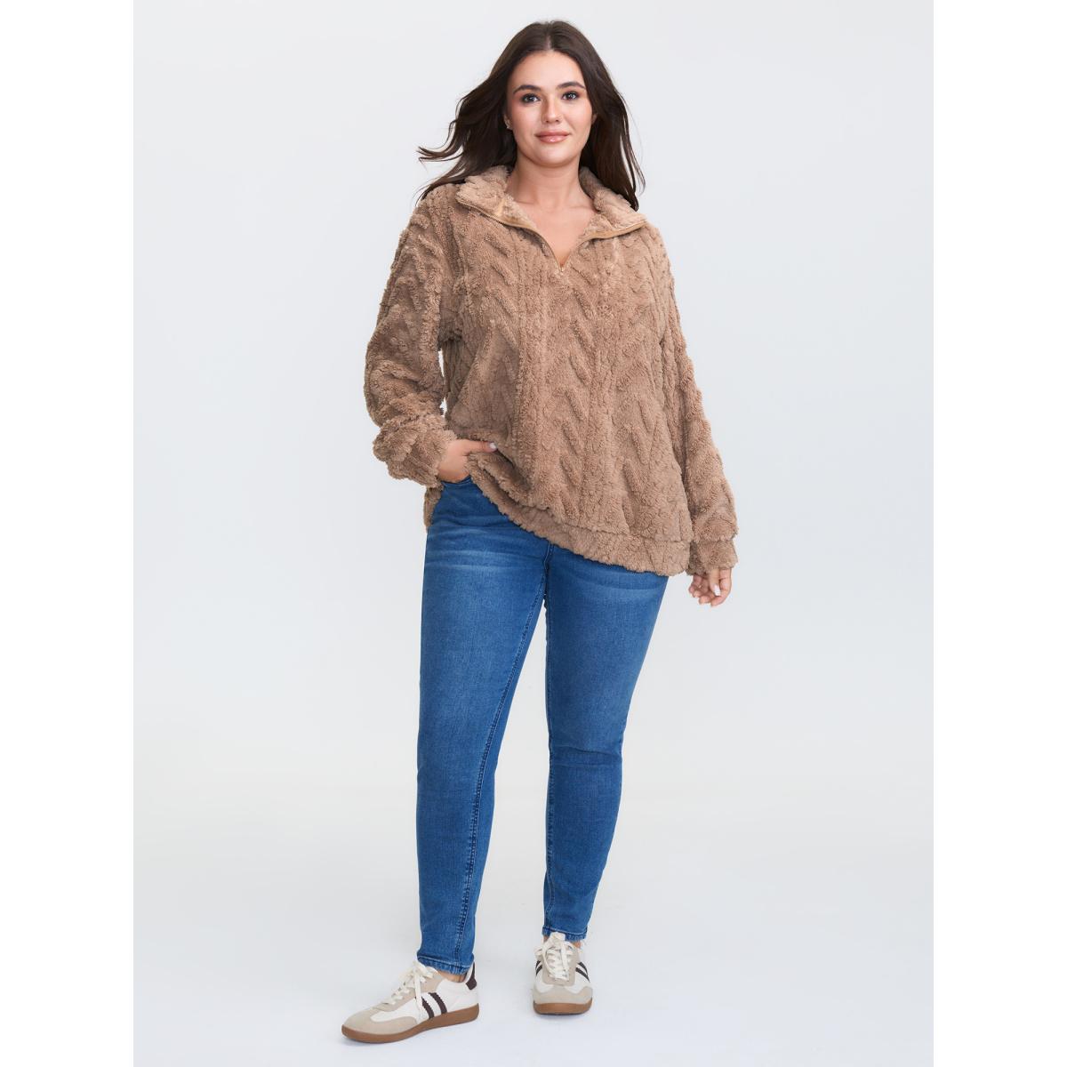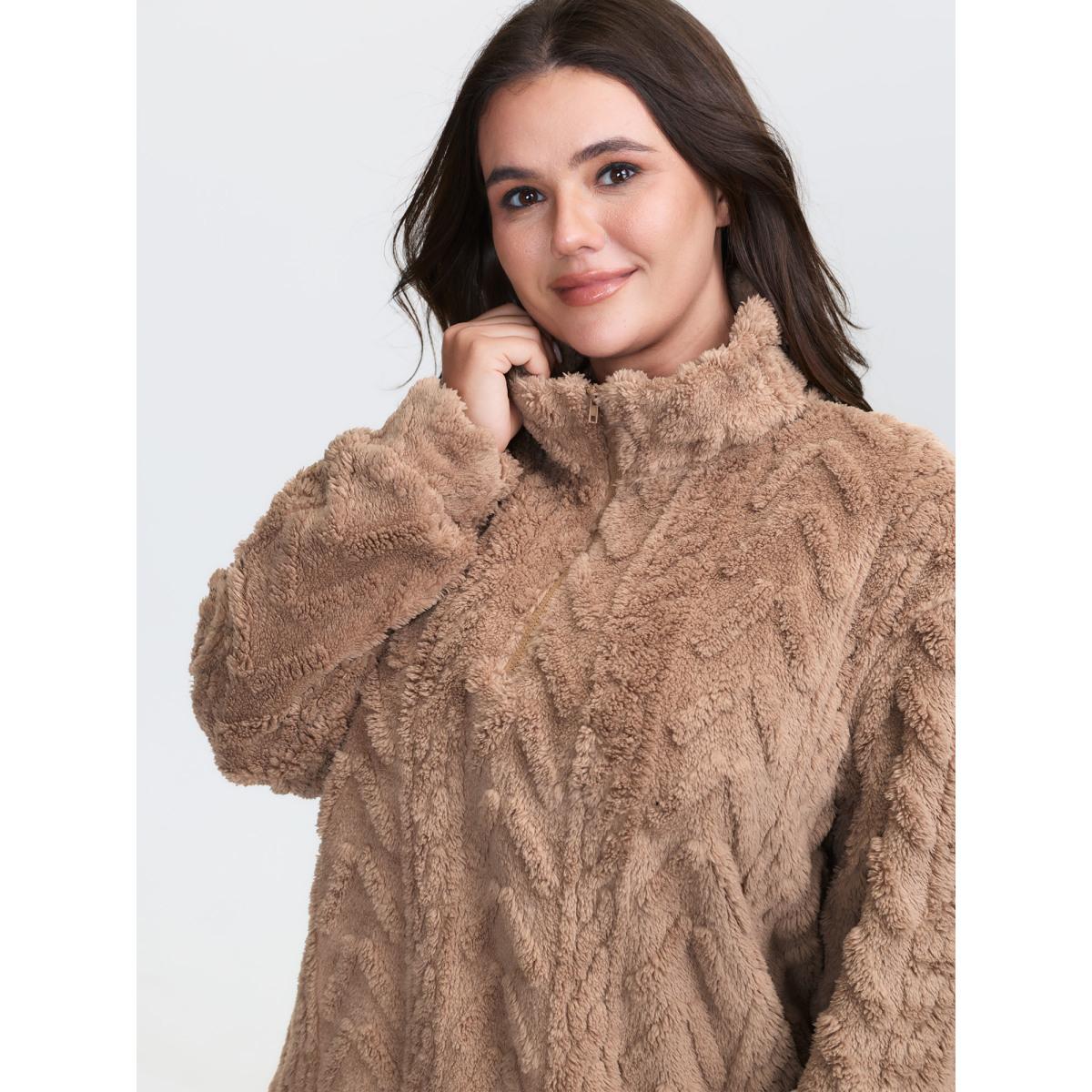 Plus Size Textured Half-Zipper Drop Shoulder Sweatshirt Women LightBrown Leisure Texture Mock Neck Casual Sweatshirts BloomChic 28/5X