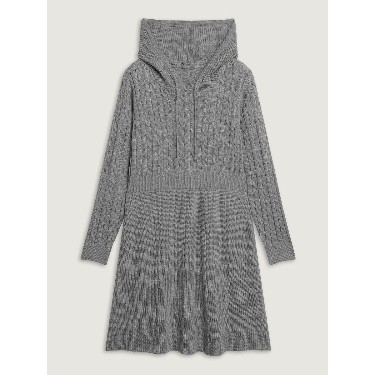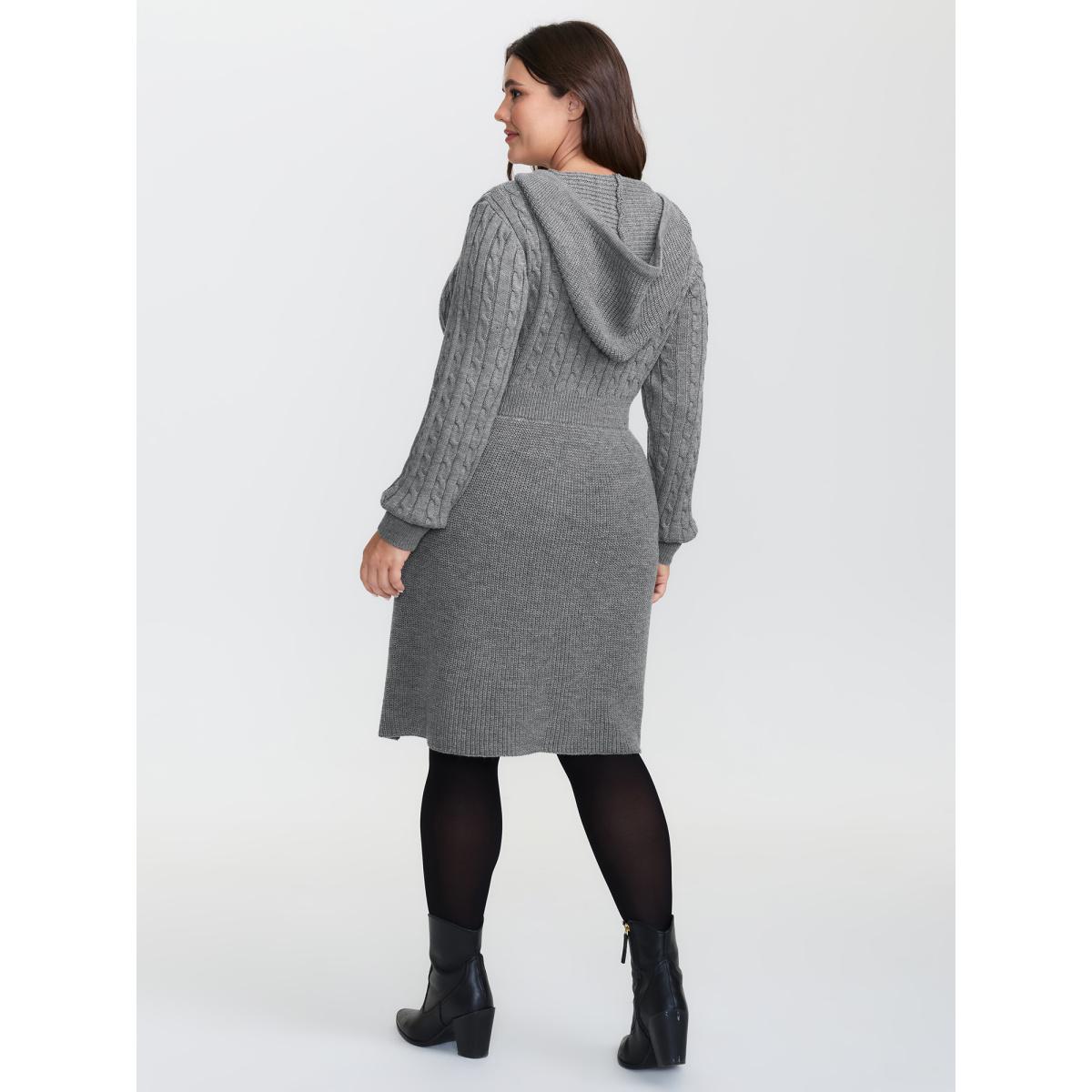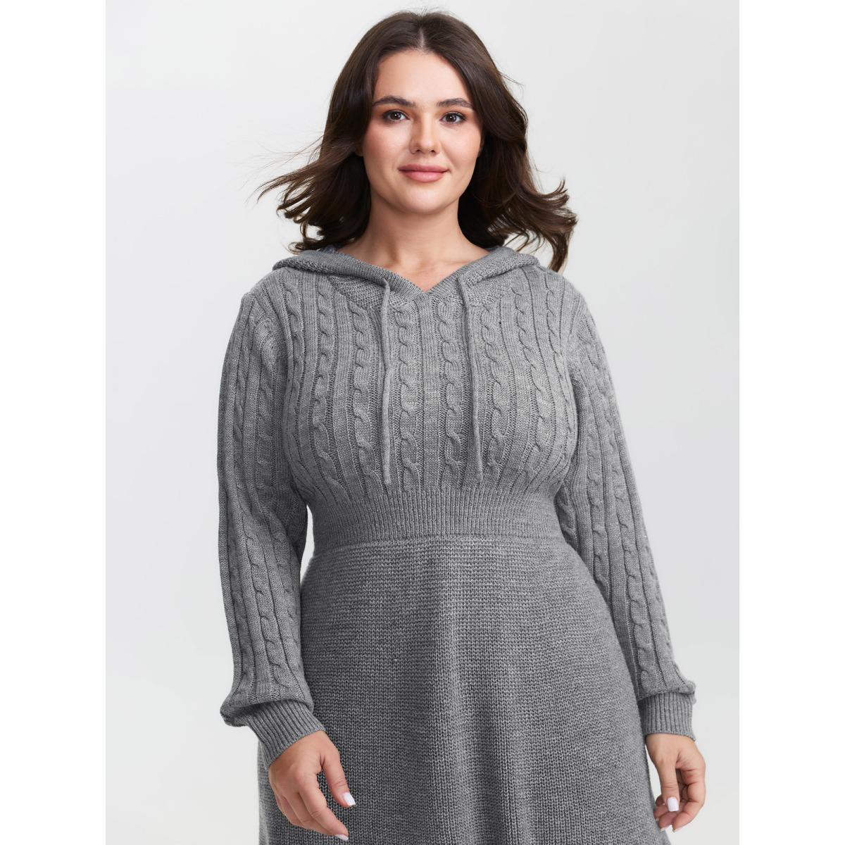 Plus Size Textured Hooded Waist-Defining Sweater Dress DarkGray Women Loose Long Sleeve Casual Sweater Dresses BloomChic 30/6X