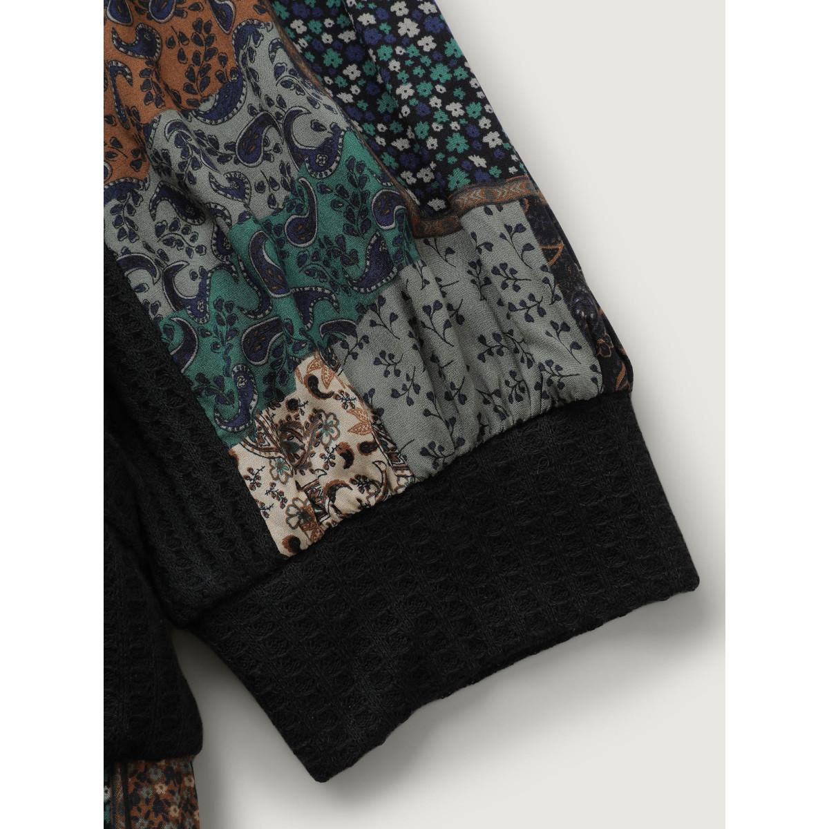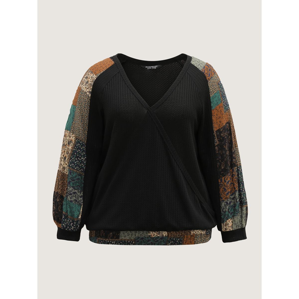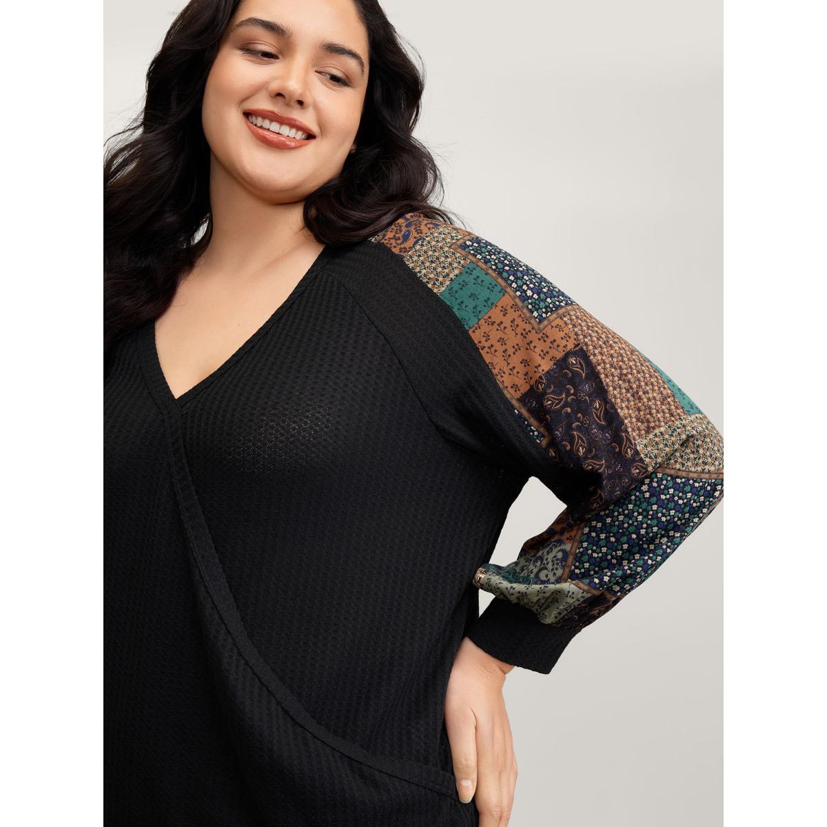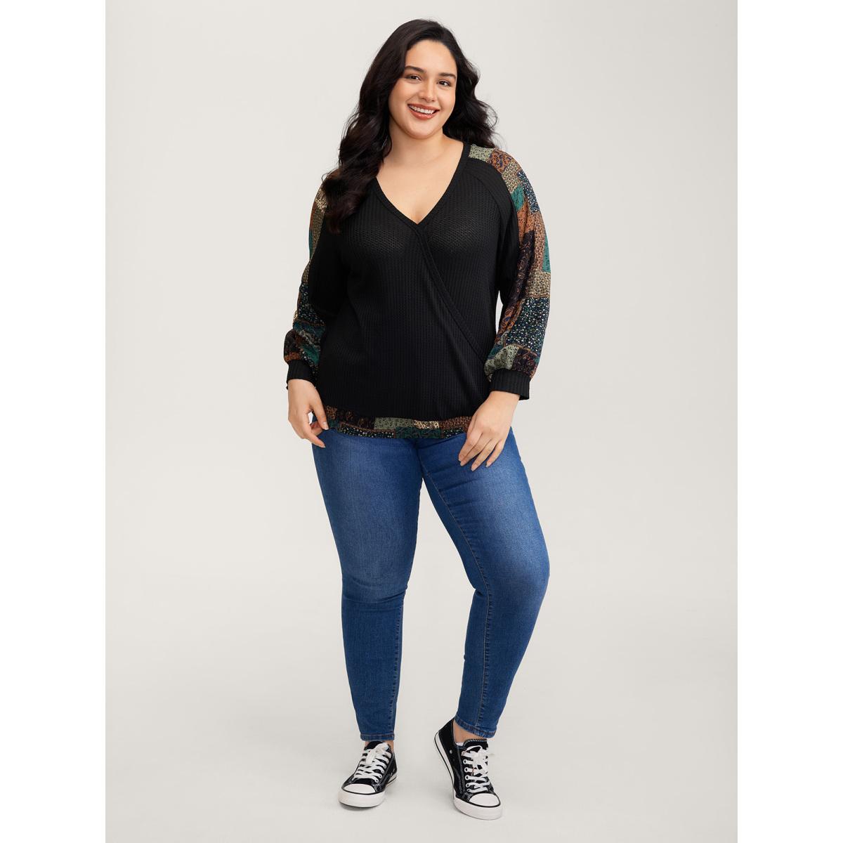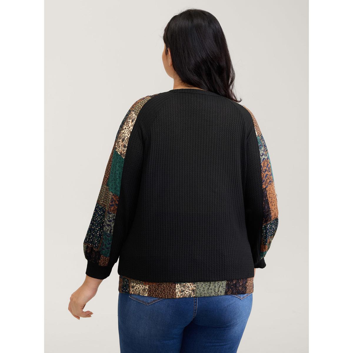 Plus Size Textured Lace Trim Contrast Sleeve Sweatshirt Women Black Leisure Non Overlap Collar Casual Sweatshirts BloomChic 28/5X