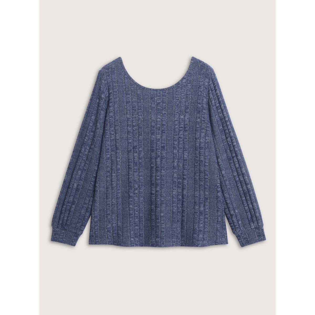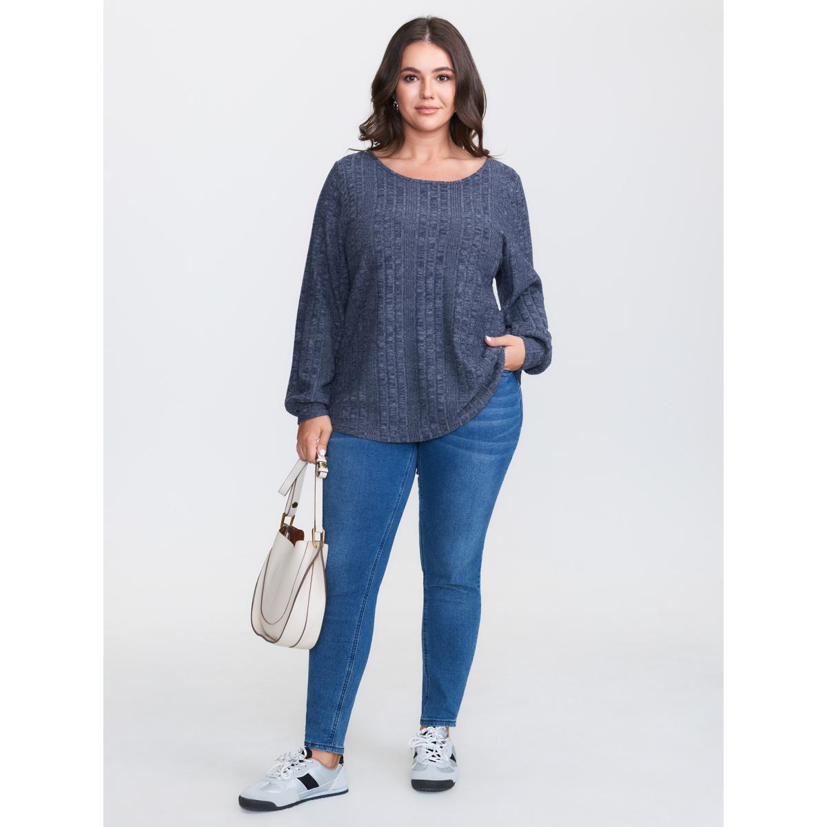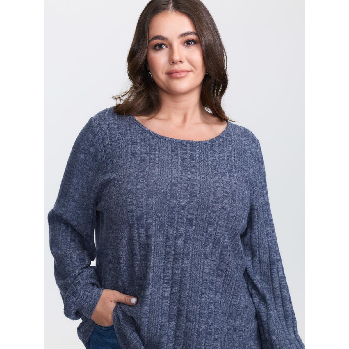 Plus Size Rib Knit Striped Round Neck Sweatshirt Women Blue Casual Non Round Neck Everyday Sweatshirts BloomChic 30/6X