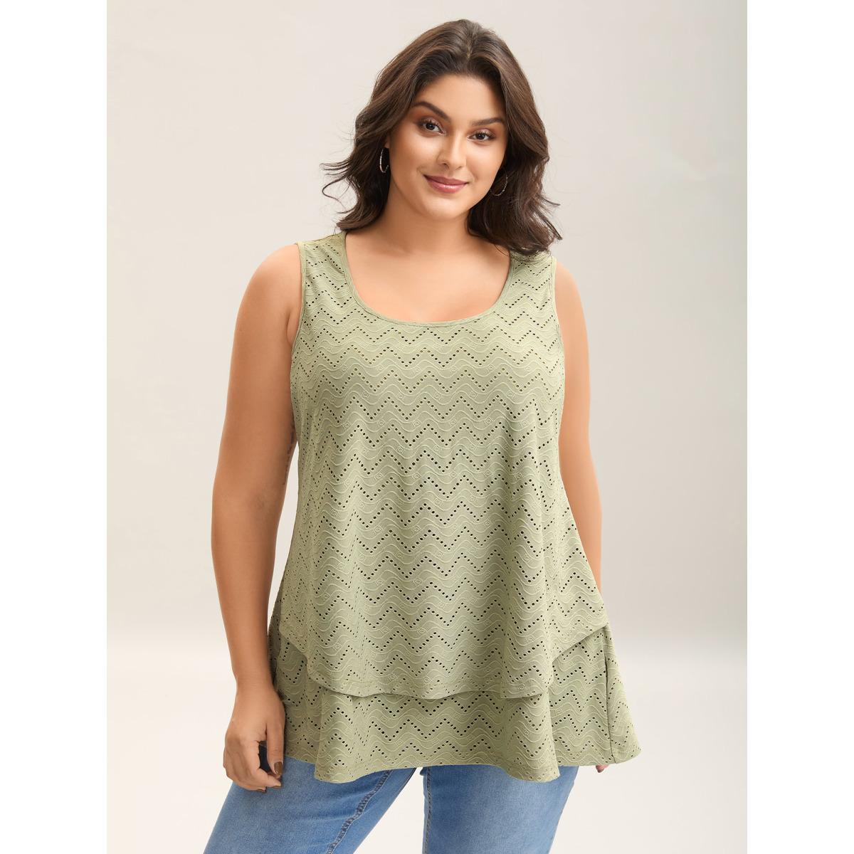 Plus Size Textured Layered Hem Tank Top Women Sage Texture Round Neck Everyday-Casual Tank Tops Camis BloomChic 12/L Product Image