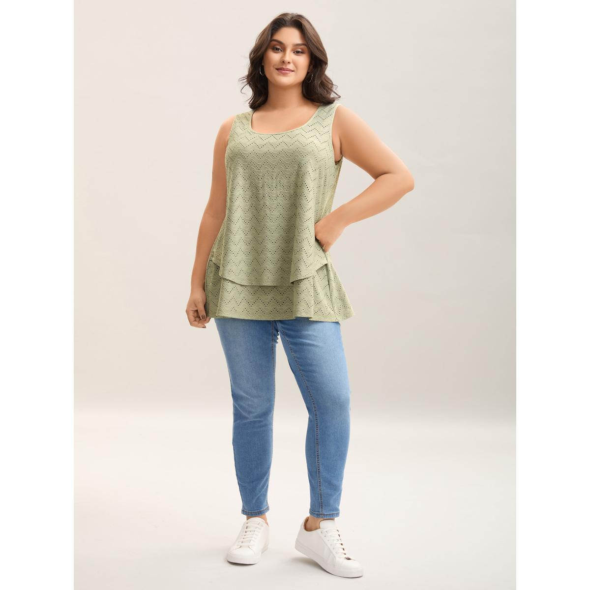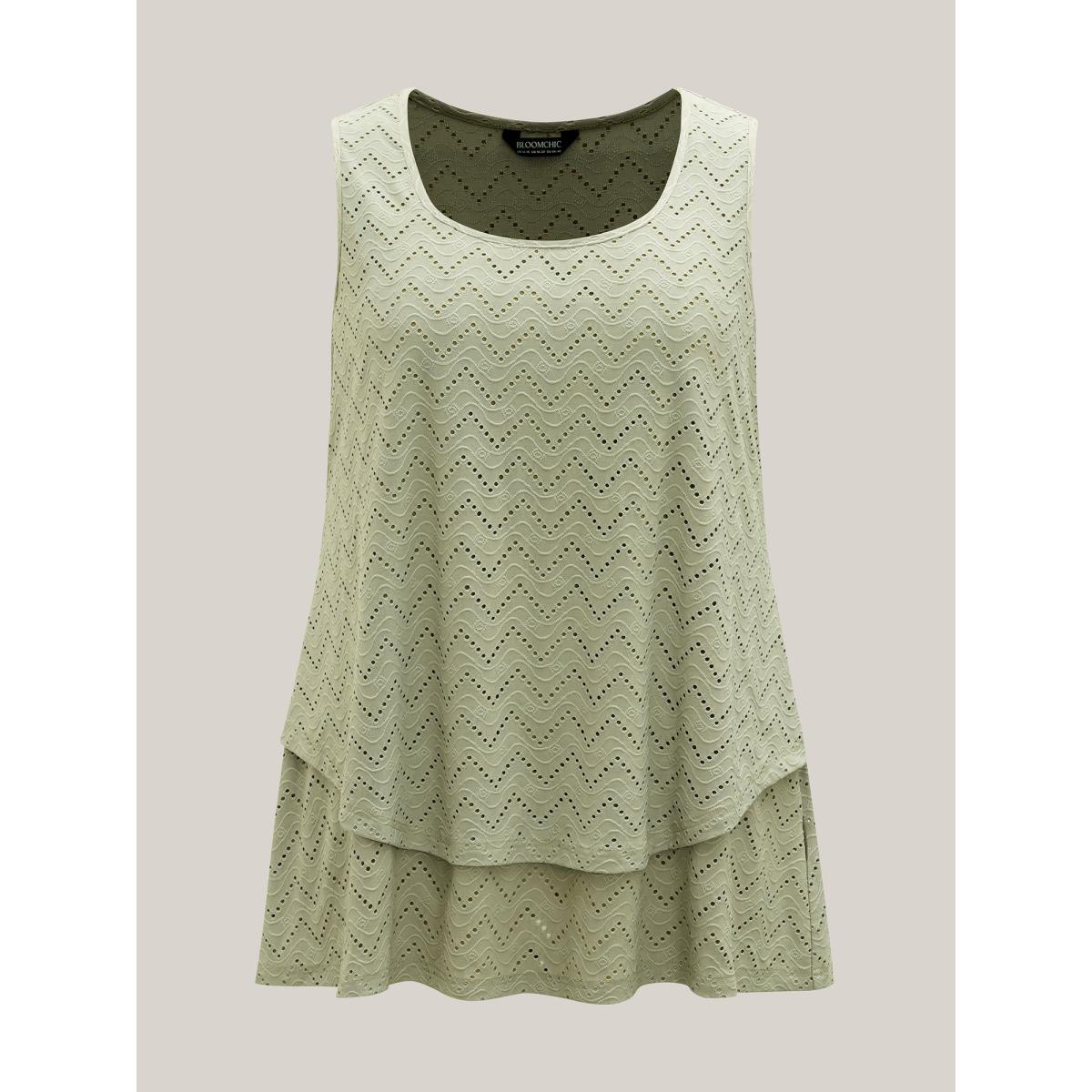 Plus Size Textured Layered Hem Tank Top Women Sage Texture Round Neck Everyday-Casual Tank Tops Camis BloomChic 12/L