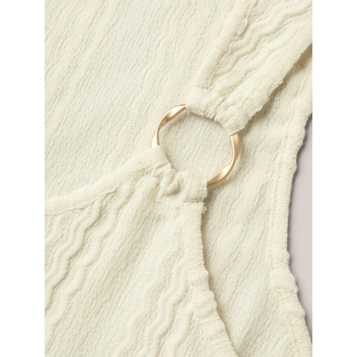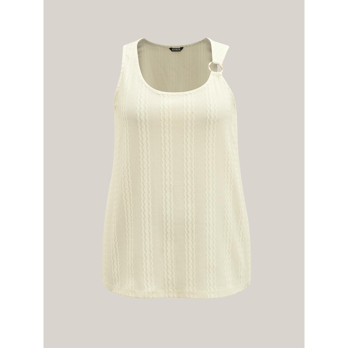 Plus Size Textured Metal Ring Sheer Tank Top Women Beige Texture U-neck Vacation Tank Tops Camis BloomChic 28/5X Product Image
