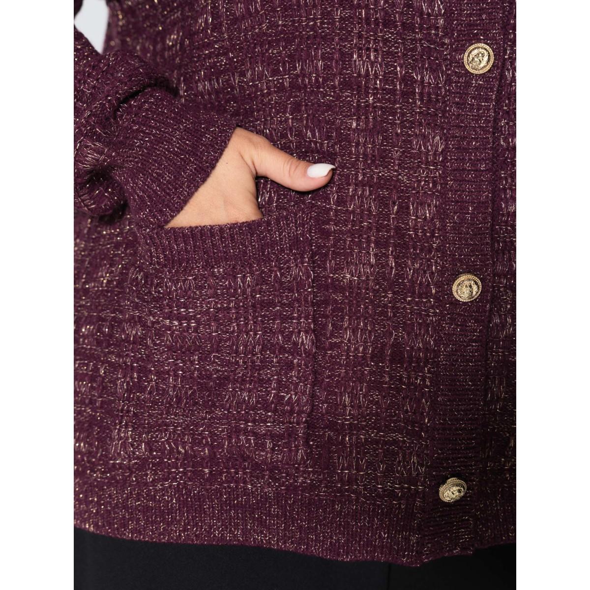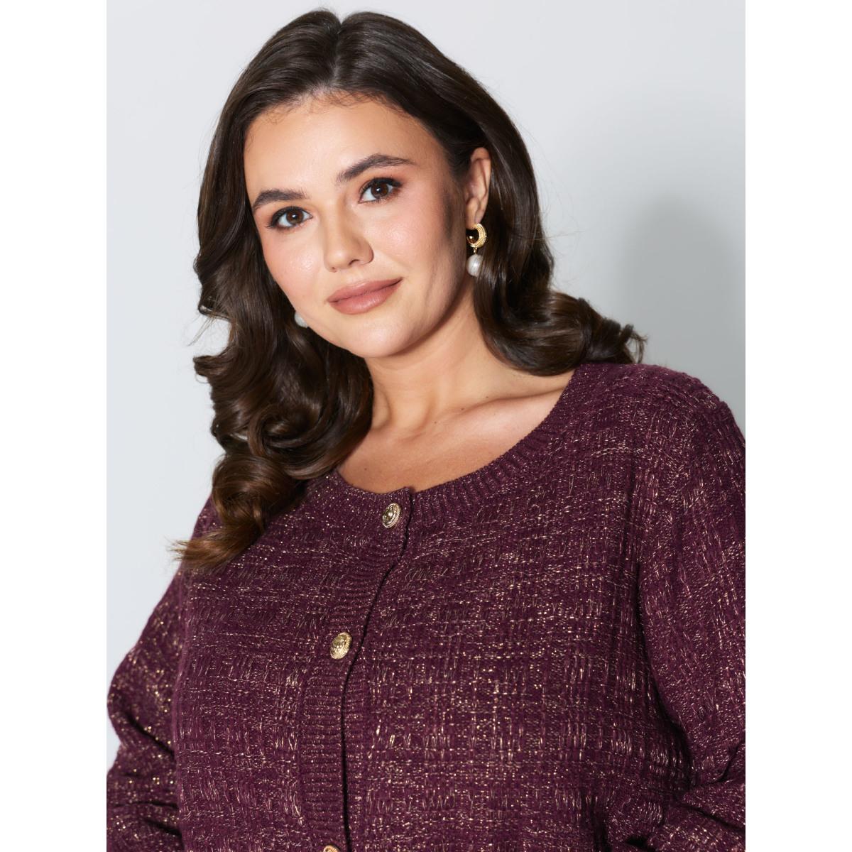 Plus Size Textured Metallic Thread Button Knit Cardigan Plum Women Party&Cocktail Loose Long Sleeve Party Cardigans BloomChic 28/5X