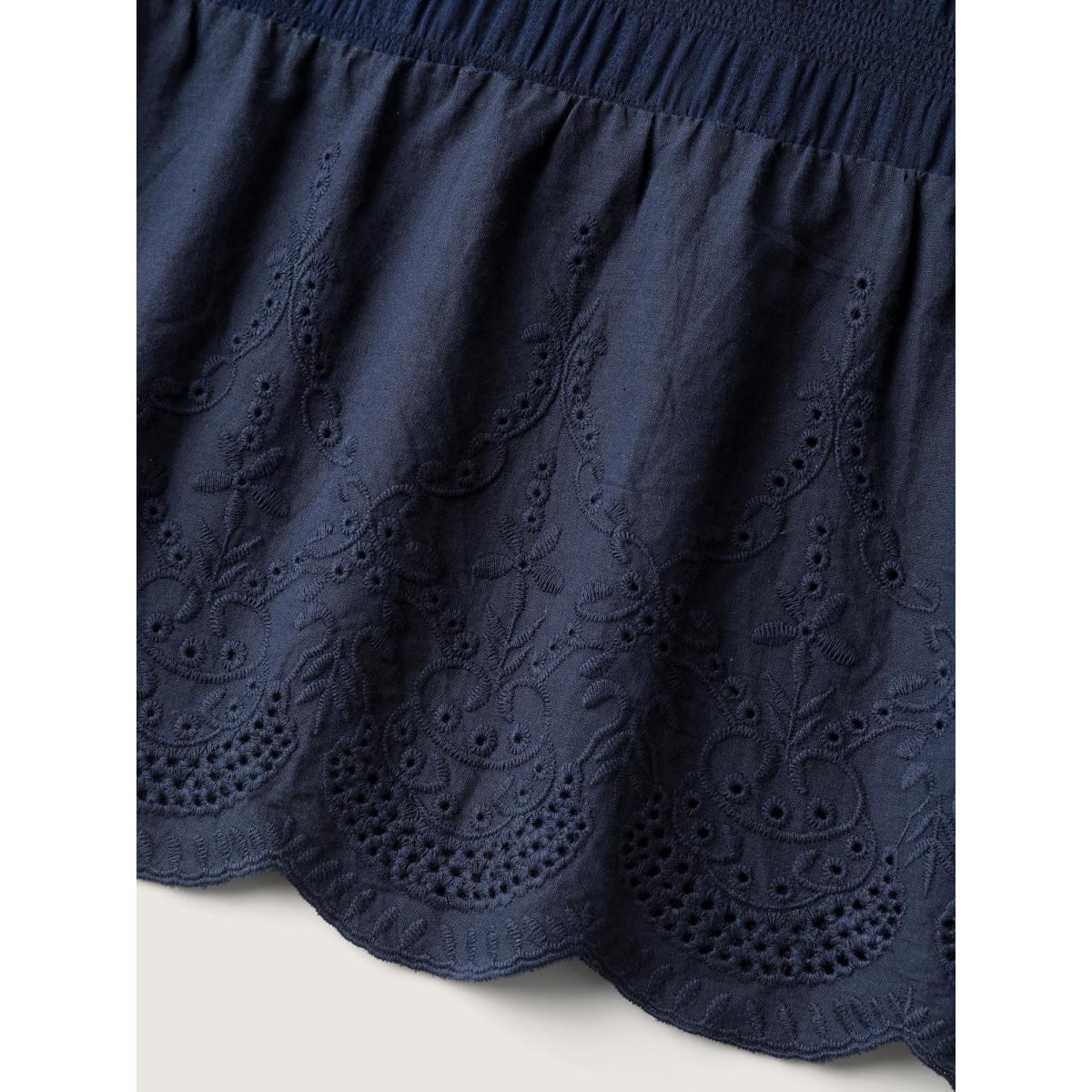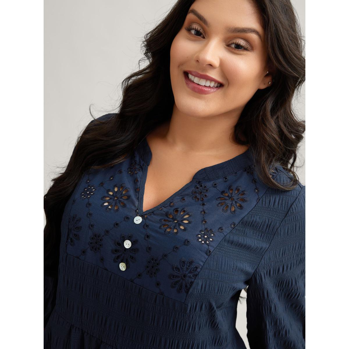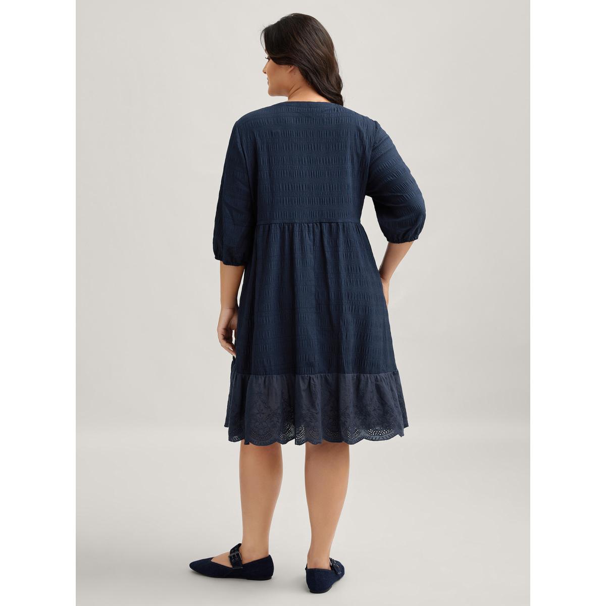 Plus Size Textured Notched Collar Midi Dress Indigo Women Leisure Texture Flat collar with V-notch Elbow-length sleeve Curvy BloomChic 22-24/3X