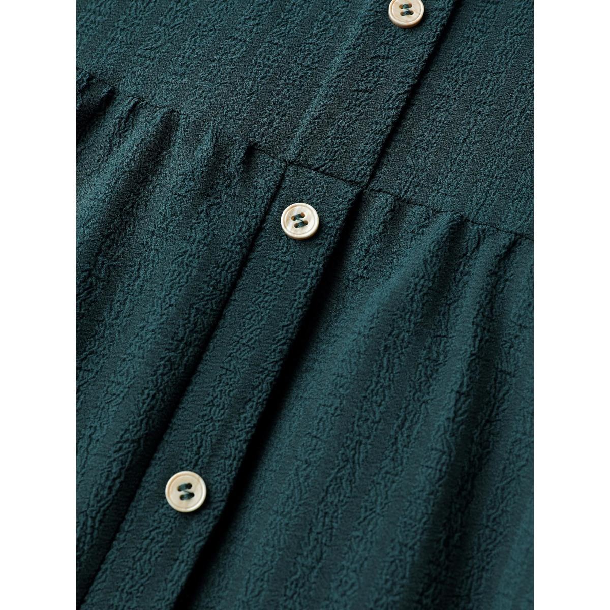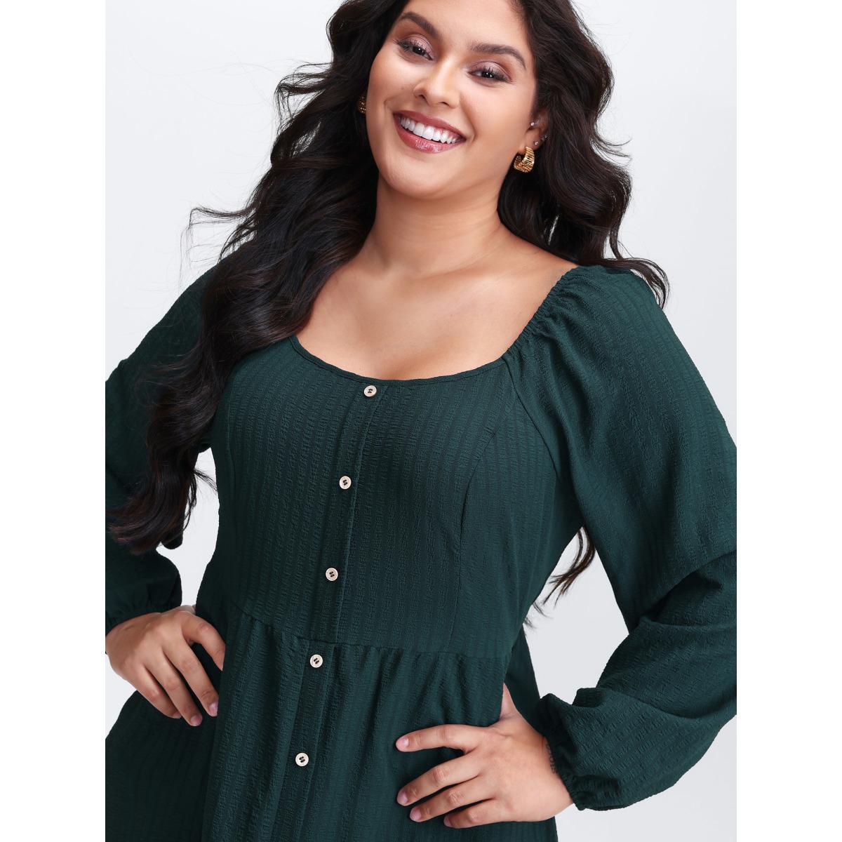 Plus Size Textured Pockets Button Detail Tiered Maxi Dress Cyan Women Timeless Texture U-neck Long Sleeve Curvy BloomChic 22-24/3X Product Image