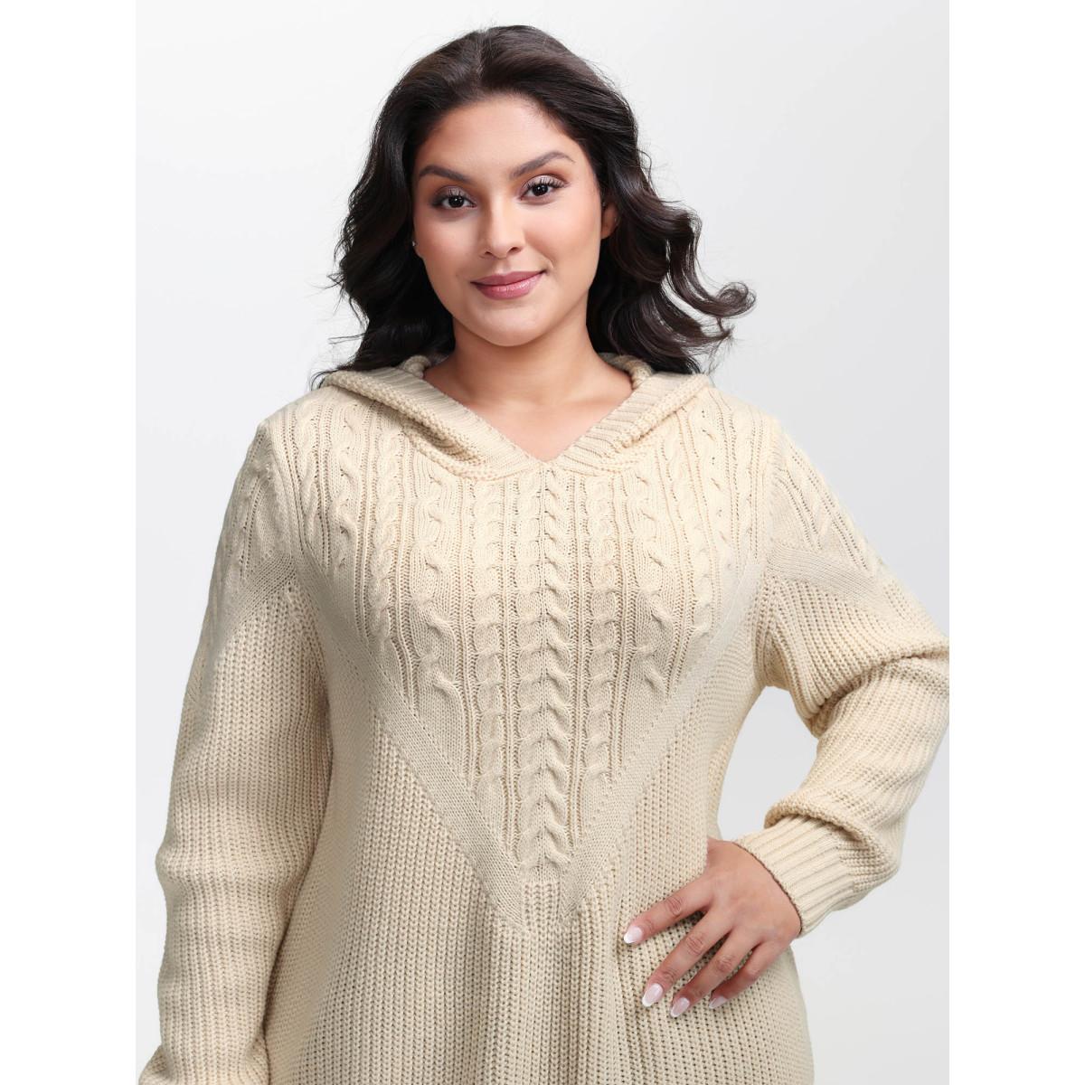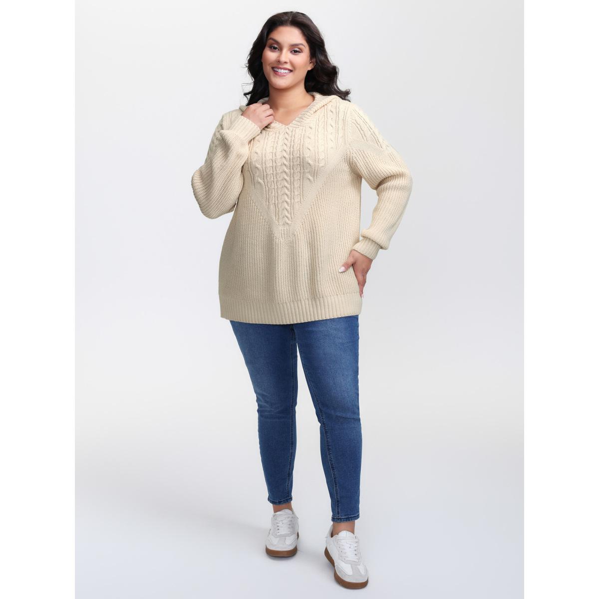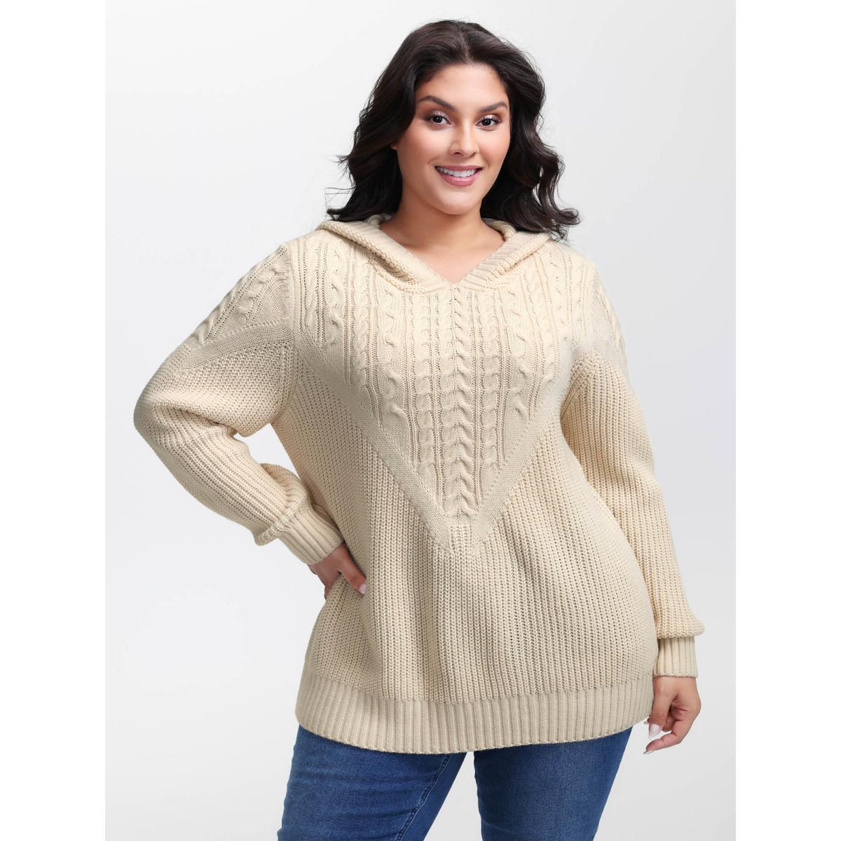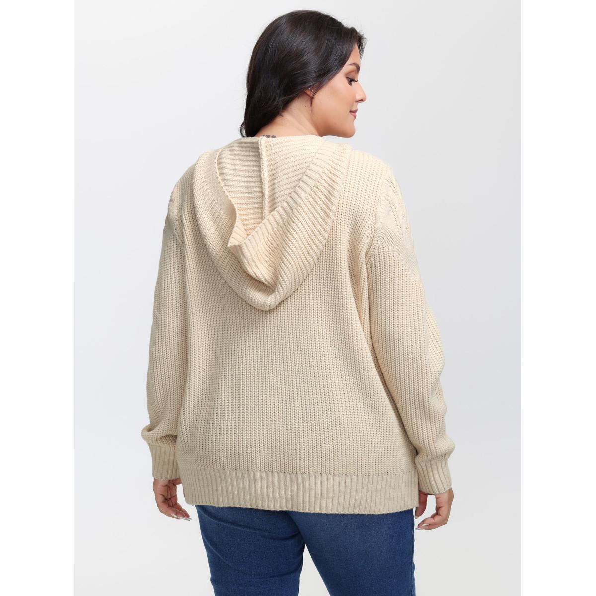 Plus Size Textured Ribbed Hem Hooded Pullover Beige Women Leisure Loose Long Sleeve Hooded Casual Pullovers BloomChic 22-24/3X