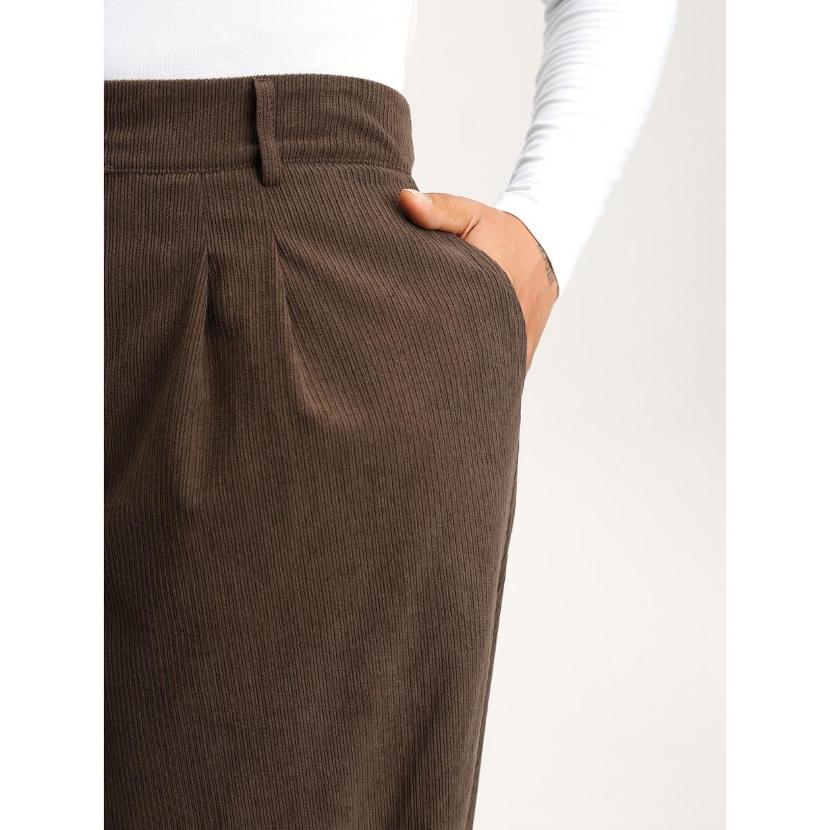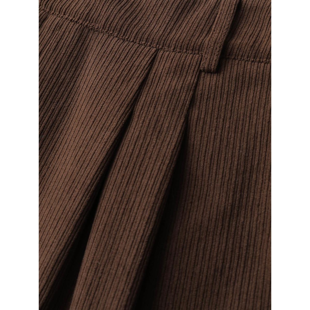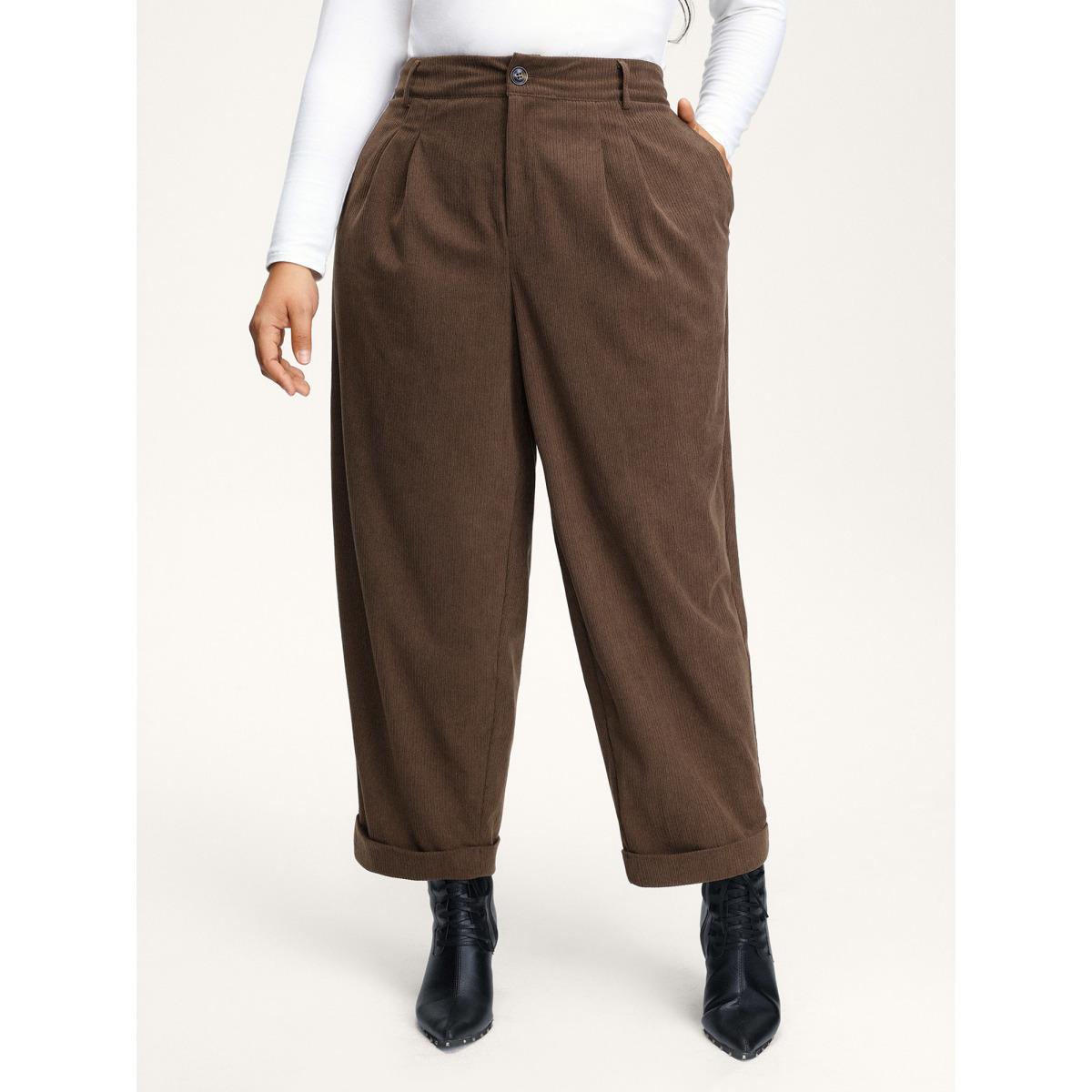 Plus Size Plain Plicated Detail Straight Leg Pants Women DarkBrown Office Wide Leg High Rise Work Pants BloomChic 10/M