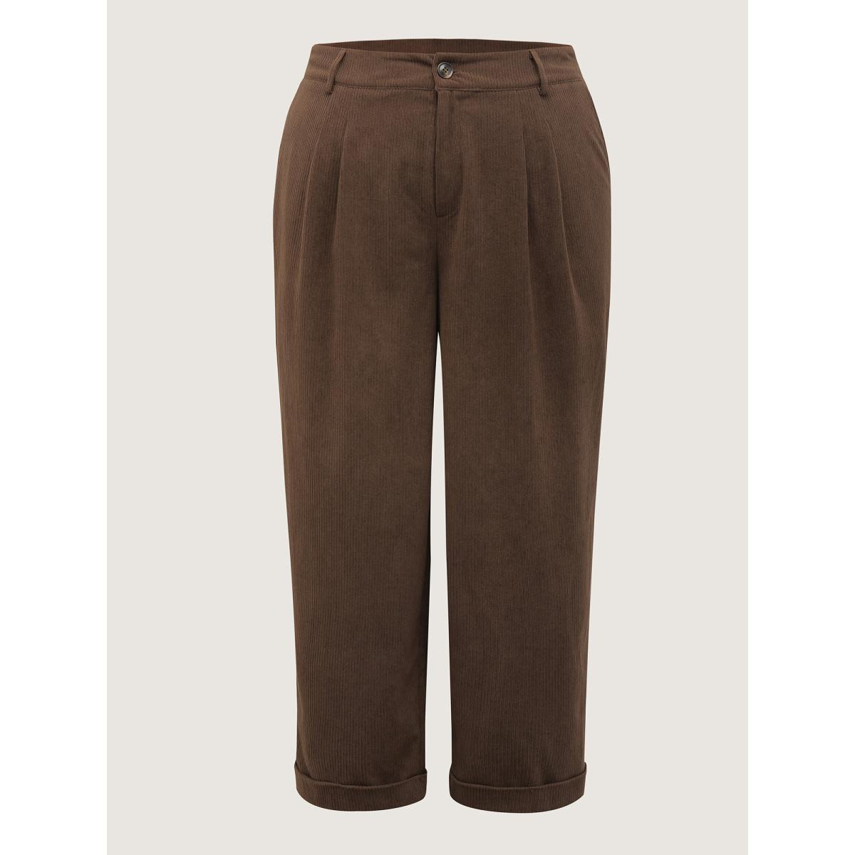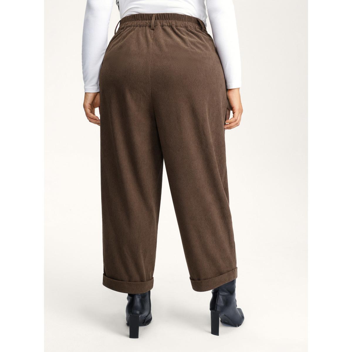 Plus Size Textured Rolled Cuffs Straight Leg Pants Women DarkBrown Leisure Loose Mid Rise Casual Pants BloomChic 30/6X