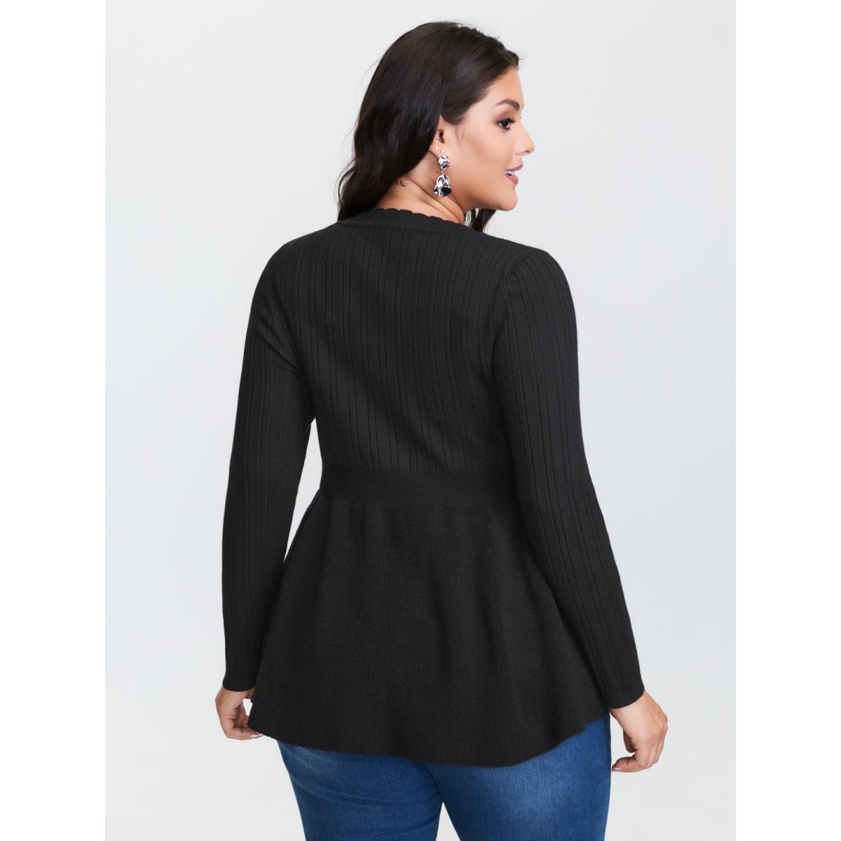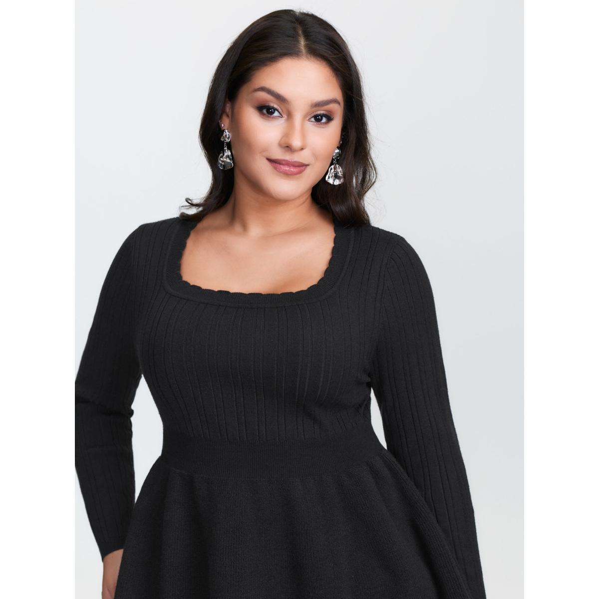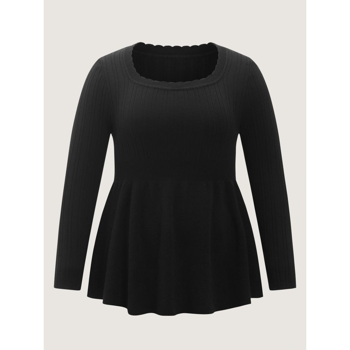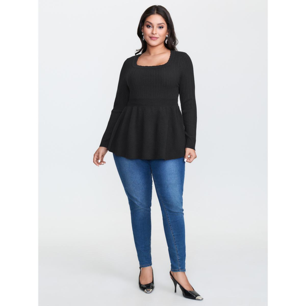 Plus Size Textured Scoop Neck Cinched-Waist Pullover Black Women Timeless Loose Long Sleeve U-neck Elegant Pullovers BloomChic 26/4X