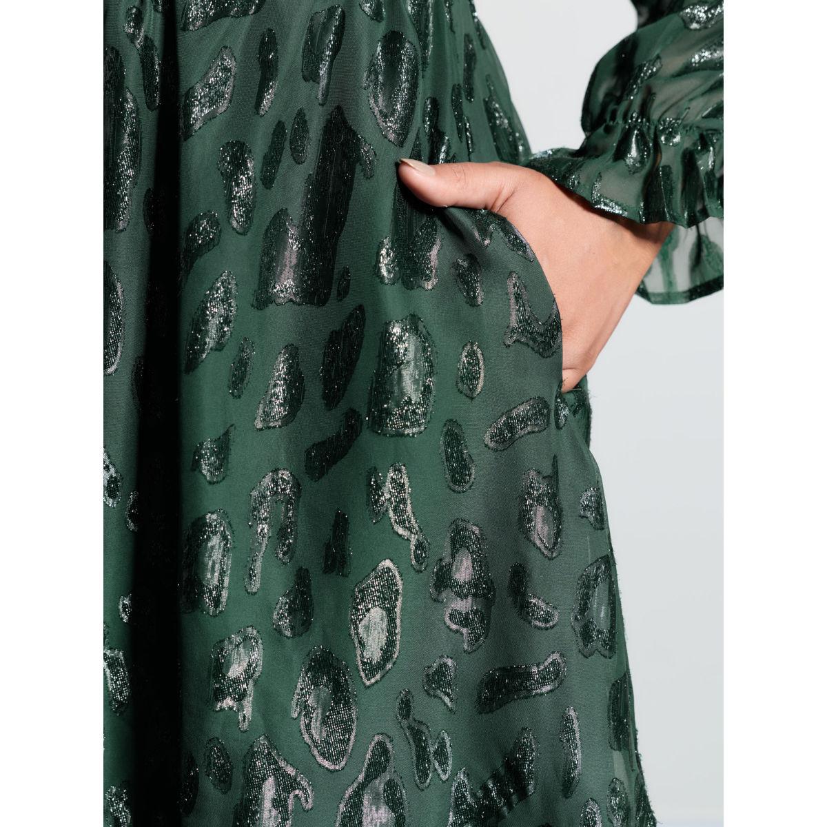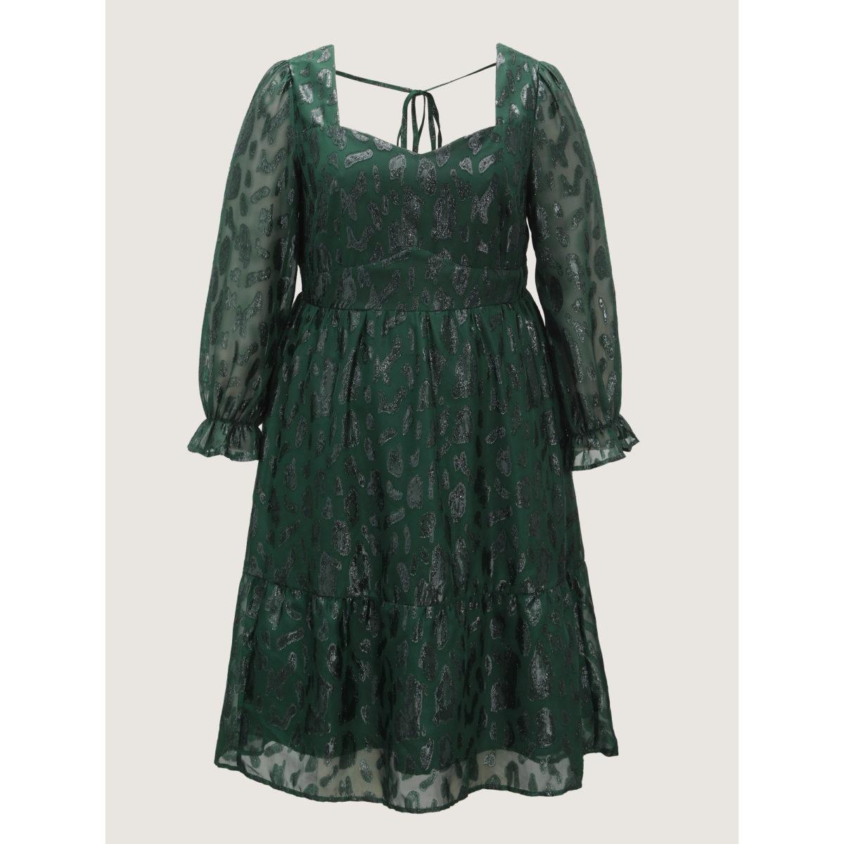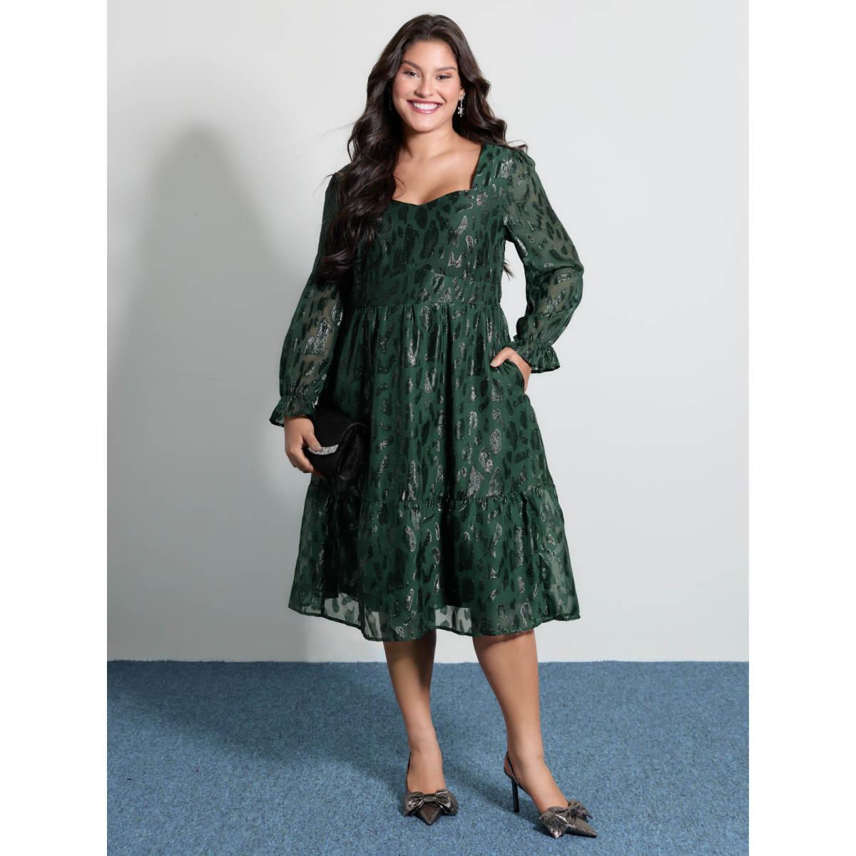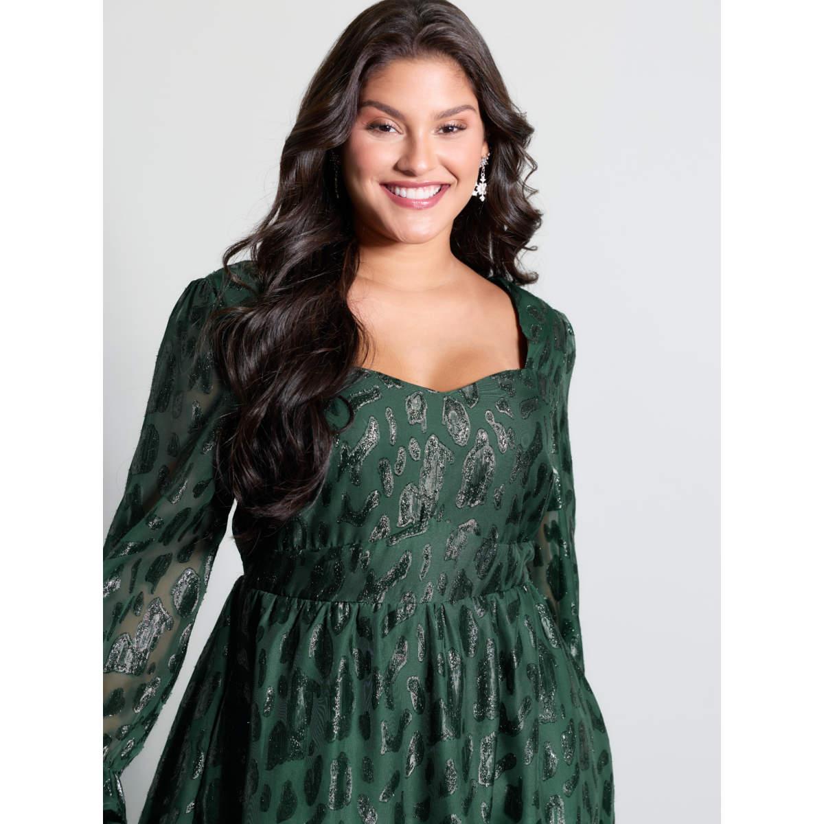 Plus Size Textured Shirred Backless Tie Midi Dress DarkGreen Women Party&Cocktail Tie knot Heart neckline Extra Long Sleeve Curvy BloomChic 22-24/3X