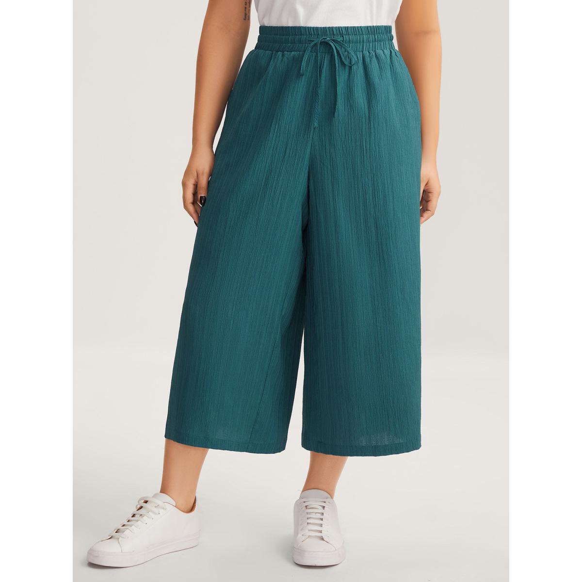 Plus Size Textured Stretchy Waist Airy Pants Women Aegean Leisure Wide Leg Mid Rise Casual Pants BloomChic 14-16/1X