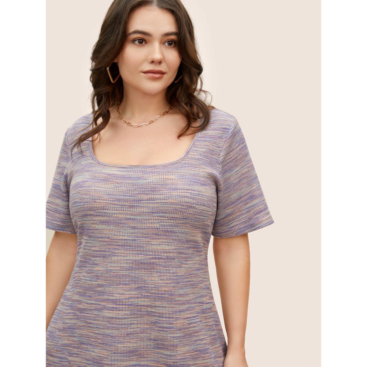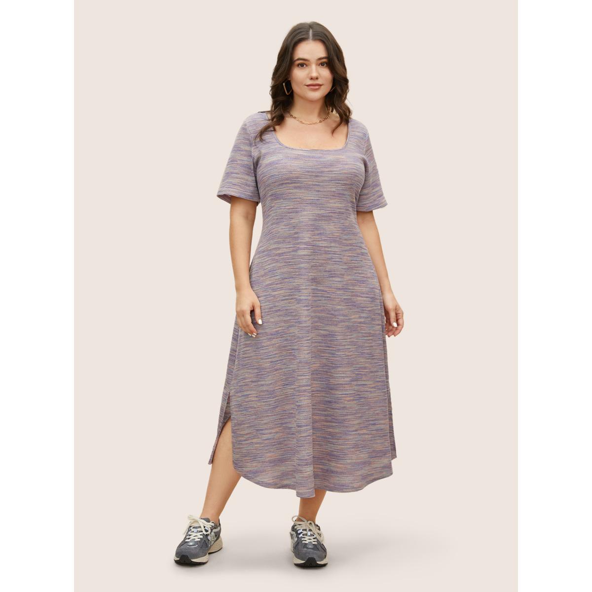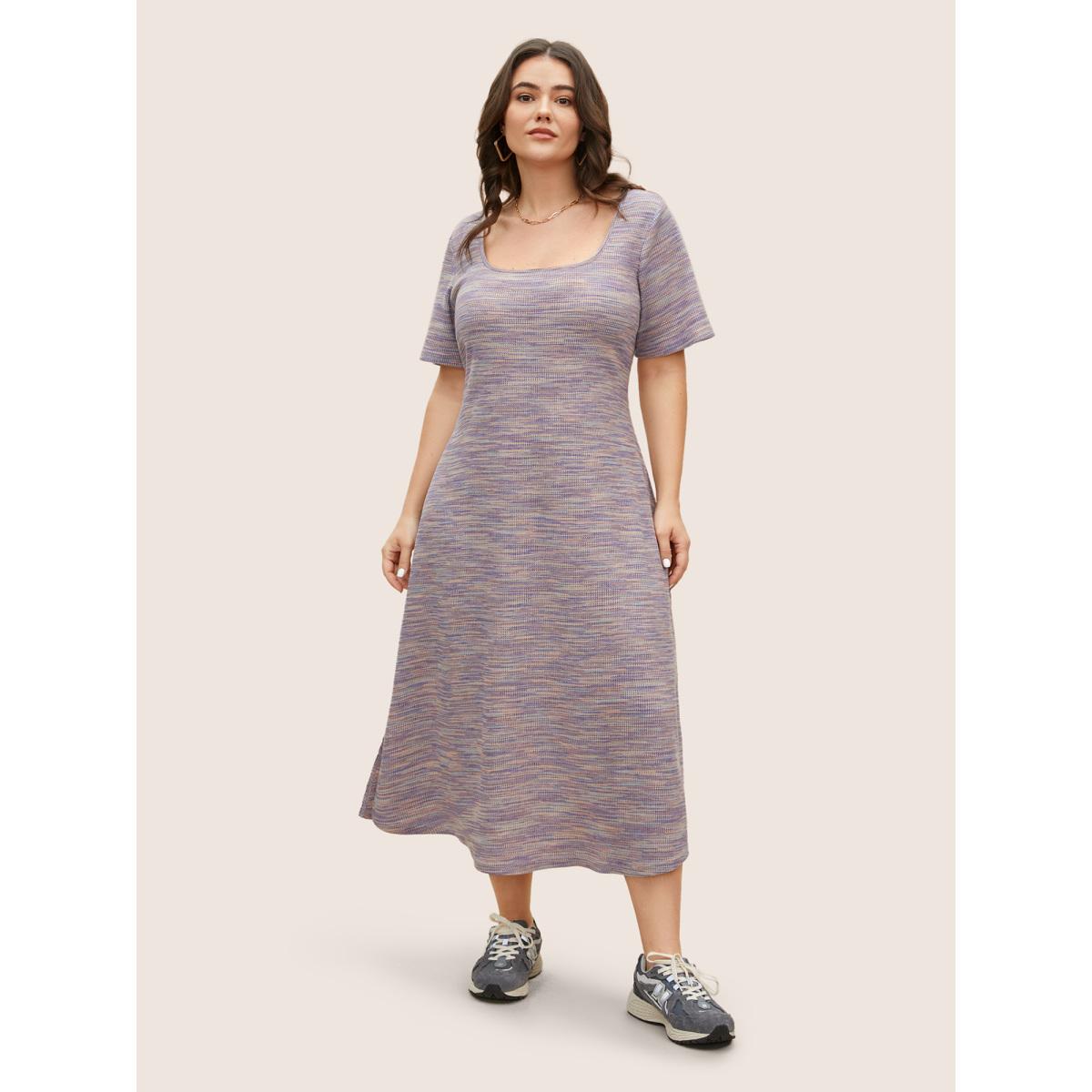 Plus Size Textured Waffle Knit Crisscross Split Side Dress Mauve Women Casual Texture Square Neck Short sleeve Curvy BloomChic 28/5X Product Image
