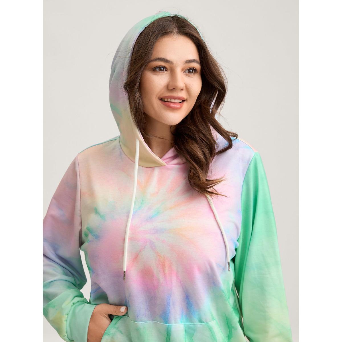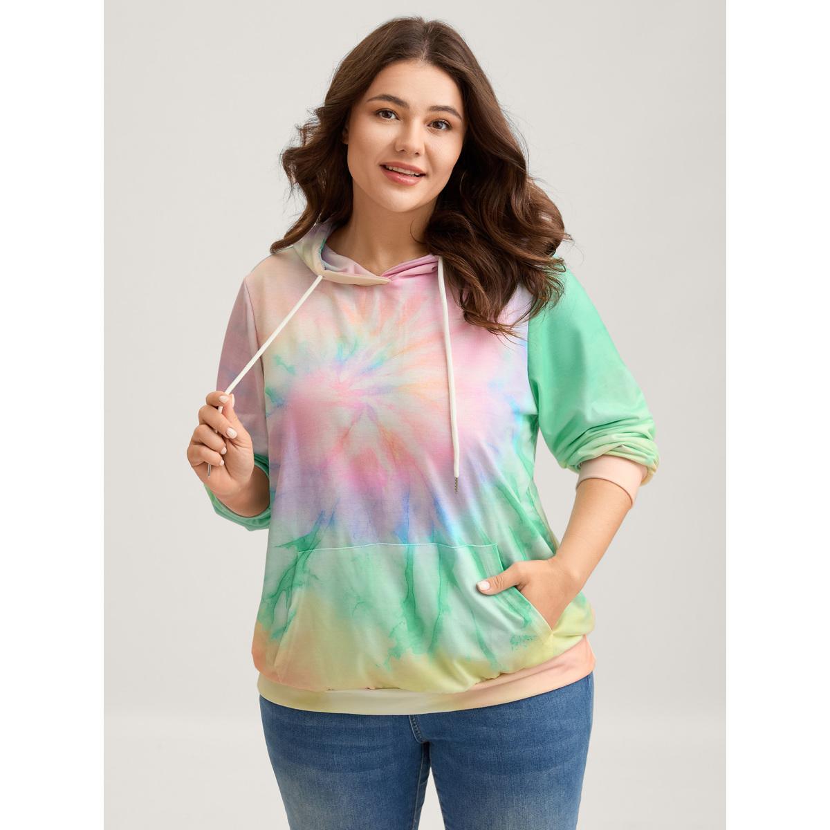 Plus Size Tie-Dye Blend Pockets Hoodie Women Multicolor Leisure Drawstring Hooded Casual Sweatshirts BloomChic 28/5X