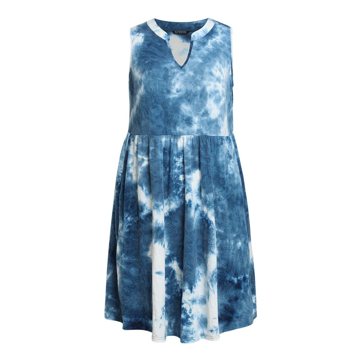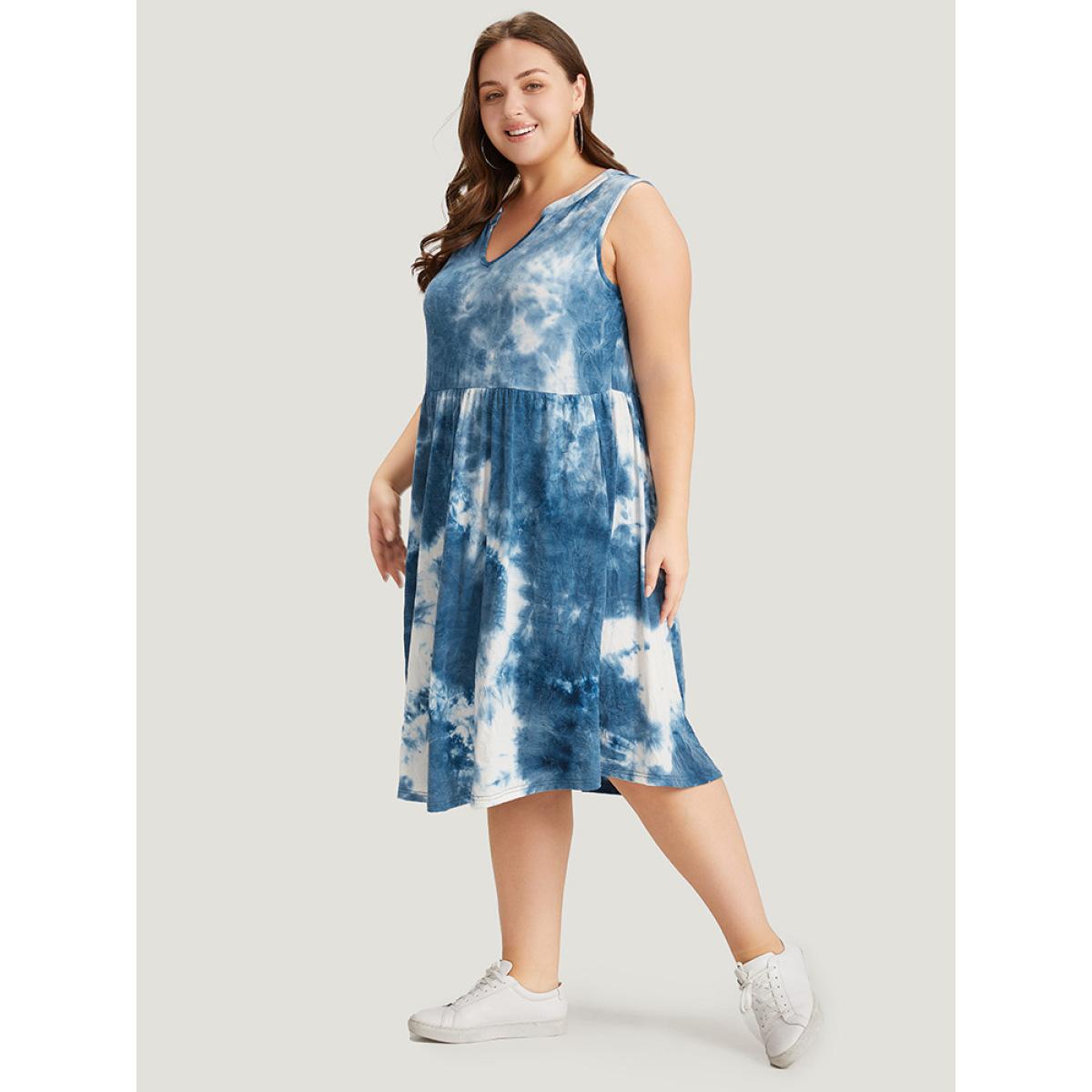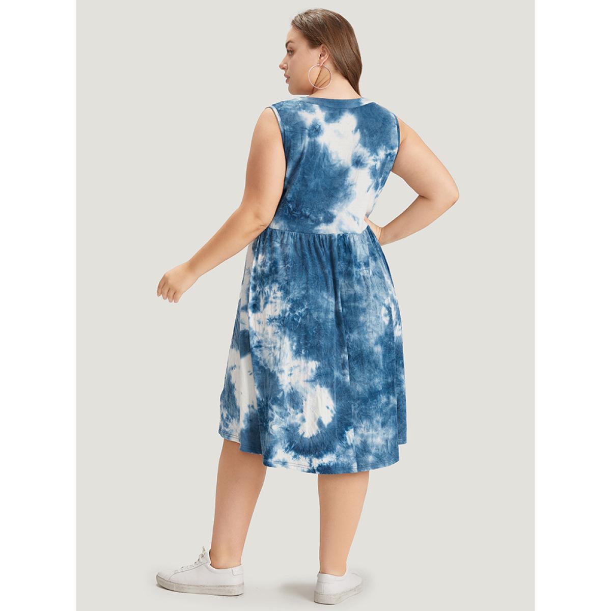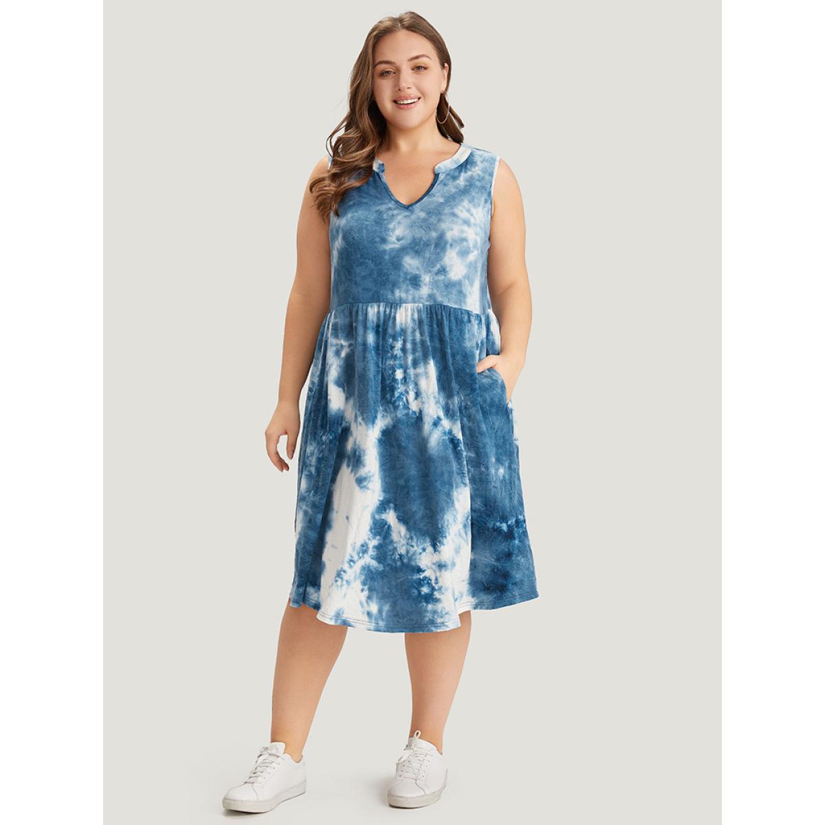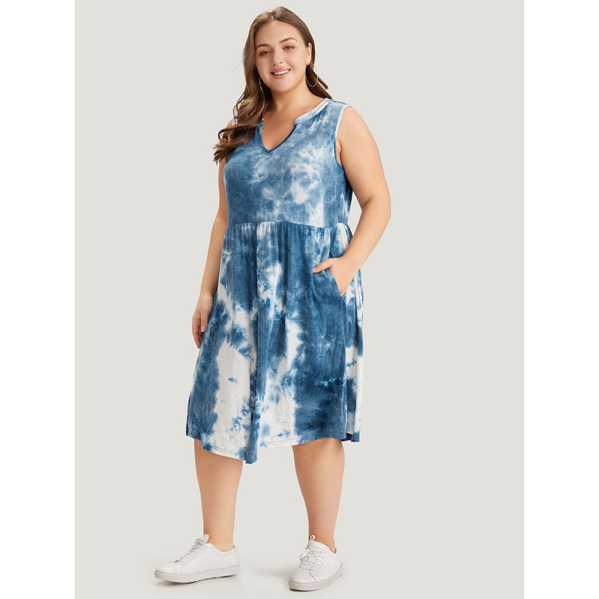 Plus Size Tie Dye Notched Pocket Flutter Hem Tank Dress Stone Women Casual Tie Dye Notched collar Sleeveless Curvy Knee Dress BloomChic 22-24/3X