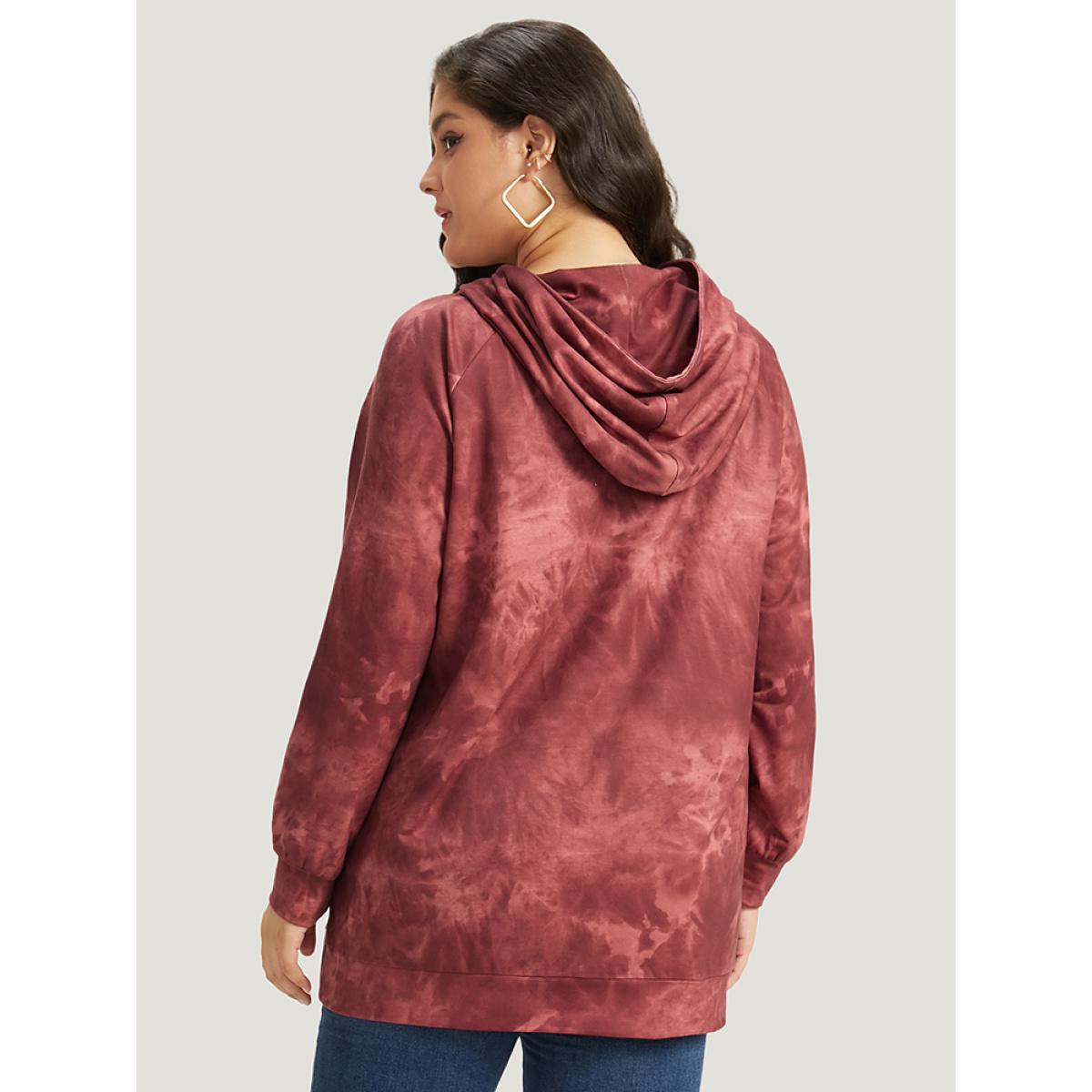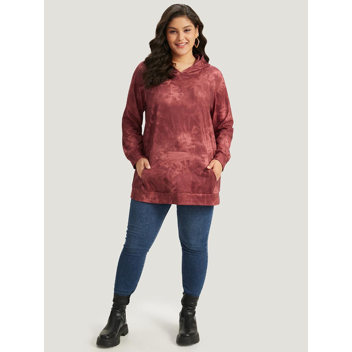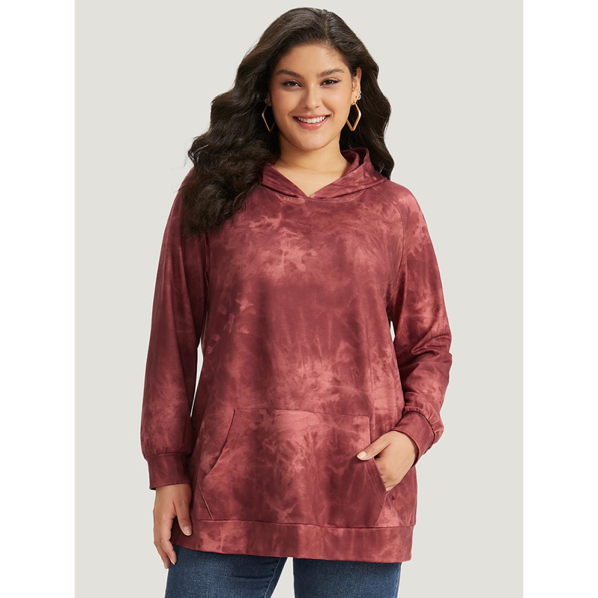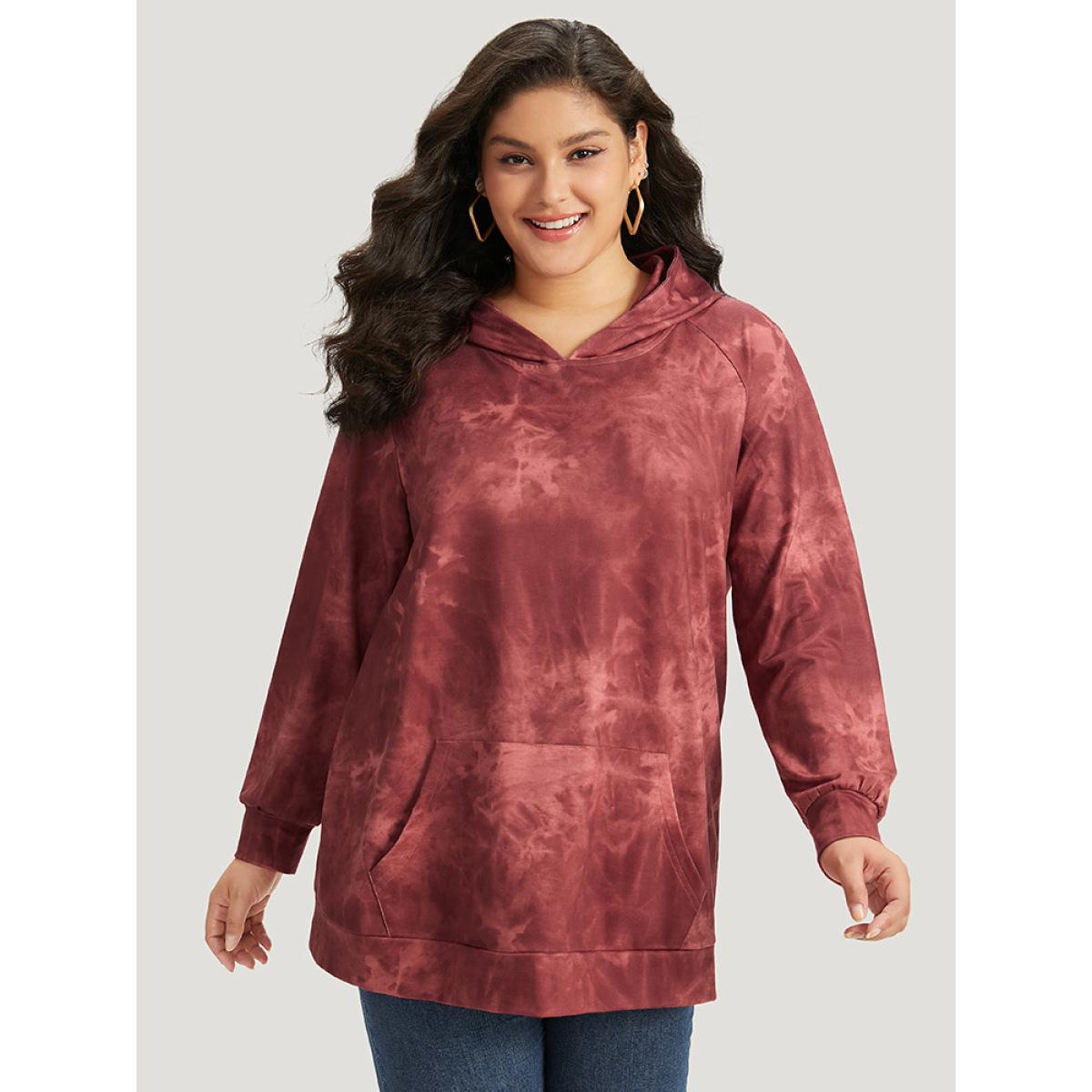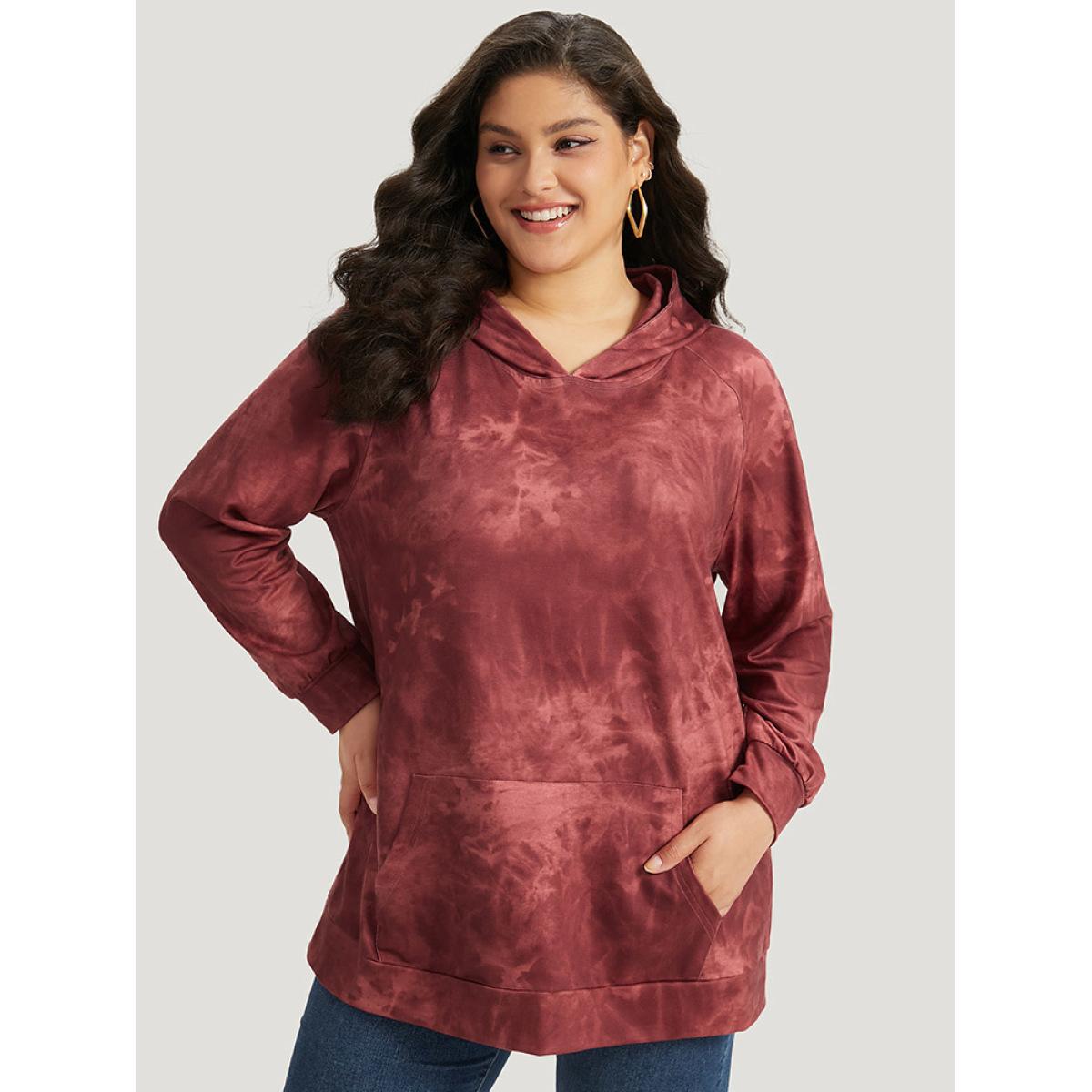 Plus Size Tie Dye Pocket Hooded Sweatshirt Women Rust Casual Elastic cuffs Hooded Dailywear Sweatshirts BloomChic 22-24/3X