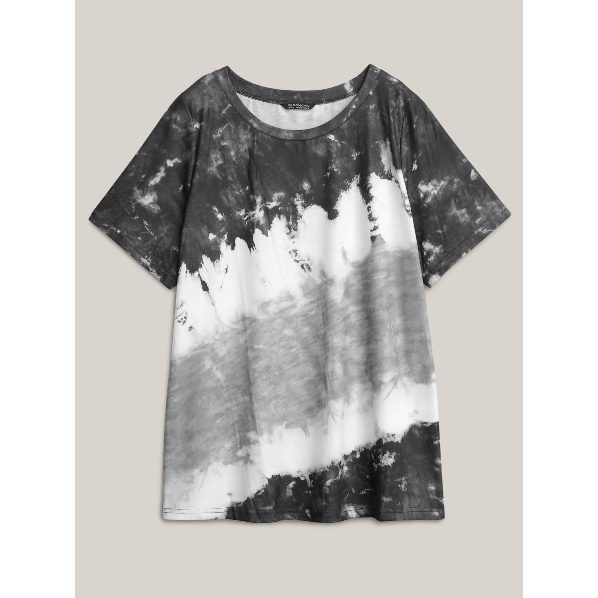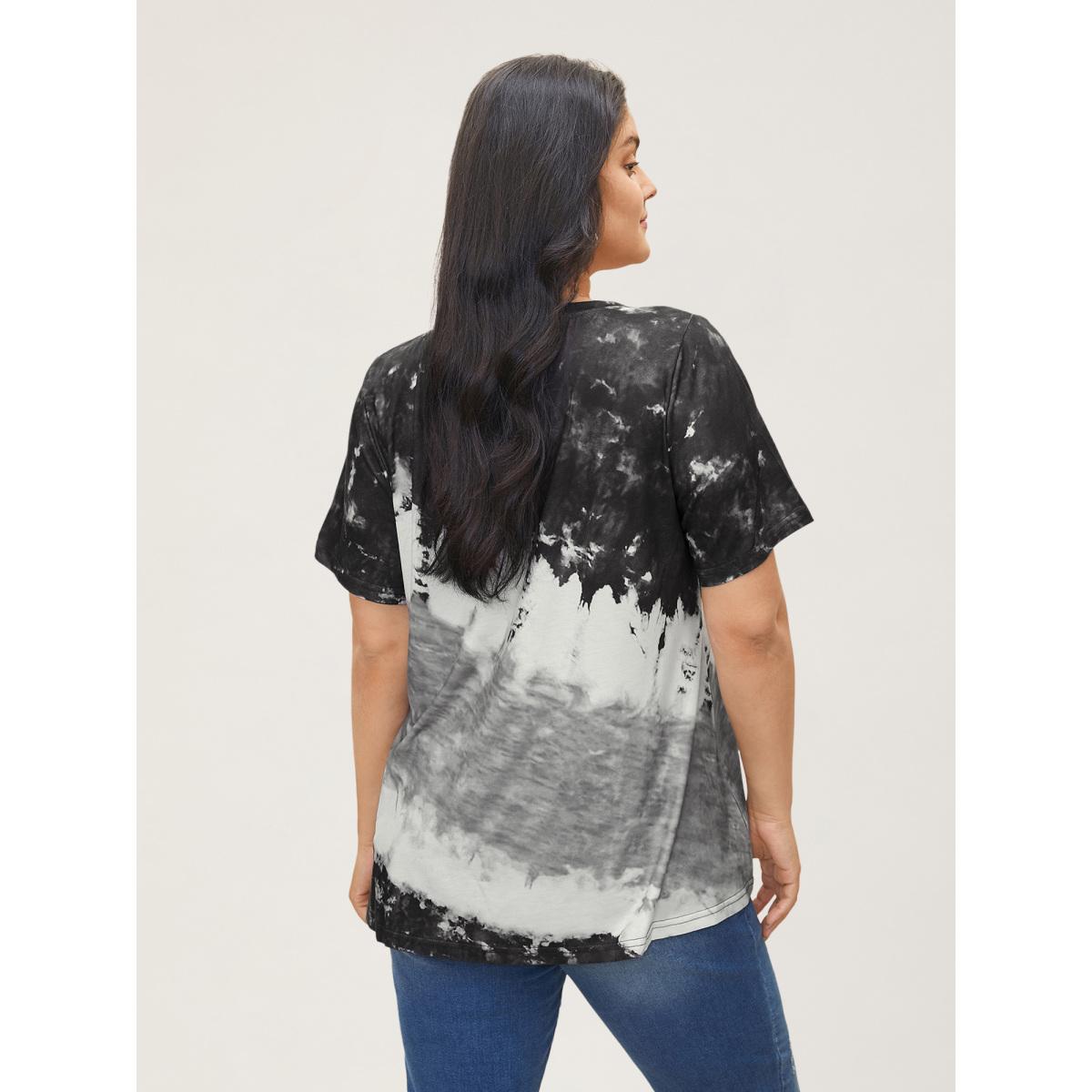 Plus Size Tie Dye Round Neck T-shirt Black Women Leisure Non Tie Dye Round Neck Casual T-shirts BloomChic 14-16/1X