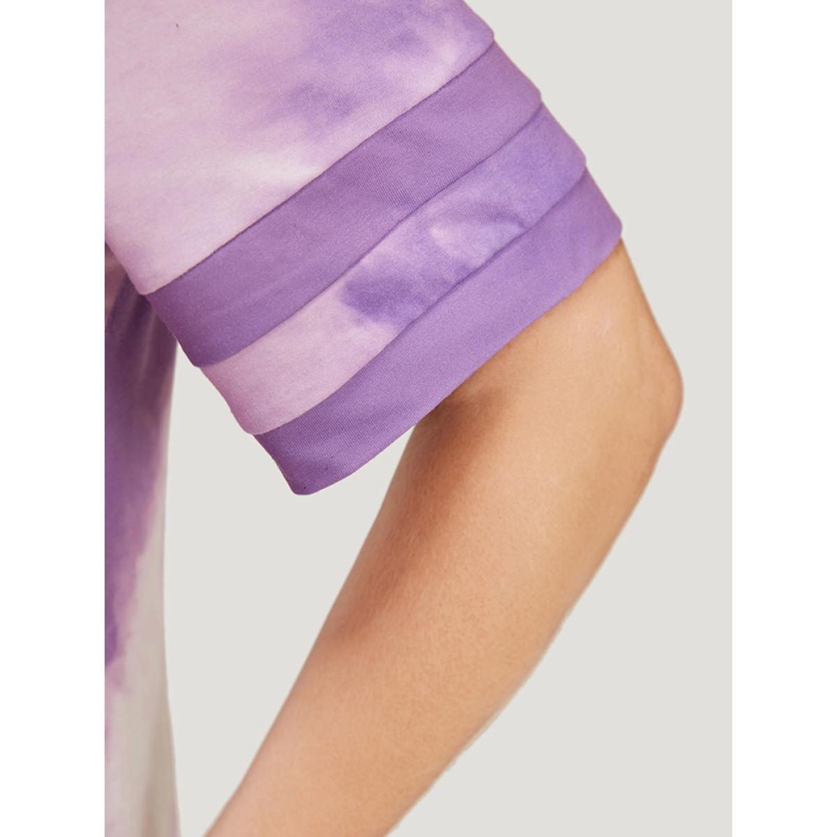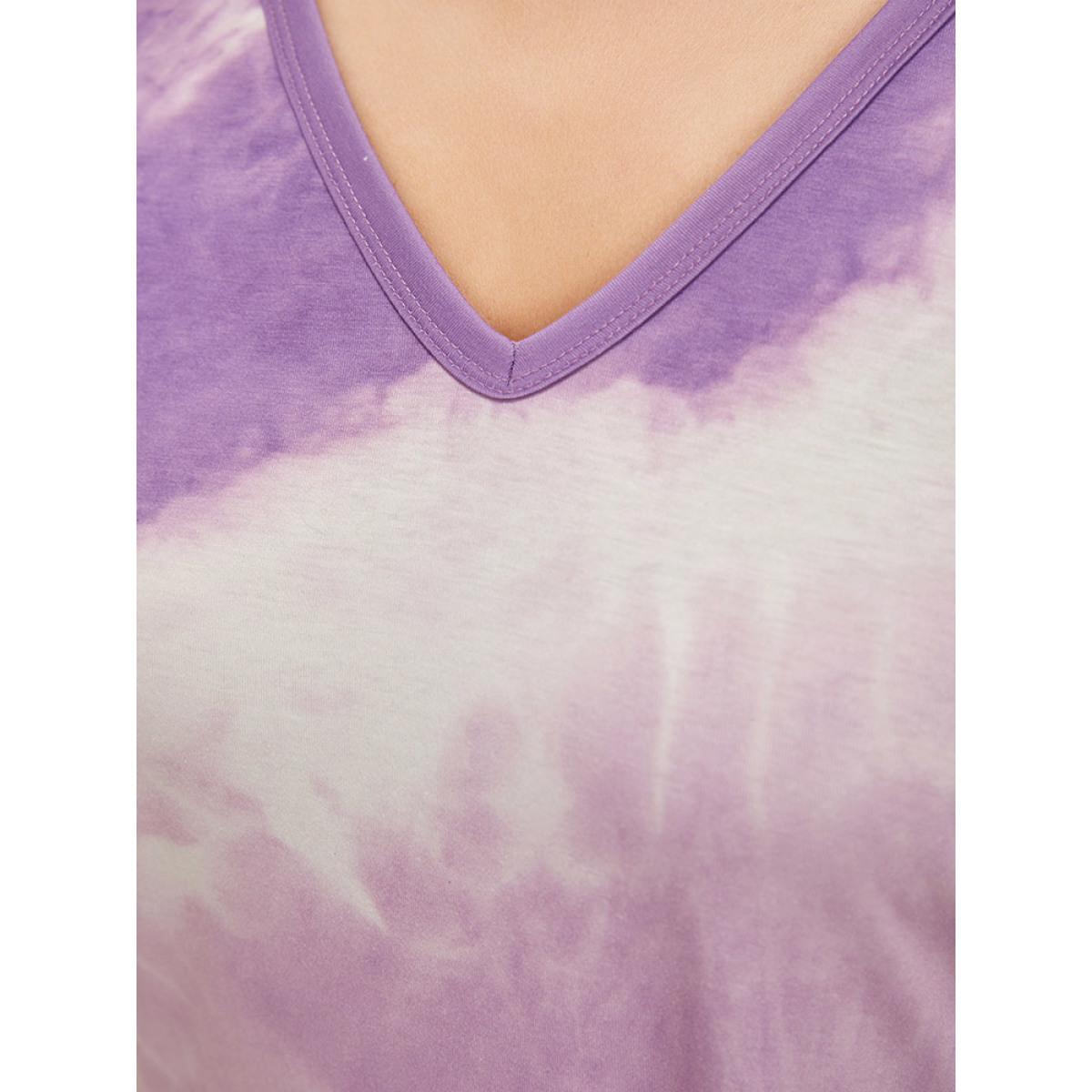 Plus Size Tie Dye V Neck Contrast Trim T-shirt Lilac Women Casual Contrast Tie Dye V-neck Dailywear T-shirts BloomChic 10/M Product Image