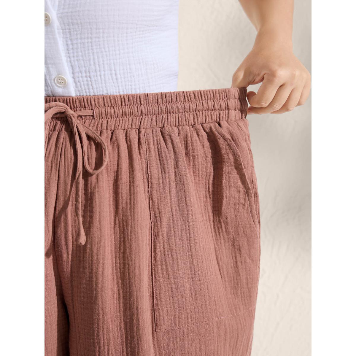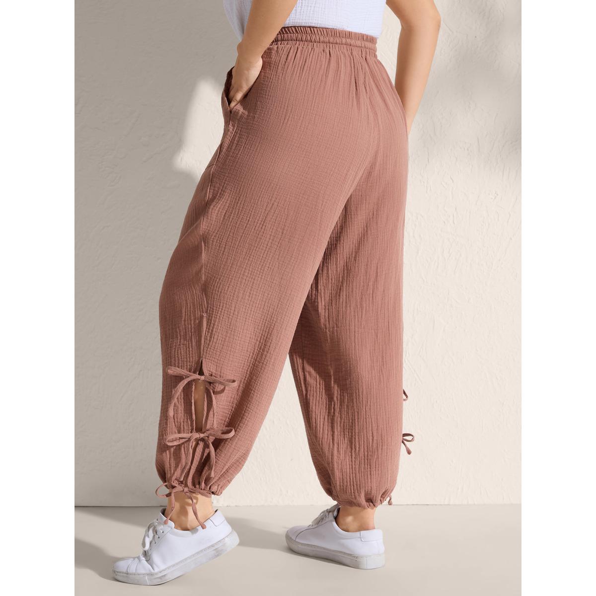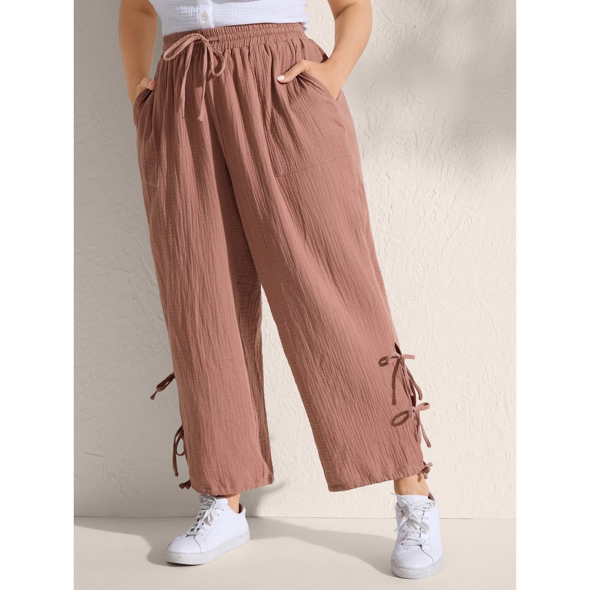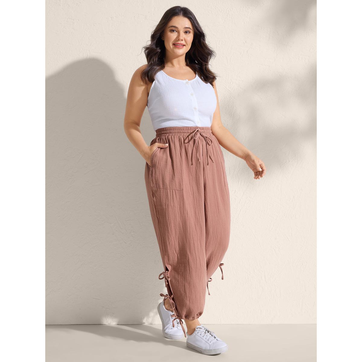 Plus Size Tie-Hem Slits Cuffed Waist-Tie Pockets Pants Women Rust Leisure Loose Mid Rise Casual Pants BloomChic 30/6X