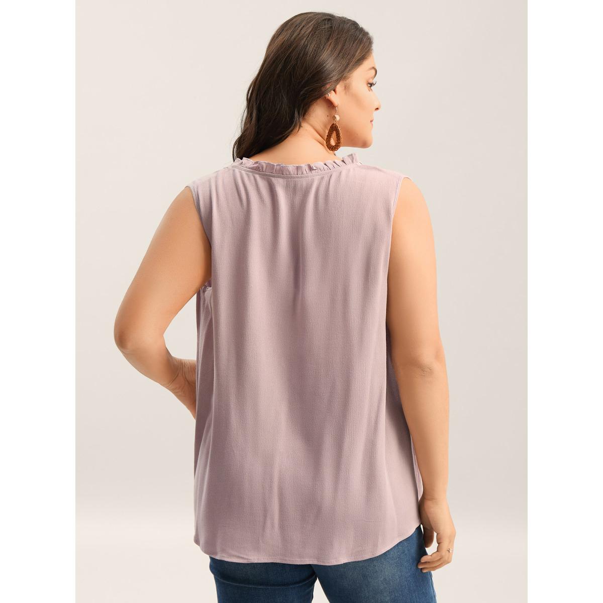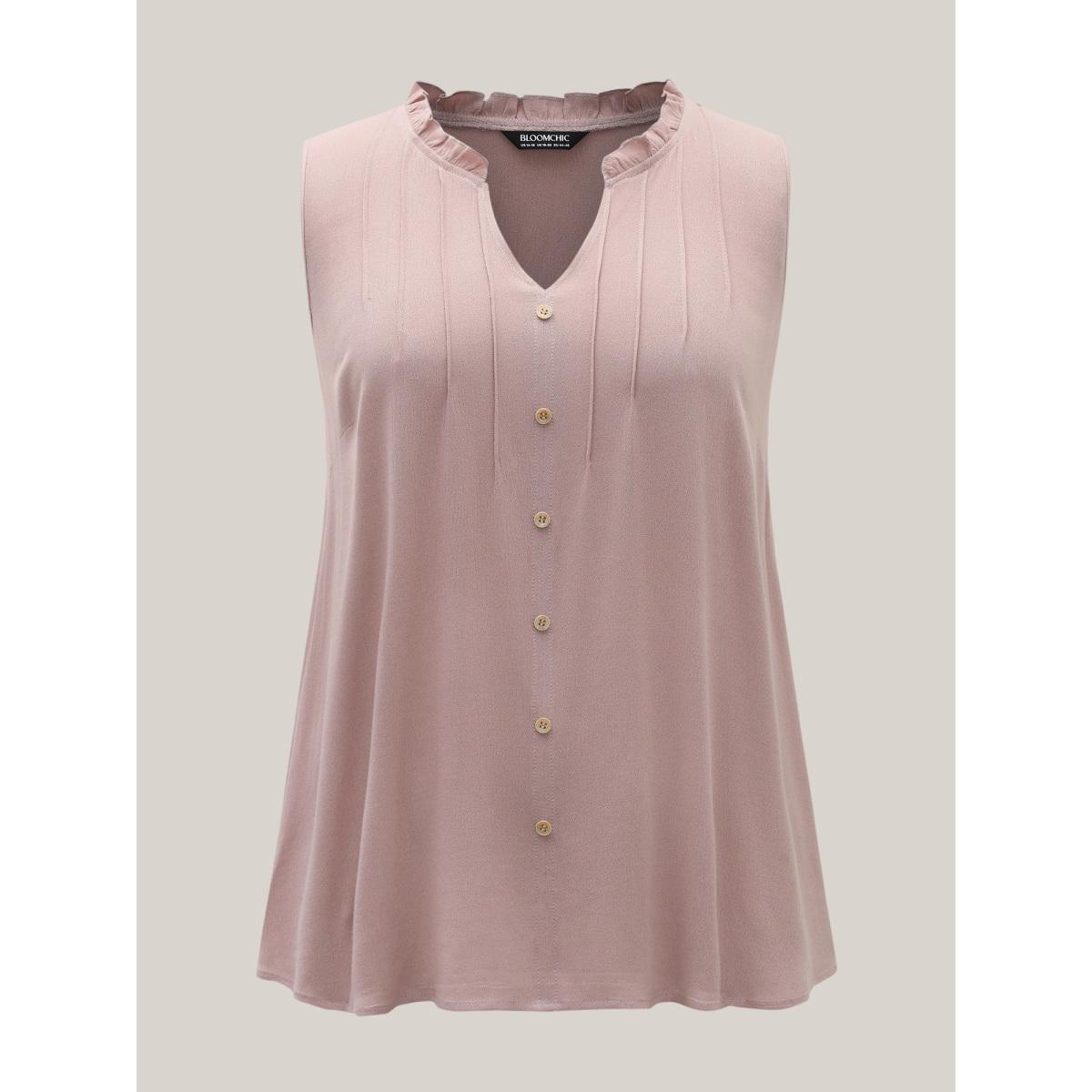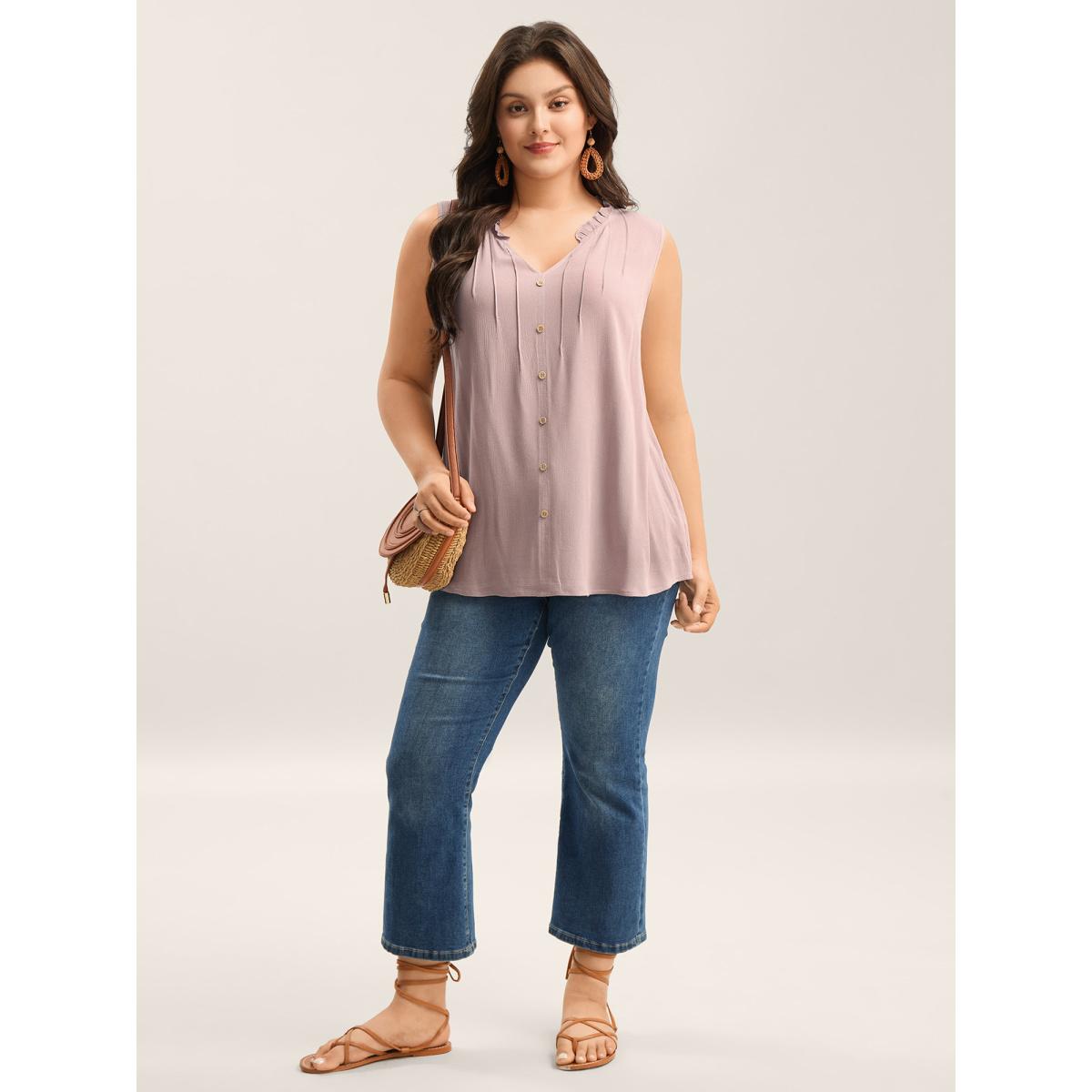 Plus Size Toothpick Pleat Button Detail Sleeveless Top Women Lilac Timeless Tucked seam Notched collar Vacation Tank Tops Camis BloomChic 30/6X