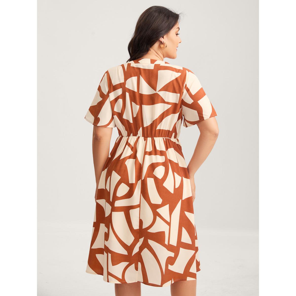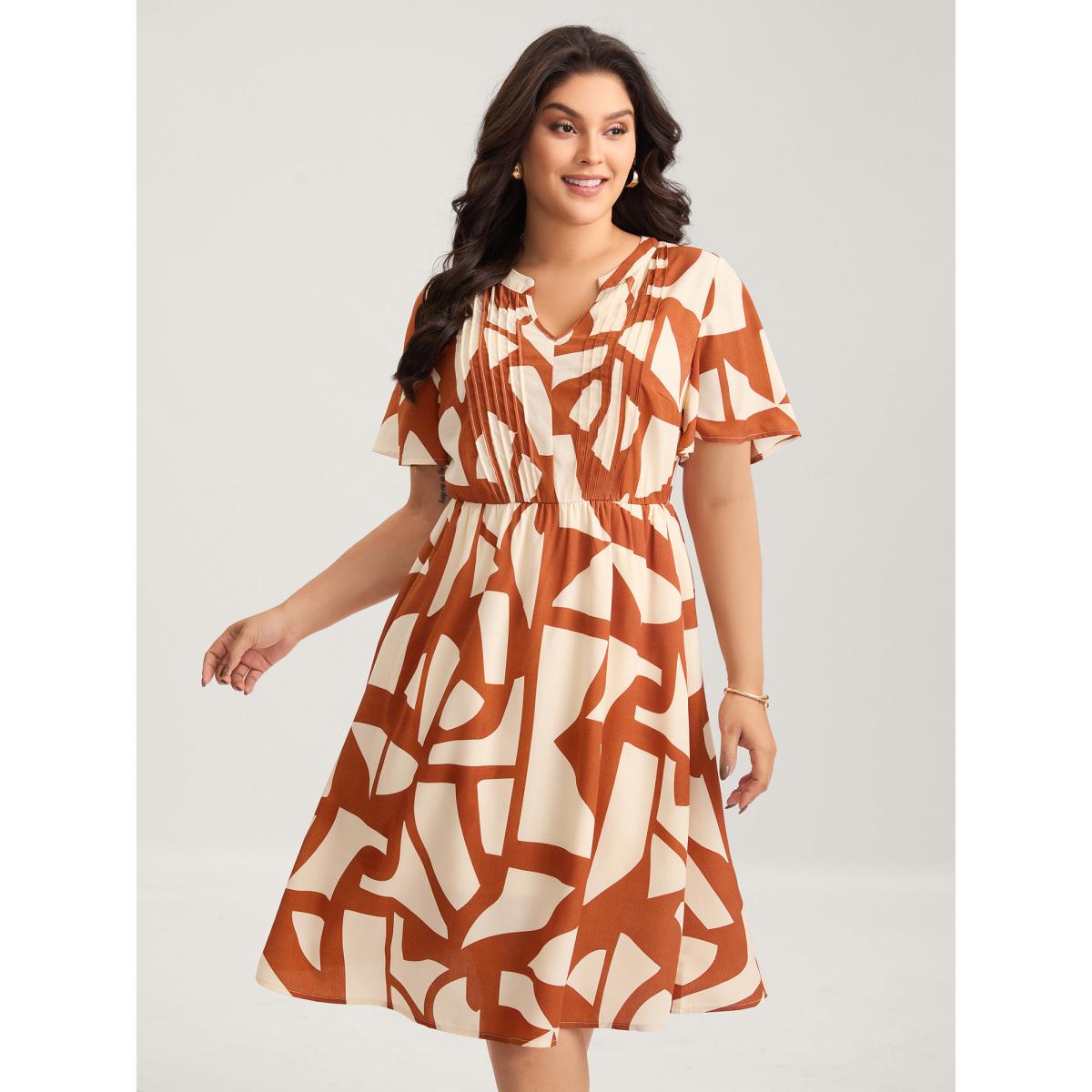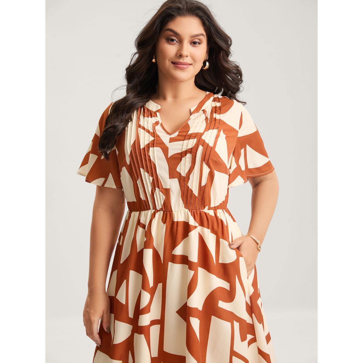 Plus Size Toothpick Pleat Notched Collar Midi Dress Rust Women Flat collar with V-notch Short sleeve Curvy BloomChic 26/4X